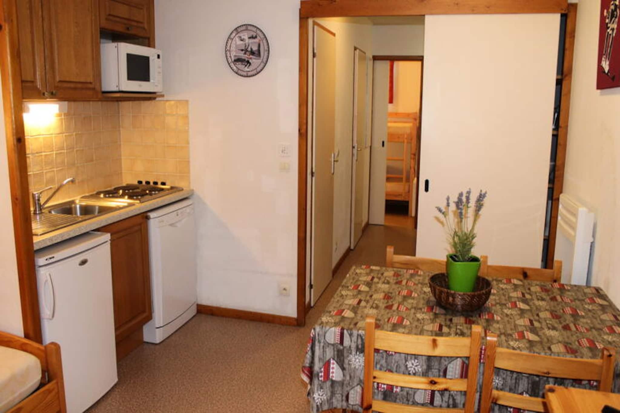 I de franska Alpernas fridfulla omfamning erbjuder denna charmiga lägenhet en perfekt blandning av komfort och bekvämlighet för din alpina semester. Belägen på fjärde våningen i L'Horizon Blanc-residenset, har den ett utmärkt läge vid foten av backarna och i hjärtat av ortens centrum, vilket garanterar enkel tillgång till all spänning i La Joue du Loup. Vakna upp till hisnande utsikt över skidområdet och orten från din balkong i söderläge och låt den friska bergsluften stärka dina sinnen. Oavsett om du är här för att åka skidor eller bara varva ner, bäddar denna residens för oförglömliga stunder. \n\nLägenheten är designad för att rymma upp till åtta gäster och är omsorgsfullt utrustad med moderna bekvämligheter för att göra din vistelse så bekväm som möjligt. Vardagsrummet har en utdragbar säng, medan den mysiga alkoven har två våningssängar, vilket gör den idealisk för familjer eller grupper av vänner. Ett fullt utrustat pentry med en spishäll med 4 plattor, kombinerad mikrovågsugn/ugn, kylskåp och diskmaskin inbjuder dig att laga rejäla måltider efter en dag av äventyr. För extra bekvämlighet ingår täcken, TV och täckt parkering, vilket garanterar en smidig upplevelse från början till slut. Husdjur är välkomna, så dina pälsklingar kan delta i det roliga. \n\nBortom backarna erbjuder anläggningen en mängd attraktioner, inklusive O'dycéa wellnesscenter, där du kan ladda batterierna i dess två relaxutrymmen. Från lugnande bad till föryngrande behandlingar är det det perfekta sättet att varva ner efter en dag med skidåkning eller att utforska den pittoreska omgivningen. Med sitt centrala läge hittar du butiker, restauranger och nöjen bara några steg bort, vilket gör det enkelt att fördjupa dig i den pulserande atmosfären i La Joue du Loup. \n\nVälj denna härliga lägenhet för en semester fylld av alpin charm, moderna bekvämligheter och oändliga möjligheter till äventyr. Oavsett om du jagar puder eller söker lugn och ro, lovar detta boende en minnesvärd resa i hjärtat av de franska Alperna.