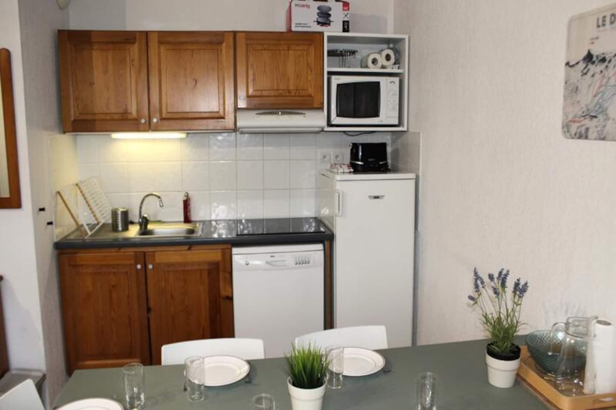 Med den majestätiska Pic de Bure som bakgrund inbjuder denna charmiga lägenhet i residenset "Les Chaumettes" dig att uppleva de franska Alpernas skönhet under alla årstider. Bara 100 meter från skidbackarna, tillgänglig via en bekväm gångbro, erbjuder denna sydostvända oas fantastisk utsikt över bergen och enkel tillgång till alpina äventyr. Oavsett om du är här för vintersport eller sommarvandringar, sätter det hisnande landskapet tonen för en oförglömlig semester. \n\nDenna mysiga tvårumslägenhet ligger på fjärde våningen och nås med hiss. Den rymmer upp till sex gäster. Vardagsrummet har en utdragbar dubbelsäng, medan sovalkoven har våningssängar och ett separat sovrum erbjuder en bekväm dubbelsäng. Det fullt utrustade köket har moderna apparater som diskmaskin, kylskåp, raclettegrill och mer, vilket gör matlagningen till en barnlek. Gå ut på den sydostvända balkongen för att njuta av panoramautsikten över Pic de Bure och de omgivande backarna. Ytterligare bekvämligheter inkluderar TV, gratis parkering och valfria täckta parkeringsplatser att hyra. \n\nResidensens utmärkta läge placerar dig bara några steg från turistbyrån och skidbackarna, vilket garanterar bekvämlighet för alla dina alpina aktiviteter. På sommaren kan du utforska de frodiga lederna och den pulserande lokala kulturen som gör denna region till ett resmål året runt. Husdjursvänligt boende och valfri linneuthyrning gör din vistelse ännu enklare, medan slutstädning garanterar en bekymmersfri avresa. \n\nOavsett om du söker spännande skiddagar, lugna vandringar eller helt enkelt en fridfull tillflyktsort i bergen, erbjuder denna lägenhet den perfekta basen för din alpina flykt.
