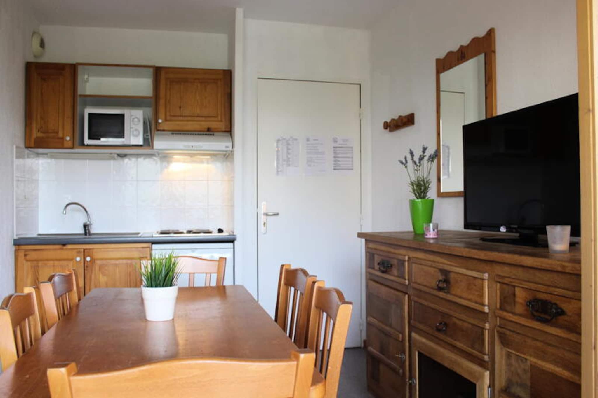 Njut av den fridfulla charmen i de franska Alperna på residenset "Les Chaumettes", där din alpina flykt börjar med hisnande utsikt över Pic de Bure och de omgivande topparna. Beläget bara 80 meter från gångbron som förbinder dig med turistbyrån och skidbackarna, erbjuder denna mysiga tillflyktsort den perfekta blandningen av bekvämlighet och naturlig skönhet. Oavsett om du är här för att karva dig genom orörd snö eller njuta av den lugna bergsatmosfären, är detta din port till oförglömliga äventyr. \n\nDenna förtjusande tvårumslägenhet, belägen på tredje våningen med hiss, rymmer bekvämt upp till sex gäster. Vardagsrummet har en bäddsoffa för två personer, medan en sovalkov med våningssängar och ett separat sovrum med dubbelsäng garanterar vilsamma nätter för alla. Det fullt utrustade köket, komplett med diskmaskin, mikrovågsugn och ugn, inbjuder dig att laga rejäla måltider efter en dag i backarna. Gå ut på den sydostvända balkongen för att njuta av ditt morgonkaffe medan solen går upp över det majestätiska alpina landskapet. Moderna bekvämligheter, inklusive en TV, bidrar till komforten under din vistelse. \n\nMed direkt tillgång till skidbacken bara 100 meter bort kan du enkelt ge dig ut i backarna varje morgon. Gratis parkering runt boendet, och täckta parkeringsplatser finns att hyra. I närheten hittar du turistbyrån och en mängd lokala bekvämligheter för att förbättra din vistelse. För husdjursälskare är dina lurviga vänner välkomna hit mot en liten avgift, vilket gör det till ett familjevänligt resmål för alla. \n\nOavsett om du söker spännande dagar i backarna eller fridfulla kvällar under den stjärnklara alpina himlen, erbjuder 'Les Chaumettes' den perfekta miljön för din bergssemester. Låt de franska Alpernas skönhet och komforten i detta charmiga boende skapa minnen som du kommer att vårda för alltid.