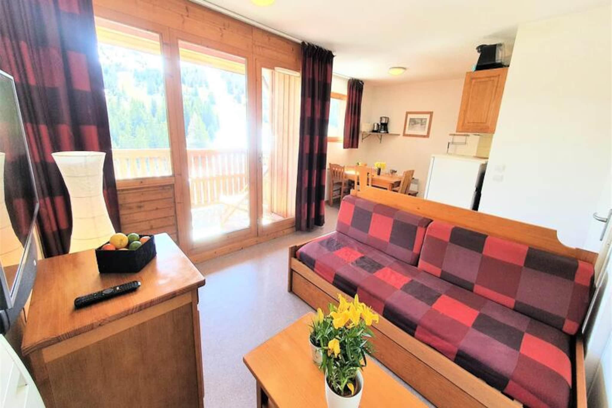 Högt ovanför de fridfulla landskapen i de franska Alperna erbjuder denna inbjudande lägenhet en fristad för både bergsälskare och äventyrslystna. Med hisnande utsikt över den ikoniska Pic de Bure och direkt tillgång till backarna via en bekväm gångbro känns varje ögonblick här som en hyllning till alpin skönhet. Oavsett om du smuttar på kaffe på den söderläge balkongen eller förbereder dig för en dag med skidåkning, sätter den friska bergsluften och de fantastiska vyerna tonen för en oförglömlig semester. \n\nLägenheten är utformad för att bekvämt rymma upp till sex gäster och har en genomtänkt planlösning med ett mysigt vardagsrum med en utdragbar bäddsoffa, ett privat sovrum med en lyxig dubbelsäng och en charmig våningssängssoffa. Det fullt utrustade pentryt inkluderar moderna apparater som kylskåp, diskmaskin, ugn, mikrovågsugn och till och med en raclettegrill för autentiska franska matupplevelser. Efter en dag i backarna kan du varva ner med en film på platt-TV:n eller bara koppla av i den varma atmosfären i denna alpina reträtt. \n\nBeläget bara 100 meter från backarna och turistbyrån, erbjuder residenset oöverträffad bekvämlighet. Gratis parkering omger byggnaden, medan täckt parkering finns att hyra. I närheten hittar du allt du behöver för en smidig vistelse, från skidförvaring till linneuthyrning och husdjursvänliga alternativ. Den pulserande byatmosfären garanterar enkel tillgång till lokala butiker och restauranger, vilket ger en touch av charm till din alpina resa. \n\nOavsett om du är här för vintersport eller sommarvandringar, är denna lägenhet din port till Superdévoluys underverk. Låt den majestätiska Pic de Bure inspirera dina dagar och skapa bestående minnen i hjärtat av de franska Alperna.