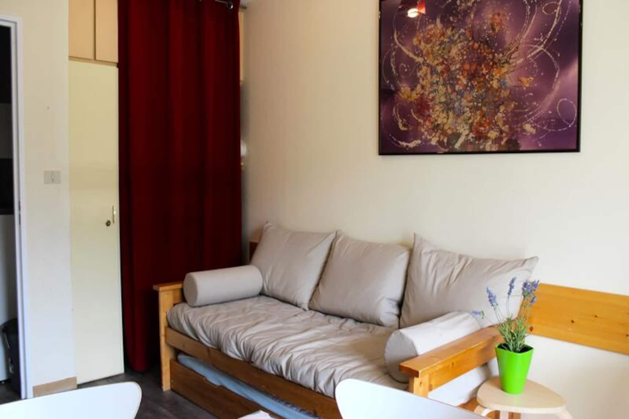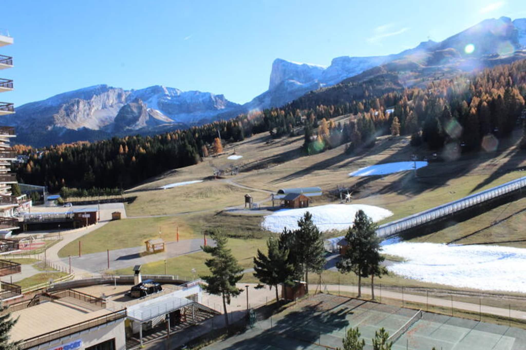 Högt ovanför Superdévoluys fridfulla landskap erbjuder denna inbjudande lägenhet en plats på första parkett med utsikt över den hisnande Pic de Bure och backarnas spänning. Tänk dig att vakna upp till panoramautsikt från din balkong i söderläge, där solen badar skidområdet i gyllene ljus, och att kliva direkt ut i backarna för en dag av alpint äventyr. Oavsett om du är här för att åka genom färskt puder eller bara njuta av bergens lugn, lovar denna bostad en oförglömlig vistelse i hjärtat av de franska Alperna. \n\nLägenheten är designad för komfort och praktisk användning och rymmer upp till fem gäster med ett mysigt vardagsrum med en utdragbar säng och ett separat sovrum med våningssängar. Det välutrustade pentryt har moderna apparater som diskmaskin, tvättmaskin, ugn och raclettegrill, vilket gör det enkelt att laga rejäla måltider efter en dag i backarna. Ett rymligt badrum med badkar ger en touch av avkoppling, medan TV:n och balkongen i söderläge garanterar stunder av avkoppling omgivna av fantastiska alpina vyer. \n\nBekvämt beläget vid foten av backarna, har residenset intern anslutning till Bois d'Aurouze, där butiker, tjänster och restauranger väntar. Parkering finns runt byggnaden, med täckta platser att hyra, vilket säkerställer enkel åtkomst. Husdjur är välkomna, och ytterligare tjänster som linneuthyrning och slutstädning ger flexibilitet för din vistelse. \n\nOavsett om du söker spännande skidbackar, fridfulla bergsvandringar eller helt enkelt en mysig tillflyktsort med oöverträffad utsikt, är denna lägenhet i Les Issarts Residence din port till skönheten och äventyret i Superdévoluy. Låt charmen i de franska Alperna inspirera din nästa semester.