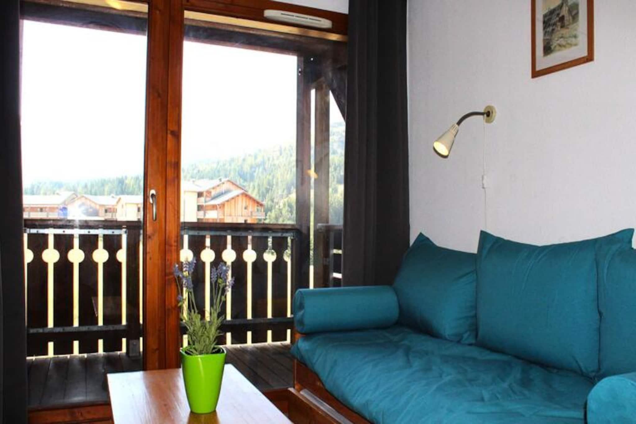 Mitt i de franska Alpernas fridfulla skönhet erbjuder denna charmiga lägenhet en mysig tillflyktsort för upp till fyra gäster. Belägen i ett komplex med åtta stugor, var och en med 30 omsorgsfullt designade lägenheter, är denna residens perfekt för dig som söker både komfort och närhet till äventyr. Bara 200 meter från backarna vaknar du upp till hisnande utsikt över Pic de Bure från din balkong i söderläge, redo att njuta av en dag med skidåkning eller att utforska de alpina spåren. Gratis parkering finns runt residensen, med möjlighet till täckt parkering för extra bekvämlighet.\n\nInuti är lägenheten utformad för att garantera en avkopplande vistelse. Vardagsrummet inbjuder dig att varva ner i en bekväm soffa, medan alkoven med våningssängar och ett separat sovrum med dubbelsäng ger gott om sovplatser. Det fullt utrustade pentryt har moderna bekvämligheter som diskmaskin, mikrovågsugn, filterkaffebryggare, brödrost och vattenkokare, vilket gör det enkelt att laga mat efter en dag av äventyr. En TV ingår för underhållning, och lägenheten är utrustad med mysiga täcken, med möjlighet att hyra påslakan.\n\nResidenset är idealiskt beläget bara 200 meter från butiker och skidbackar, vilket säkerställer att allt du behöver finns inom räckhåll. Husdjur är välkomna mot en extra avgift, och linneuthyrning finns tillgänglig för att göra din vistelse ännu bekvämare. Vid avresa erbjuds en valfri slutstädning, vilket garanterar en problemfri upplevelse. Med sitt fantastiska läge, omtänksamma bekvämligheter och välkomnande atmosfär är denna lägenhet ett perfekt val för din alpina semester.