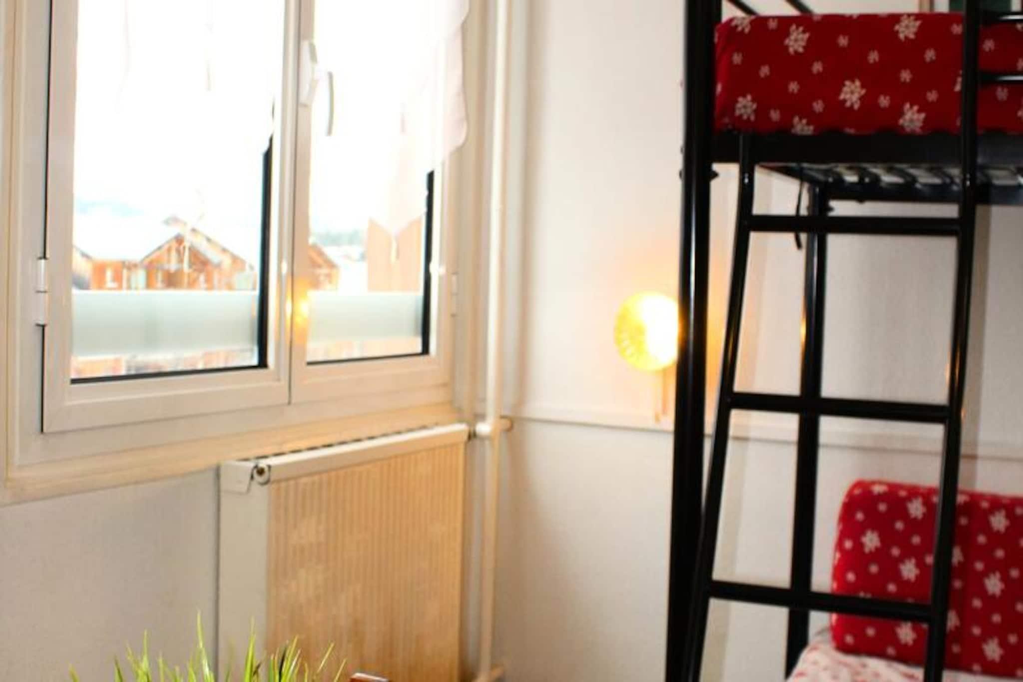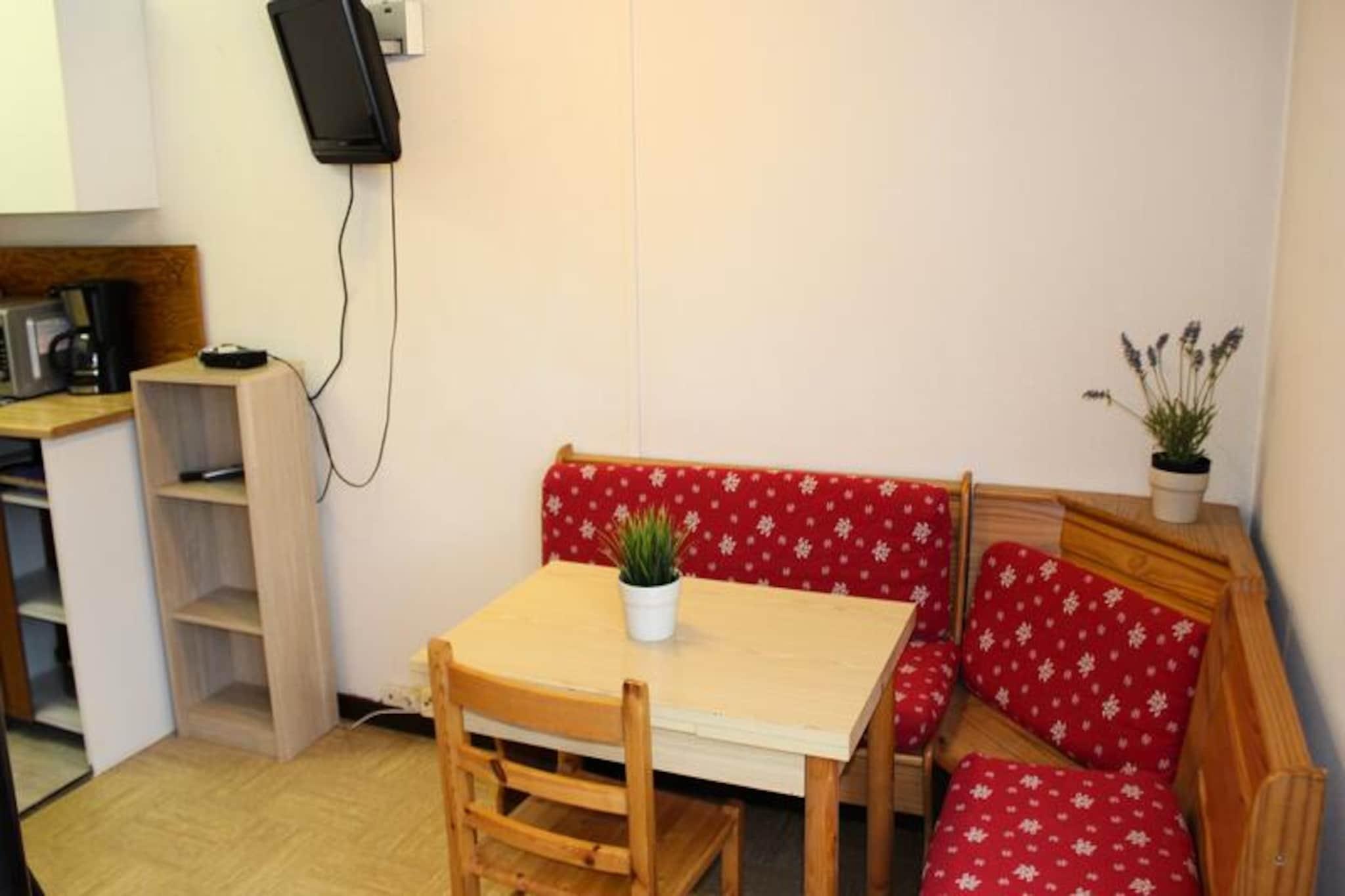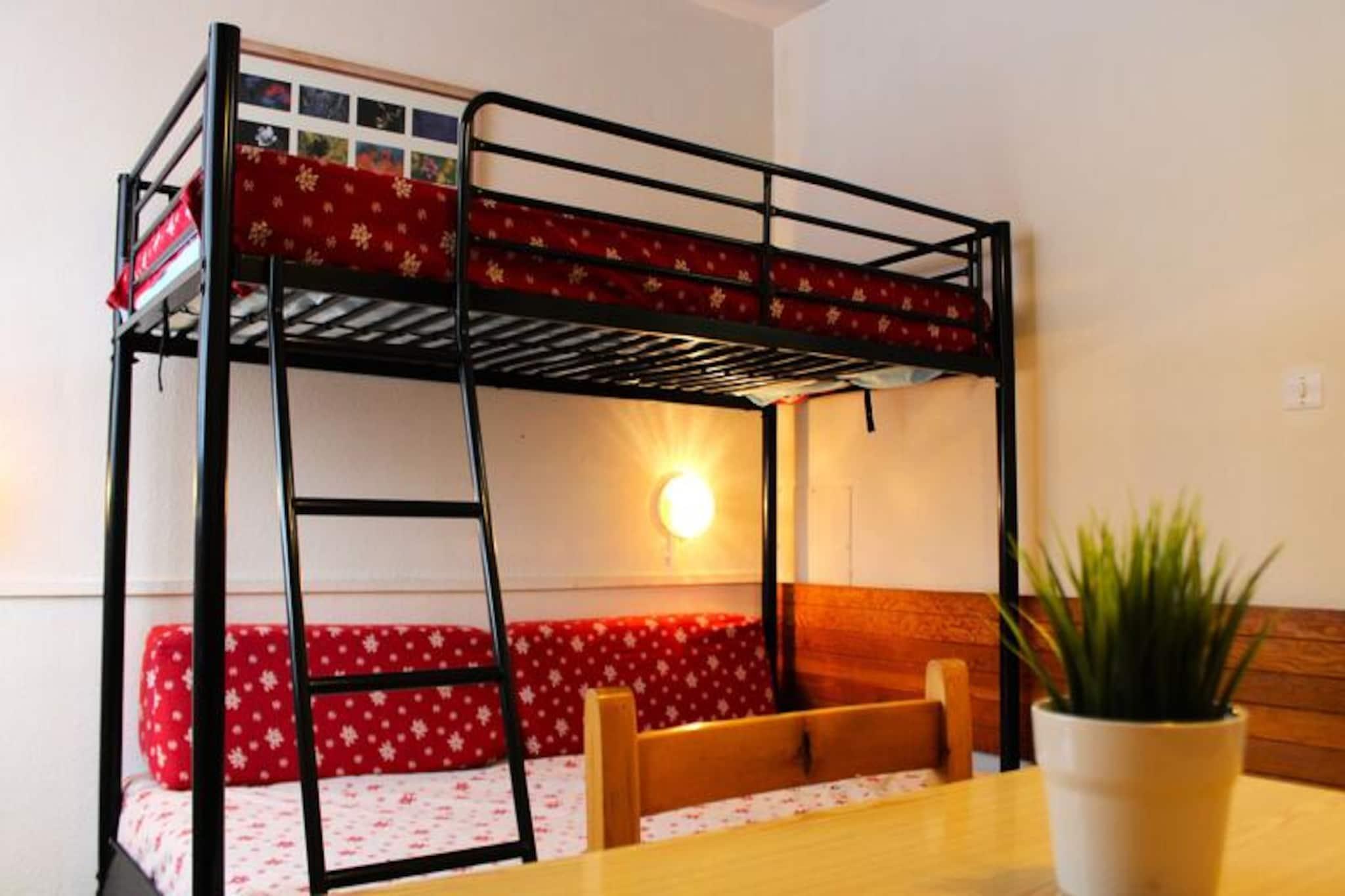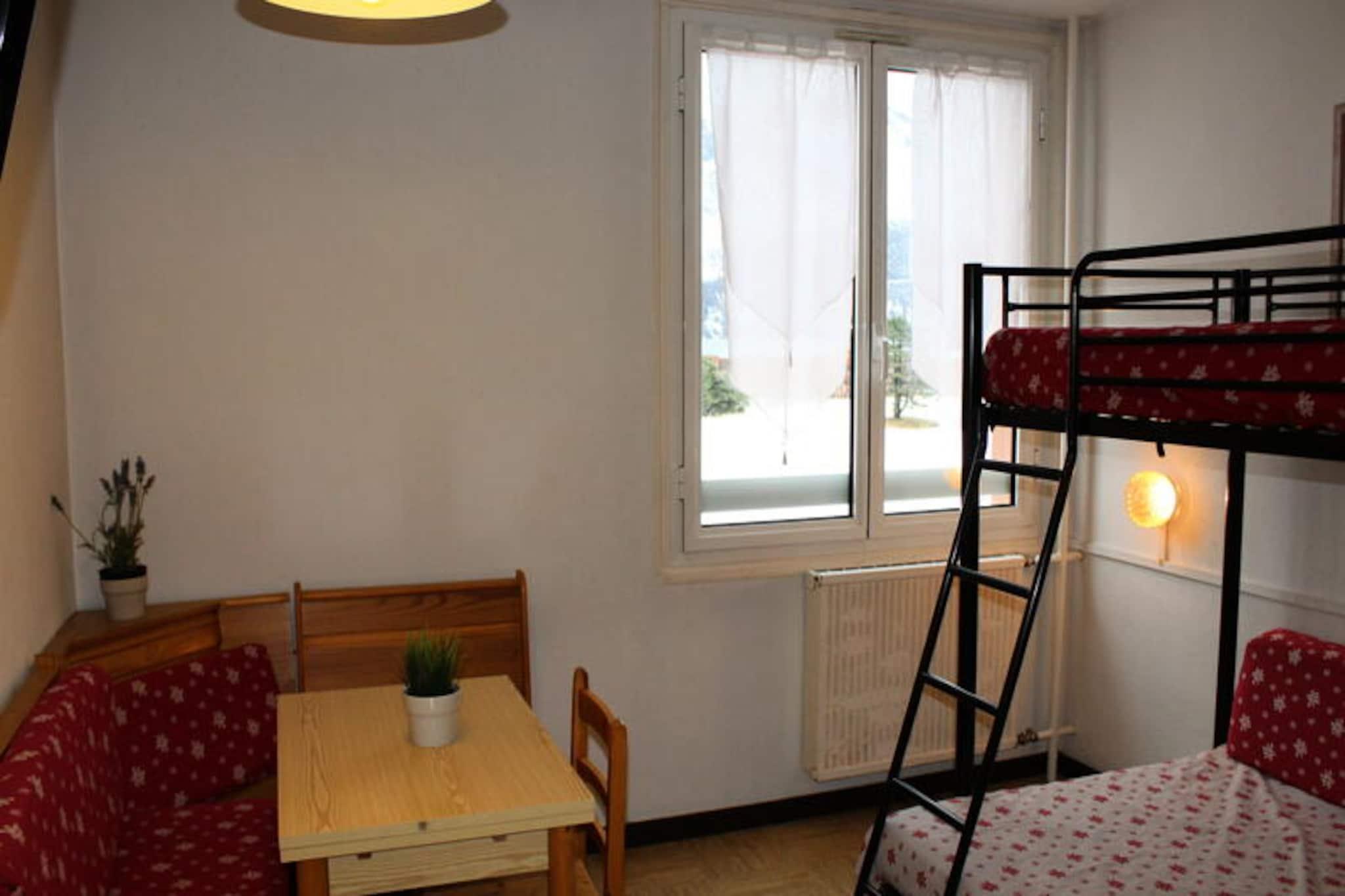 Högt ovanför de fridfulla landskapen i de franska Alperna inbjuder denna charmiga studiolägenhet i Superdévoluy dig att uppleva den perfekta alpina semestern. Med sitt läge vid foten av backarna börjar varje morgon med ett löfte om äventyr, oavsett om du snubblar genom färsk pudersnö eller utforskar natursköna stigar. Residenset, en slående kulturminnesmärkt byggnad från 1970-talet, erbjuder en unik blandning av retrocharm och modern bekvämlighet, vilket gör det till en idealisk bas för par eller små grupper som söker en mysig tillflyktsort. Från ditt fönster kan du njuta av den hisnande utsikten över Faraud-berget och låt dalens lugna skönhet sätta tonen för din vistelse. \n\nInuti är studion noggrant utformad för att maximera komfort och funktionalitet. Vardagsrummet har en dubbelsäng och en våningssäng, perfekt för två eller tre gäster. Ett välutrustat pentry väntar, komplett med diskmaskin, mikrovågsugn, spishäll och kaffebryggare, så att du kan laga rejäla måltider efter en dag med alpin utforskning. Badrummet, utrustat med dusch, erbjuder en uppfriskande plats att varva ner. Moderna bekvämligheter som TV och värme garanterar en bekväm vistelse, medan avsaknaden av balkong kompenseras av den fantastiska utsikten över dalen från sjätte våningen. \n\nBekvämlighet finns nära till hands med butiker och tjänster på bottenvåningen i bostaden. Gratis parkering omger byggnaden, och täckt parkering finns tillgänglig vid bokning. Oavsett om du är här för att åka skidor, vandra eller bara koppla av, erbjuder Superdévoluy en mängd aktiviteter och naturliga underverk att upptäcka. Den majestätiska Pic de Bure och det vidsträckta skidområdet ger oändliga möjligheter för friluftsentusiaster. \n\nVälj denna studio för dess oslagbara läge, historiska charm och mysiga atmosfär. Det är mer än bara ett ställe att bo på – det är din port till oförglömliga alpina minnen.