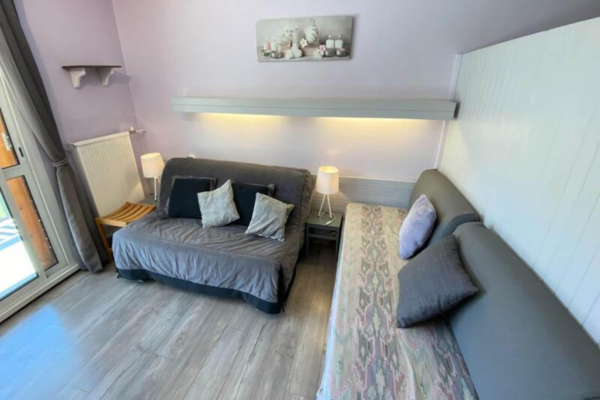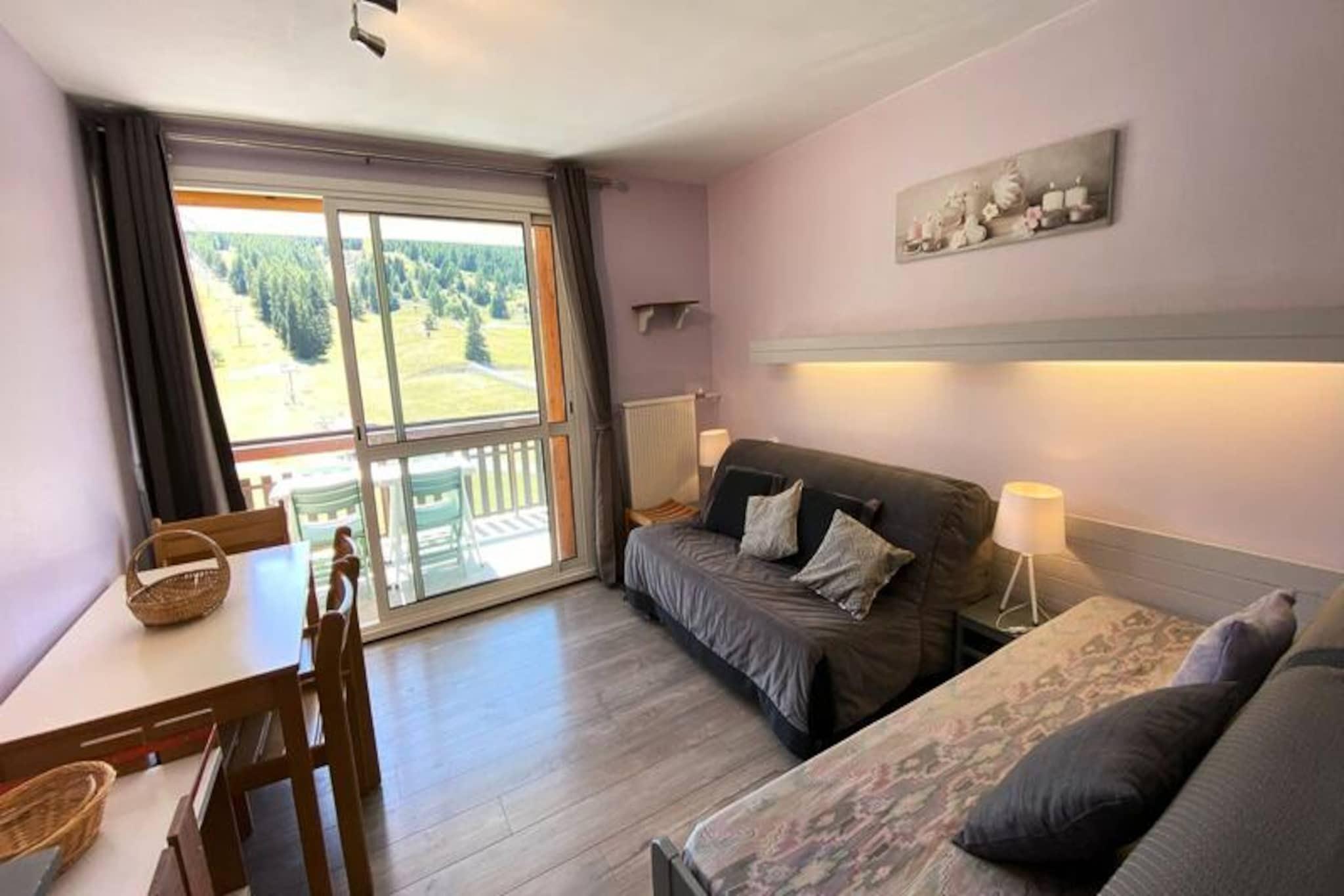 Högt ovanför Superdévoluys fridfulla landskap erbjuder denna charmiga studio en perfekt blandning av komfort och bekvämlighet för din alpina semester. Med sin balkong i söderläge vaknar du upp till en hisnande utsikt över Pic de Bure, medan studiorna som vetter mot dalen erbjuder en lugn utsikt mot det majestätiska berget Faraud. Oavsett om du är här för att åka skidor eller bara för att njuta av de franska Alpernas skönhet, lovar denna bostad en oförglömlig upplevelse. \n\nStudioen, som ligger på 5:e våningen i en kulturminnesmärkt byggnad från 1970-talet, har totalrenoverats för att erbjuda moderna bekvämligheter samtidigt som den behåller sin unika karaktär. Designad för upp till fyra gäster, har den ett mysigt vardagsrum med matplats, bäddsoffa och enkelsäng. En trävägg separerar sovalkoven med två våningssängar, vilket garanterar avskildhet och komfort. Pentryt är fullt utrustat med elektriska spisar, ugn, mikrovågsugn, kylskåp och diskmaskin, vilket gör det enkelt att laga mat efter en dag av äventyr. Badrummet har dusch, handfat och toalett, medan en TV och gratis parkering ger extra bekvämlighet till din vistelse. \n\nBeläget vid foten av backarna är denna residens en skidåkares dröm med omedelbar tillgång till skidområdet. På bottenvåningen hittar du butiker, restauranger och viktiga tjänster, vilket säkerställer att allt du behöver finns inom räckhåll. På sommaren förvandlas regionen till en fristad för vandrare och naturentusiaster, med stigar som leder till fantastiska alpina vyer. Husdjur är välkomna, och ytterligare bekvämligheter som linneuthyrning och täckt parkering finns tillgängliga för att förbättra din vistelse. \n\nOavsett om du söker spännande vintersporter eller fridfulla sommarresor, inbjuder denna studio i Superdévoluy dig att uppleva charmen i de franska Alperna med stil och komfort.