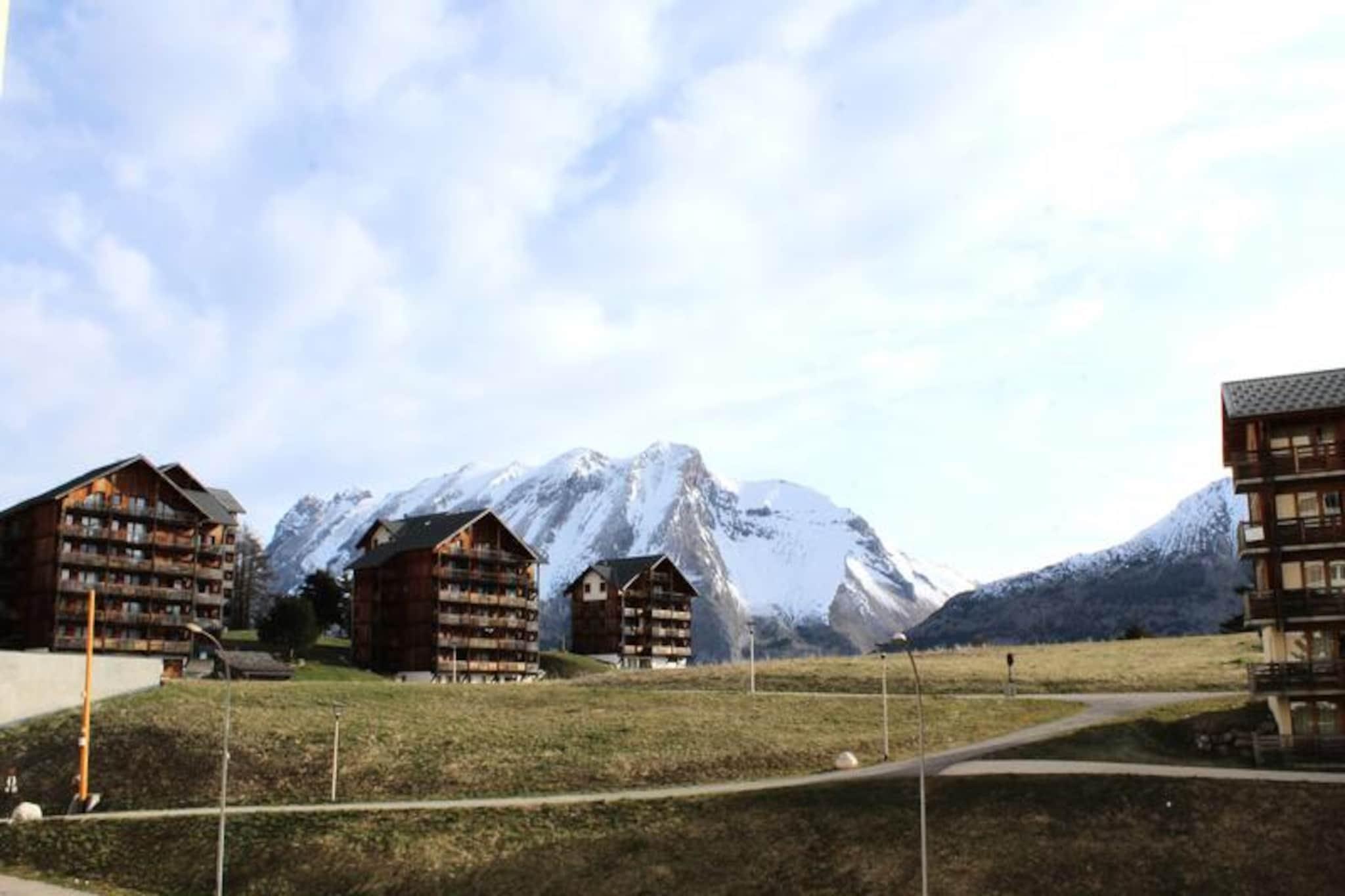 I hjärtat av skidorten Superdévoluy erbjuder denna charmiga studio en mysig tillflyktsort för två, perfekt belägen vid foten av backarna. Med fantastisk utsikt över det majestätiska Faraud-berget från sina fönster mot dalen, inbjuder detta boende dig att vakna upp till de franska Alpernas fridfulla skönhet varje morgon. Byggnaden, en arkitektonisk pärla från 1970-talet som erkänns som ett arv från 1900-talet, kombinerar vintagecharm med modern bekvämlighet, vilket gör den till en idealisk bas för dina alpina äventyr. Studioen på 17 m² är omsorgsfullt utformad för att maximera komfort och funktionalitet. Vardagsrummet har en dubbelsäng på mezzaninplan och en icke-bäddsoffa, vilket skapar ett mysigt men ändå praktiskt utrymme för avkoppling. Det fullt utrustade pentryt har ugn, spishäll och elektrisk kaffebryggare, perfekt för att laga mat efter en dag i backarna. Ett eget badrum med dusch och moderna bekvämligheter som TV och Wi-Fi garanterar en bekväm vistelse. Även om studion saknar balkong, erbjuder fönstren mot dalen en hisnande utsikt som tar in naturen. Bekvämligheter finns precis utanför dörren, med butiker och viktiga tjänster på bottenvåningen i bostaden. Gratis parkering finns runt byggnaden, och täckt parkering kan reserveras mot en extra avgift. För extra bekvämlighet erbjuds linneuthyrning och slutstädning, vilket garanterar en stressfri semesterupplevelse. Oavsett om du är här för de spännande skidbackarna eller för att utforska den pittoreska alpina omgivningen, erbjuder denna studio i Superdévoluy den perfekta blandningen av komfort, charm och tillgänglighet. Upplev magin i de franska Alperna och skapa oförglömliga minnen i denna välkomnande oas.