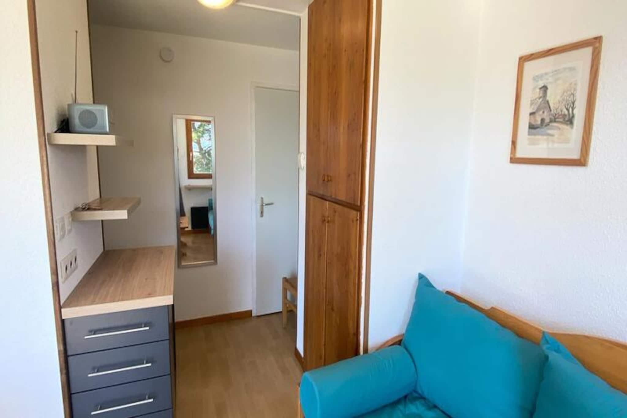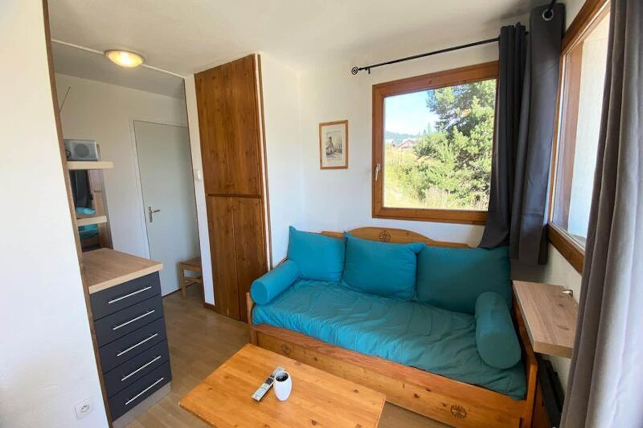 Vid foten av det majestätiska berget Faraud inbjuder detta charmiga alpina residens dig att uppleva den perfekta blandningen av komfort och äventyr. Bara 200 meter från backarna erbjuder det en lugn men bekväm miljö för din nästa semester. Tänk dig att vakna upp till hisnande utsikt över snöklädda toppar, gå ut på din privata balkong och andas in den friska bergsluften innan du ger dig ut på en dag med skidåkning eller utforskar den pittoreska omgivningen. Oavsett om du är här för vintersport eller sommarvandringar, lovar denna fastighet en oförglömlig vistelse i hjärtat av de franska Alperna. \n\nResidenset består av åtta stugor, var och en med 30 lägenheter som är omsorgsfullt utformade för grupper på fyra till tio gäster. Denna speciella lägenhet, som ligger på första våningen, är perfekt för upp till fyra personer och har ett mysigt vardagsrum med pentry, ett sovrum med dubbelsäng och en alkov med våningssängar. Det fullt utrustade köket har moderna bekvämligheter som diskmaskin, tvättmaskin, mikrovågsugn och kaffebryggare, vilket garanterar en problemfri vistelse. Ytterligare bekvämligheter som täcken, TV och värme gör det till en välkomnande tillflyktsort efter en dag av äventyr. \n\nBekvämt beläget nära butiker, tjänster och backarna, finns allt du behöver inom räckhåll. Gratis parkering finns runt boendet, med täckt parkering för extra bekvämlighet. För husdjursälskare välkomnar boendet pälsklingar mot en liten avgift, vilket gör det till ett perfekt val för familjer. På sommaren förvandlas regionen till en fristad för friluftsentusiaster, med natursköna stigar, livliga lokala marknader och möjligheter att fördjupa sig i Alpernas skönhet. \n\nOavsett om du söker spännande skidbackar, fridfulla bergsvandringar eller helt enkelt en mysig tillflyktsort omgiven av naturen, erbjuder denna alpina lägenhet den perfekta basen för att skapa bestående minnen. Låt Faraud-berget vara din bakgrund för en semester fylld av avkoppling, äventyr och den tidlösa charmen i de franska Alperna.
