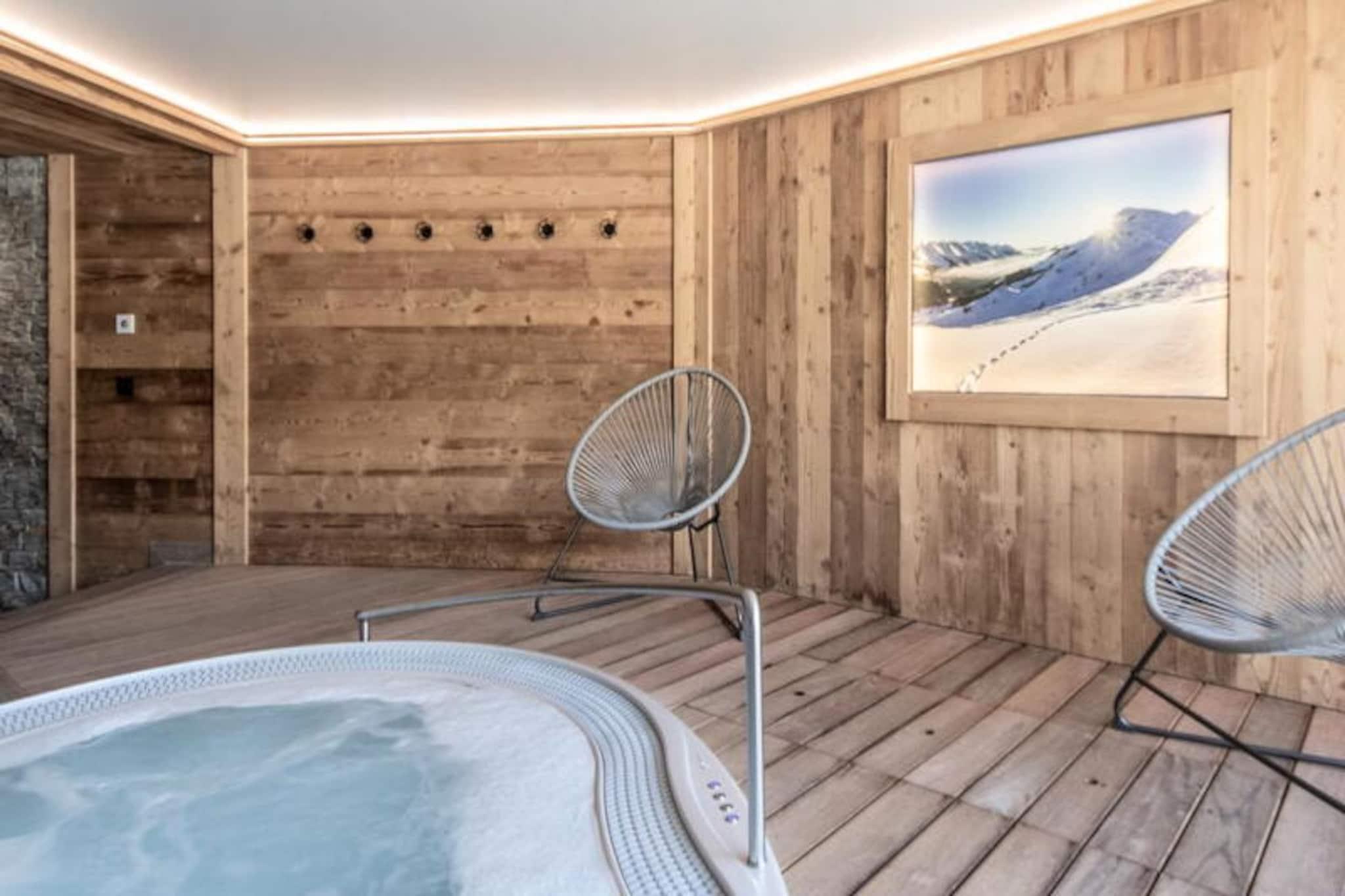 I hjärtat av de franska Alperna, där snötäckta toppar möter lugn alpin charm, erbjuder denna rymliga lägenhet på 82 m² en oförglömlig oas i bergen. Belägen på andra våningen i en traditionell stuga, är det den perfekta oasen för familjer eller grupper på upp till 11 personer som söker både äventyr och avkoppling. Med skidbackarna bara 50 meter från din tröskel börjar varje morgon med spänningen att kliva direkt in i det puderiga underlandet i Le Grand-Bornands berömda skidområde. Inuti är lägenheten noggrant utformad för att kombinera komfort och funktionalitet. Den öppna planlösningen inbjuder till mysiga kvällar tillsammans, medan det fullt utrustade köket gör det enkelt att laga mat. Efter en dag i backarna kan du dra dig tillbaka till stugans exklusiva wellnessavdelning, med en föryngrande bastu och ett infinity-spa som utlovar ultimat avkoppling. Med sängkläder och en privat utomhusparkeringsplats har varje detalj beaktats för att säkerställa en smidig vistelse. Bortom stugan ligger den charmiga byn Chinaillon bara 600 meter bort, och erbjuder en härlig blandning av lokala butiker, restauranger och afterski-atmosfär. För extra bekvämlighet finns en gratisbusshållplats bara 270 meter bort, som enkelt förbinder dig med närliggande sevärdheter. Oavsett om du utforskar de orörda lederna, njuter av regionala delikatesser eller bara njuter av den hisnande utsikten över bergen, placerar denna lägenhet dig i hjärtat av allt. Upplev magin i Alperna, där varje ögonblick är en inbjudan att skapa bestående minnen. Med sitt utmärkta läge, moderna bekvämligheter och lugna alpina miljö är denna chaletlägenhet din port till en extraordinär bergsflykt.