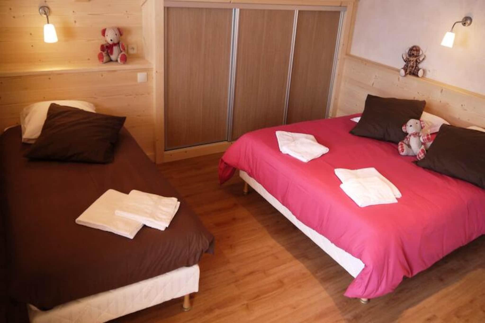 Beläget på en lugn sluttning med utsikt över den pittoreska bergskedjan Aravis, erbjuder Le Chalet Panorama en lugn tillflyktsort för upp till 10 gäster. Denna rymliga fristående stuga på 152 m² inbjuder dig att fördjupa dig i de franska Alpernas skönhet, med sin terrass i söderläge som erbjuder hisnande utsikt över de omgivande topparna och den charmiga byn nedanför. Oavsett om du söker en lugn tillflyktsort eller en äventyrsfylld semester, är denna stuga den perfekta basen. \n\nInuti hittar du ett varmt och inbjudande utrymme som är omsorgsfullt utformat för komfort och bekvämlighet. Stugan har ett fullt utrustat kök, mysiga vardagsrum och gott om sovplatser för att rymma familjer eller grupper av vänner. Sängarna är bäddade vid ankomst, och köks- och handdukar tillhandahålls, vilket garanterar en problemfri vistelse. Med garage, utomhusparkering och husdjursvänliga policyer har varje detalj beaktats för att göra ditt besök så smidigt som möjligt. \n\nStugan ligger bara 2000 meter från centrum av Grand-Bornand Village och är perfekt placerad för att utforska regionen. Skidbackarna ligger bara 2800 meter bort, medan längdskidspår finns 2400 meter från din dörr. En gratisbusshållplats ligger bekvämt belägen bara 200 meter bort, vilket gör det enkelt att ta sig till allt som området har att erbjuda. På sommaren finns det gott om vandrings- och cykelleder, vilket erbjuder oändliga möjligheter att komma i kontakt med naturen. \n\nOavsett om du njuter av den alpina utsikten från terrassen, utforskar de närliggande backarna eller njuter av Grand-Bornands livliga charm, lovar Le Chalet Panorama en oförglömlig bergssemester. Låt Alpernas skönhet inspirera ditt nästa äventyr.