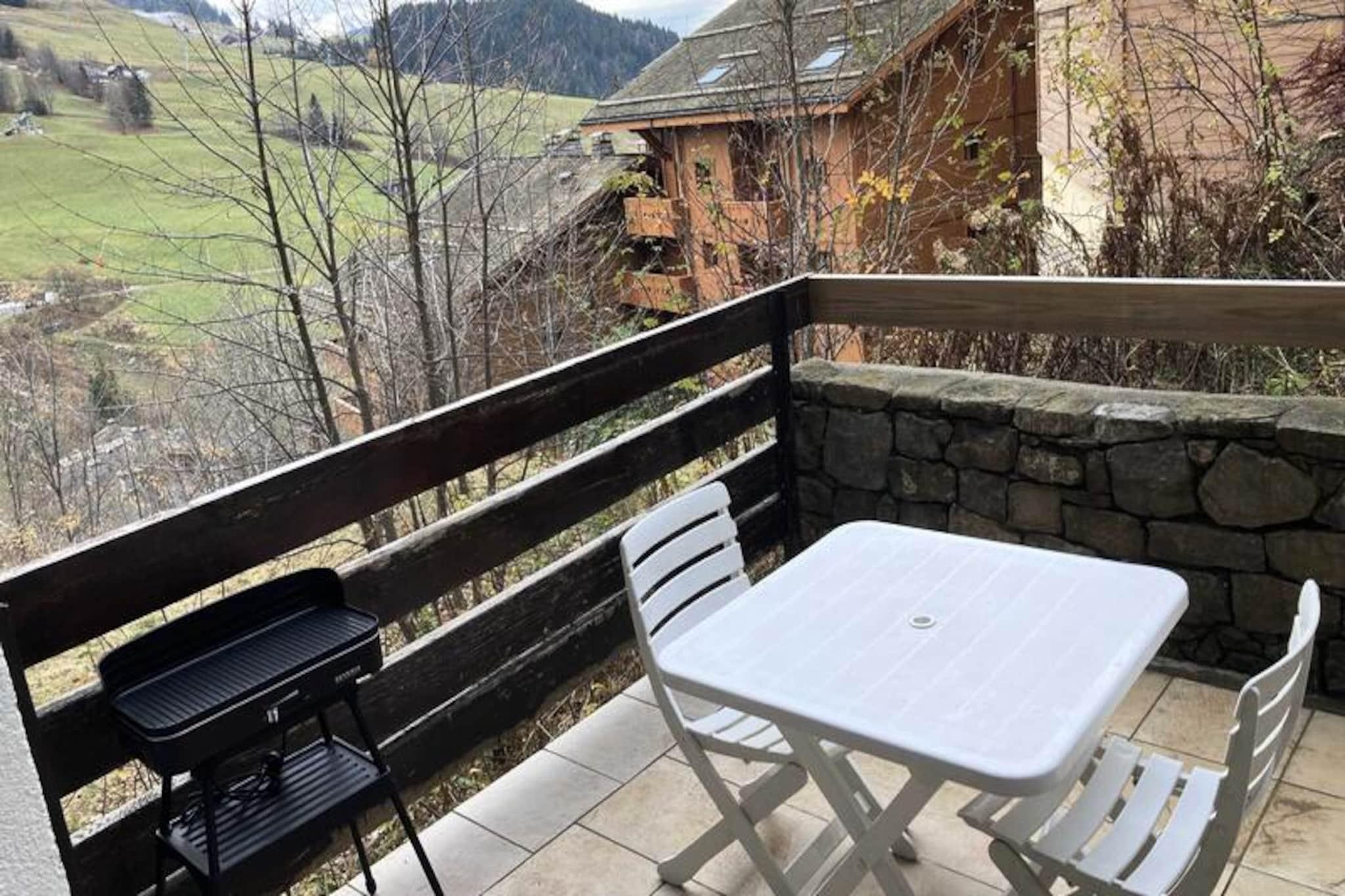 I utkanten av den pittoreska byn Le Grand-Bornand erbjuder denna charmiga lägenhet på 17 m² en mysig tillflyktsort för upp till tre gäster. Med en terrass i sydvästläge vaknar du upp till hisnande, fri utsikt över de omgivande bergen, vilket gör varje ögonblick här till en fridfull flykt i naturens skönhet. Oavsett om du söker en lugn tillflyktsort eller ett aktivt alpint äventyr, erbjuder denna bostad den perfekta basen. \n\nInuti är lägenheten noggrant utformad för att maximera komfort och funktionalitet. Det ljusa vardagsrummet är perfekt för avkoppling efter en dags utforskande, medan det kompakta köket låter dig enkelt laga mat. Terrassen är den perfekta platsen att smutta på ditt morgonkaffe eller njuta av en kvällsdrink medan solen går ner över topparna. Privat utomhusparkering garanterar bekvämlighet, och närheten till den kostnadsfria busshållplatsen – bara 20 meter bort – gör det enkelt att ta sig runt. Observera att husdjur inte är tillåtna och att gäster måste ta med egna lakan och handdukar. Städning är obligatorisk för att garantera en perfekt vistelse för alla besökare.\n\nDenna lägenhet ligger bara 800 meter från hjärtat av Le Grand-Bornand (Chinaillon) och 700 meter från skidbackarna, och är perfekt belägen för både avkoppling och äventyr. På vintern kan du njuta av spänningen med skidåkning och snowboardåkning, medan sommaren ger möjligheter till vandring, cykling och att njuta av det alpina landskapet. Den närliggande transferservicen garanterar enkel tillgång till alla byns bekvämligheter och attraktioner.\n\nOavsett om du är här för att åka i färskt pudersnö eller vandra genom frodiga bergsleder, inbjuder denna mysiga lägenhet dig att uppleva charmen i Le Grand-Bornand. Med sin fantastiska utsikt och bekväma läge är det det perfekta valet för en minnesvärd alpin semester.