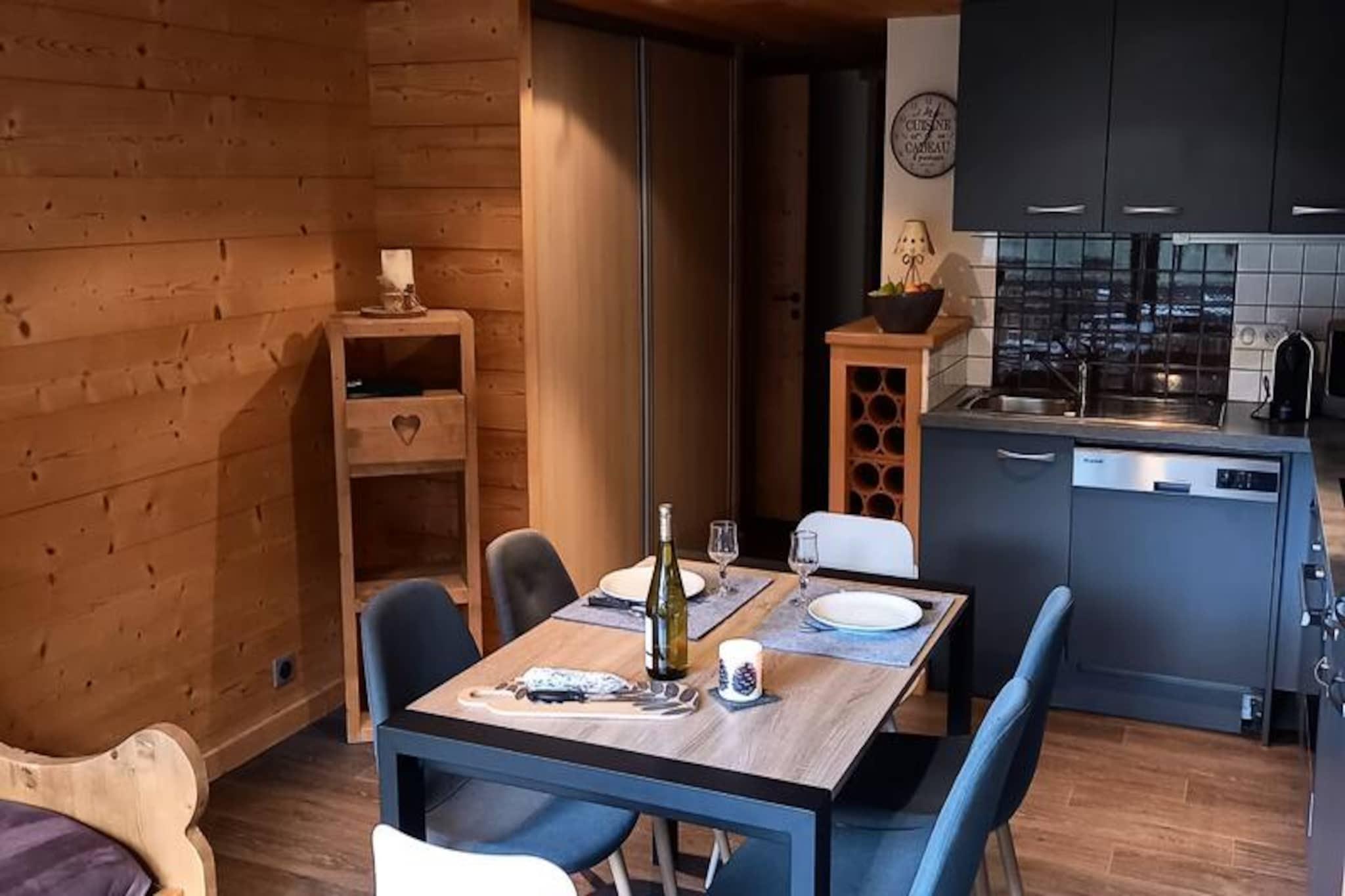 På tredje våningen i ett charmigt alpint residens inbjuder denna mysiga lägenhet på 36 m² dig att varva ner och njuta av den hisnande utsikten över bergen från sin balkong i söderläge. Perfekt för en familj eller en grupp vänner, erbjuder den en varm och välkomnande tillflyktsort i hjärtat av de franska Alperna. Oavsett om du söker äventyr i backarna eller fridfulla stunder omgiven av naturen, garanterar denna fastighet en minnesvärd vistelse. Inuti hittar du alla bekvämligheter som behövs för en avkopplande semester. Lägenheten rymmer upp till fem gäster och har ett välutrustat kök, ett bekvämt vardagsrum och omsorgsfullt arrangerade sovplatser. De ljusa interiörerna är utformade för att få dig att känna dig som hemma, medan moderna bekvämligheter garanterar bekvämlighet under hela din vistelse. Parkering finns på en utomhusparkering och sängkläder tillhandahålls för din komfort. Handdukar kan hyras på begäran, och städning krävs för att bibehålla fastighetens orörda skick. Denna lägenhet ligger bara 500 meter från utförsåkningsbackarna och längdskidspåren och är en dröm för vintersportsentusiaster. På sommaren erbjuder det närliggande fritidsområdet och poolen roliga aktiviteter för alla åldrar. En gratisbusshållplats ligger bekvämt belägen bara 20 meter bort, vilket ger enkel tillgång till Grand-Bornands linbanor och byns centrum, som ligger bara 1 kilometer bort. För de som anländer med buss ligger stationen bara 1,1 kilometer från boendet. Med sitt utmärkta läge och fantastiska alpina omgivningar är denna lägenhet den perfekta basen för att utforska Grand-Bornands skönhet. Oavsett om du åker skidor, vandrar eller bara njuter av den fridfulla atmosfären, är varje ögonblick här en möjlighet att skapa oförglömliga minnen.