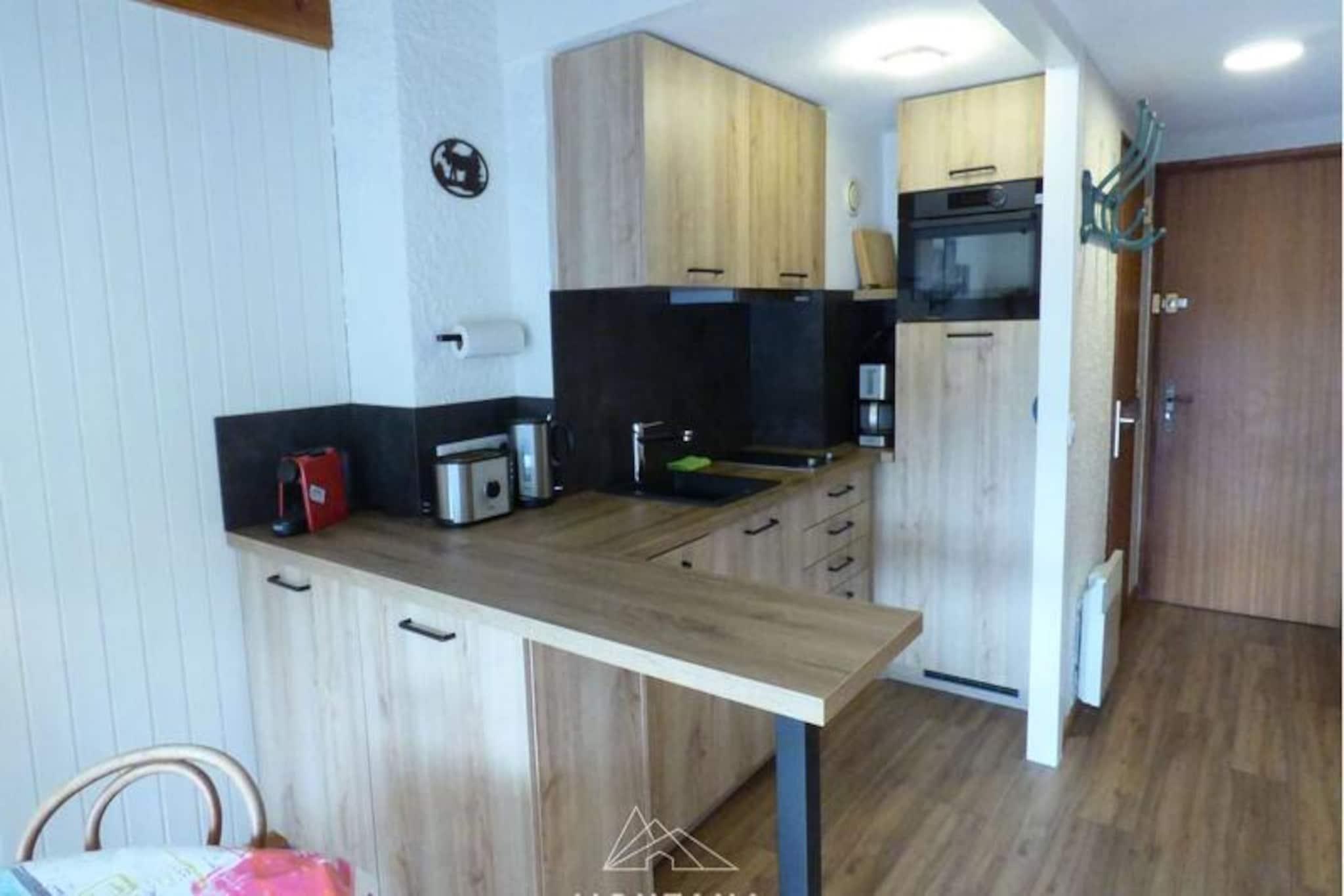 Högt ovanför den charmiga byn Le Chinaillon erbjuder denna förtjusande enrumslägenhet en alpin tillflyktsort som perfekt blandar bekvämlighet och komfort. Tänk dig att vakna upp till den friska bergsluften och gå ut på din balkong i söderläge för att njuta av den fantastiska utsikten över snötäckta toppar. Med backarna precis utanför dörren är detta den ultimata oasen för skidentusiaster som söker enkel tillgång till de orörda lederna i de franska Alperna. Oavsett om du är här för vintersport eller sommarvandringar är miljön inget annat än magisk. \n\nInuti är lägenheten omsorgsfullt utformad för att rymma upp till fyra gäster. Första våningen har ett mysigt vardagsrum, ett välutrustat kök och en separat toalett, medan den övre våningen – tillgänglig via branta trappor – har ett lugnt sovrum med dubbelsäng, en sovalkov med våningssängar och ett badrum med badkar och toalett. Den varma, inbjudande interiören gör det enkelt att varva ner efter en dag av äventyr, medan balkongen erbjuder en lugn plats att njuta av den alpina atmosfären. Observera att lakan och handdukar inte ingår och att lägenheten är rökfri. \n\nBeläget bara 350 meter från skidliftarna och 400 meter från hållplatsen för den kostnadsfria skidbussen, hittar du allt du behöver inom bekvämt räckhåll. Byns centrum, med sina pittoreska butiker och restauranger, ligger bara 1200 meter bort och erbjuder en smak av autentisk savoyardsk charm. Oavsett om du utforskar backarna, njuter av lokala delikatesser eller bara kopplar av i den lugna omgivningen, placerar denna lägenhet dig i hjärtat av allt. \n\nPerfekt för par eller små familjer, denna mysiga oas inbjuder dig att uppleva skönheten och spänningen i de franska Alperna under varje säsong. Låt de majestätiska bergen inspirera till oförglömliga minnen.
