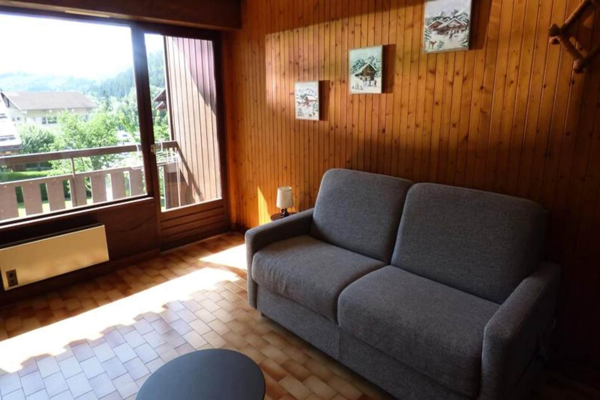 Fastigheten, tillsammans med sin mysiga och funktionella design, rymmer upp till 4 gäster i en kombination av studio och stuga på 31,5 m². Vardagsrummet är möblerat med en rapido-soffa som förvandlas till en säng, perfekt för en god natts sömn. Hytten innehåller två uppsättningar våningssängar, vardera 80 cm, vilket gör den perfekt för familjer eller små grupper. Lägenheten har även en balkong i västerläge, så att gästerna kan njuta av den omgivande utsikten. Observera att lakan och handdukar inte tillhandahålls och att husdjur inte är tillåtna. Gästerna kan också förvänta sig att betala turistskatten på plats, och ytterligare tjänster, såsom uthyrning av sängkläder, kan ordnas genom byrån. Fastighetens läge erbjuder bekväm tillgång till närliggande attraktioner, vilket gör det till en utmärkt bas för både vinter- och sommaraktiviteter. Det ligger bara 1 km från linbanorna, vilket ger enkel tillgång till skidåkning under vintern och vandringsleder under de varmare månaderna. Fastigheten ligger 250 meter från lokala butiker för vardagliga saker och bara 50 meter från skidbusshållplatsen, vilket förbättrar tillgängligheten till skidområdena och byns centrum. Dessutom har fastigheten goda förbindelser med stora resvägar, med Annecys SNCF-tågstation som ligger 32 km bort och Genèves flygplats 52 km från fastigheten. För de som kommer längre bort ligger Lyons flygplats 155 km bort, vilket ger alternativ för internationella resenärer. Även om boendet inte anger en komplett köksinställning, är den designad för korta vistelser med komfort i åtanke. Badrummet har ett badkar med tofflor, perfekt för avkoppling efter en lång dag med utomhusaktiviteter, och den separata toaletten erbjuder extra bekvämlighet. Lägenheten är utrustad med värme för att säkerställa komfort under kallare månader. Även om det inte är en egendom med självhushåll, ger närheten till lokala butiker gästerna lätt tillgång till mat och nödvändigheter, vilket gör det till ett praktiskt val för dem som letar efter en funktionell och välplacerad bas för sin vistelse.