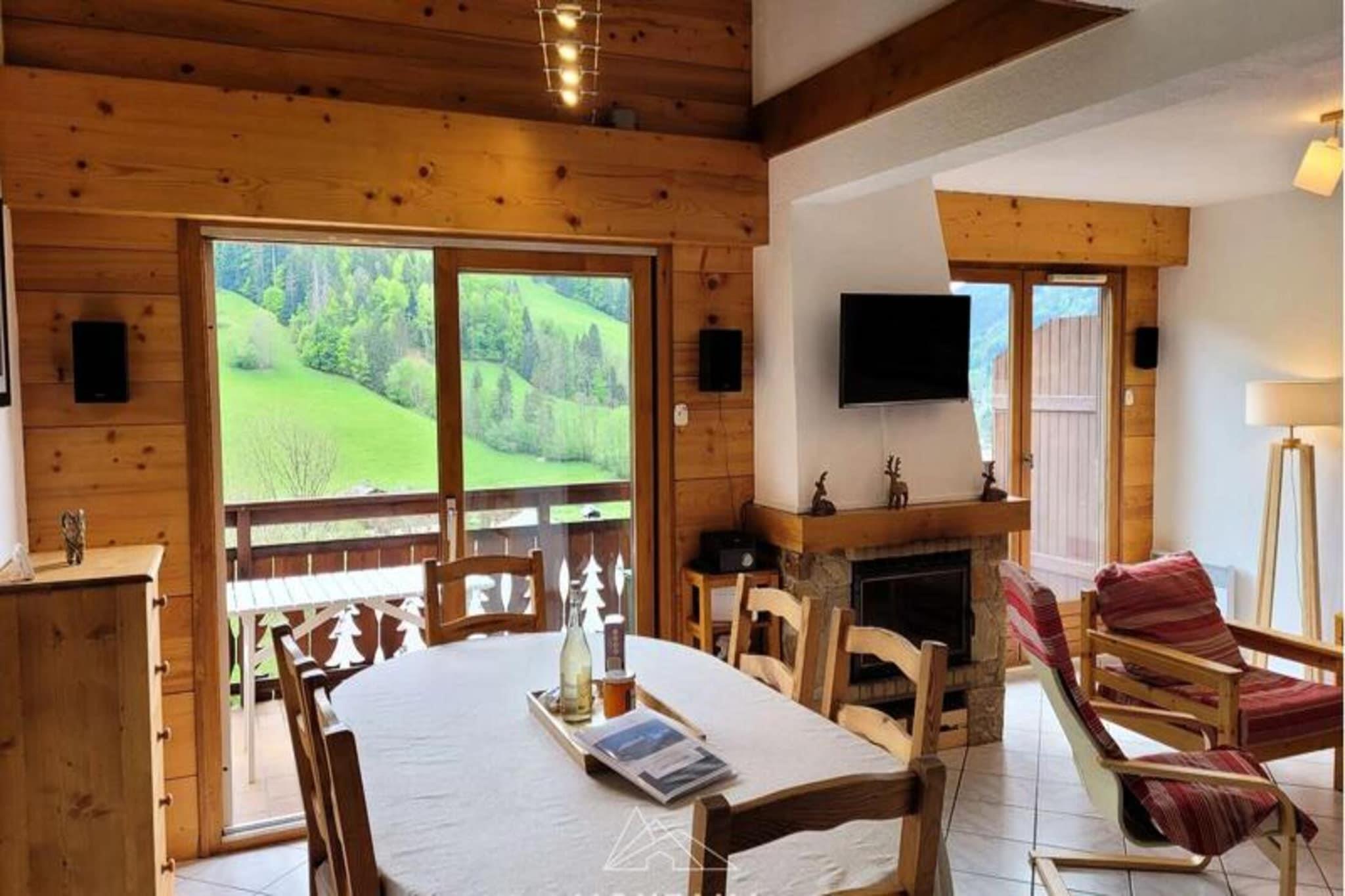 Fastigheten, tillsammans med sin rymliga design och bekväma layout, är idealisk för familjer eller grupper på upp till 6 personer. Lägenheten har 3 sovrum, inklusive två dubbelrum (160 cm) och ett sovrum med två 90 cm sängar, som erbjuder flexibla sovmöjligheter. I vardagsrummet finns en 140 cm bäddsoffa, perfekt för ytterligare sovutrymme. Gästerna kan njuta av balkongen i sydvästläge, som erbjuder vacker utsikt över berget Danay och skidskyttestadion. Lägenheten är inte husdjursvänlig och djur är inte tillåtna. Lakan och handdukar tillhandahålls inte, men de kan hyras mot en extra avgift. Dessutom garanterar obligatorisk städservice en problemfri vistelse. Lägenheten är bekvämt belägen med enkel tillgång till närliggande sevärdheter och resestationer. Den charmiga byn och skidskyttestadion ligger bara några ögonblick bort, och erbjuder natursköna vyer från själva lägenheten. Annecys SNCF-tågstation ligger 32 km bort, vilket gör det till ett enkelt resmål för tågresenärer. För internationella gäster ligger Genèves flygplats 52 km bort, och till Lyons flygplats är det 155 km med bil. Detta centrala läge möjliggör både fridfull tillflyktsort och enkel tillgång till närliggande tjänster, vilket gör det till en perfekt plats för dem som vill utforska regionen eller njuta av lokala aktiviteter. Lägenheten är utrustad med ett fullt fungerande kök öppet mot vardagsrummet, vilket ger gästerna möjlighet att laga sin egen mat. Köket innehåller nödvändiga apparater för bekvämlighet, och vardagsrummet är utformat för avkoppling. Lägenheten har också ett dedikerat skidrum i källaren för förvaring, samt ett individuellt stängt garage. Andra bekvämligheter inkluderar en dekorativ öppen spis som ger utrymmet en mysig touch. Layouten förstärks ytterligare av en mezzaninvind, idealisk för barns lek, vilket ger både praktisk och komfort.