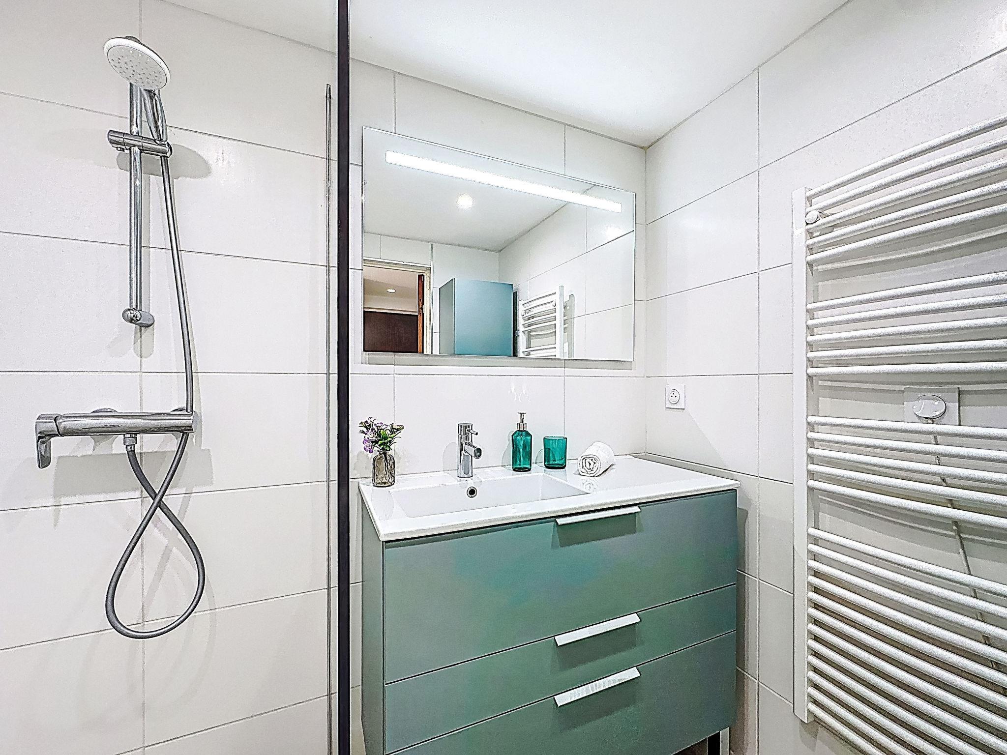 2-room apartment 40 m2 on 3rd floor. Living/sleeping room with 1 double sofabed (140 cm, length 190 cm), TV (flat screen). Exit to the balcony. 1 room with 1 french bed (140 cm, length 190 cm). Open kitchen (oven, dishwasher, 3 induction hot plates, toaster, kettle, microwave, freezer, electric coffee machine). Shower, sep. WC. Air-conditioning. Balcony 6 m2, west facing position. Balcony furniture. Partial view of the sea. Facilities: washing machine. Internet (WiFi, free). Parking space n 71. Please note: non-smokers only. Smoke alarm. Offer by a commercial proprietor according to Art. 155, IV, CGI 30133001402HL