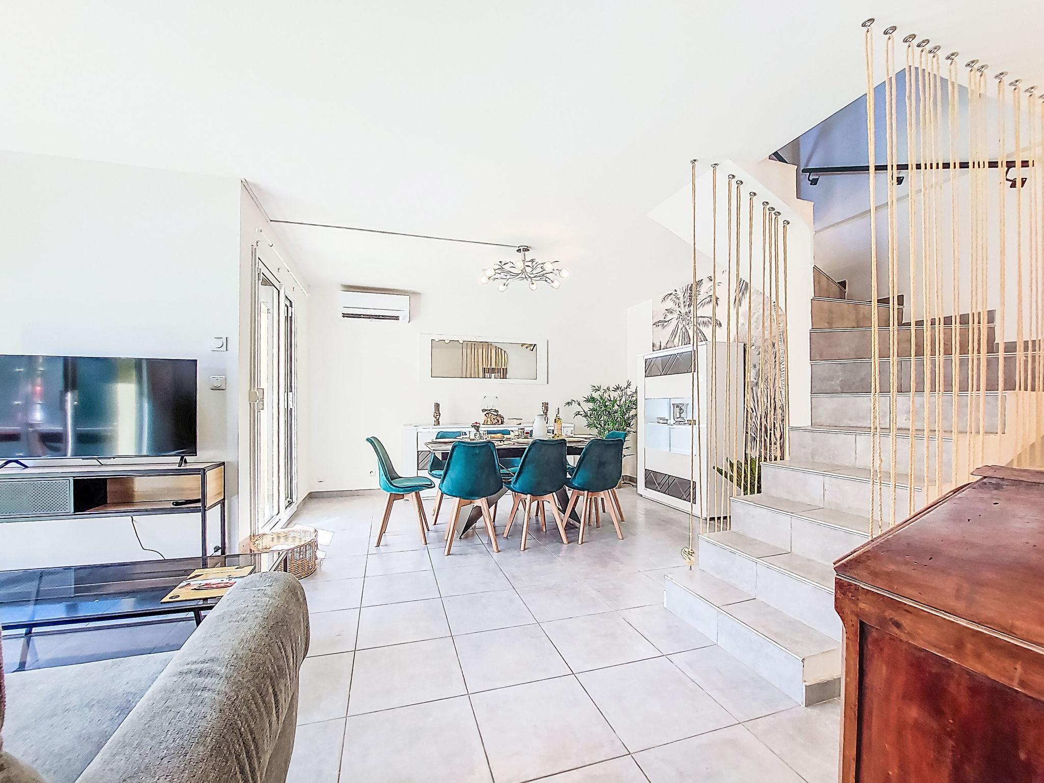 "Les Bleuets", 5-room terraced house 97 m2 on 2 levels. Object suitable for 6 adults + 2 children. Fully renovated, comfortable furnishings: living/dining room with dining table and TV (flat screen), air conditioning. Exit to the garden. 1 room with 1 french bed (160 cm, length 190 cm), air conditioning. Kitchen (oven, dishwasher, 4 induction hot plates, toaster, kettle, microwave, freezer, electric coffee machine). Exit to the garden. Bathroom, sep. WC. Electric heating. Upper floor: 1 children's room with 1 x 2 bunk beds (80 cm, length 190 cm), air conditioning. 2 rooms, each room with 1 french bed (140 cm, length 190 cm), air conditioning. Shower/WC. Electric heating, air-conditioning. Large terrace, garden 150 m2. Terrace furniture. Facilities: washing machine, baby cot, baby changing unit. Internet (WiFi, free). Parking (2 cars). Please note: suitable for families. Non-smoking house. Maximum 1 small pet/ dog allowed. Smoke alarm. Offer by a private individual according to Art. 155, IV of CGI. 30133001164WX