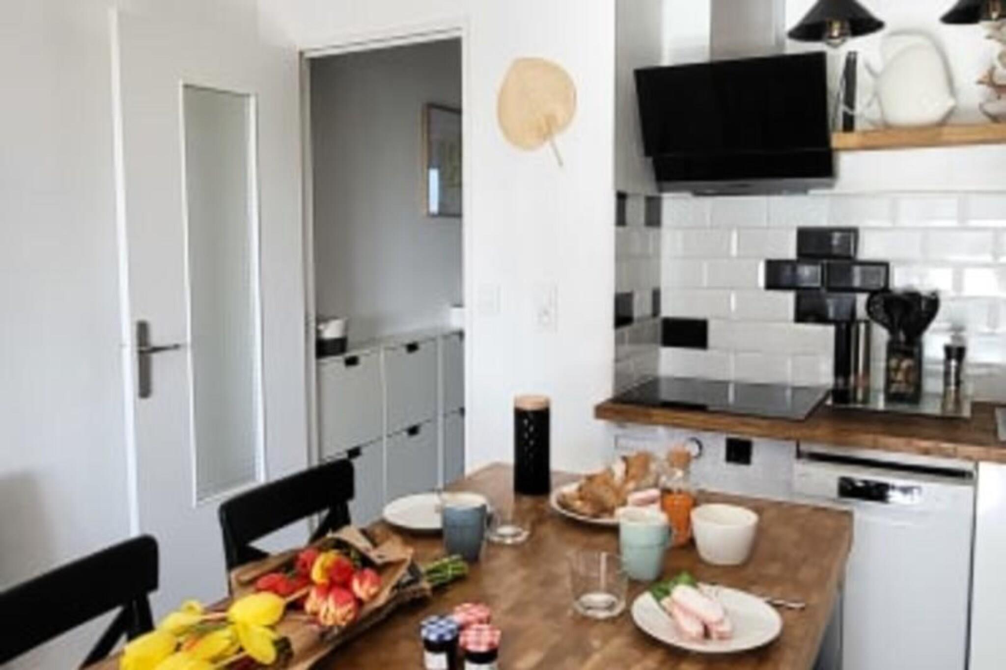 Denna fantastiska, moderna lägenhet med 1 sovrum ligger på 3:e våningen i en säker bostad och erbjuder en bekväm vistelse för upp till 2 gäster. Den har en 140 cm säng, 65x65 kvadratiska kuddar och ett täcke. Lägenheten är djurvänlig, med en avgift på 30 EURO för hundar på begäran. En förinspelad insättning på EURO400 krävs, med en registreringsavgift på EURO7,94. Gratis parkering finns framför boendet eller på gatan under hela din vistelse. Lägenheten är idealiskt belägen bara 200 meter från stranden och 12 minuters promenad till Grau du Rois centrum. Du kommer att befinna dig i hjärtat av Boucanet-distriktet, omgivet av restauranger, butiker och en lokal marknad som är öppen under säsongen. I närheten kan du utforska fiskehamnen och se trålare som återvänder med sin fångst, eller besöka den första marinan i Europa. Området erbjuder också natursköna vyer över Camargue, där du kan se rosa flamingos flyga över vattnet. Inuti lägenheten finns ett fullt utrustat kök med 3 induktionsbrännare, en kombinerad mikrovågsugn, kyl, frys, diskmaskin, tvättmaskin och en Senseo kaffebryggare. Vardagsrummet vetter mot en loggia där du kan njuta av måltider med familj eller vänner. Duschrummet har dusch, handfat med förvaring och toalett. Lakan och handdukar kan tillhandahållas för 20 EURO för 2 personer.
