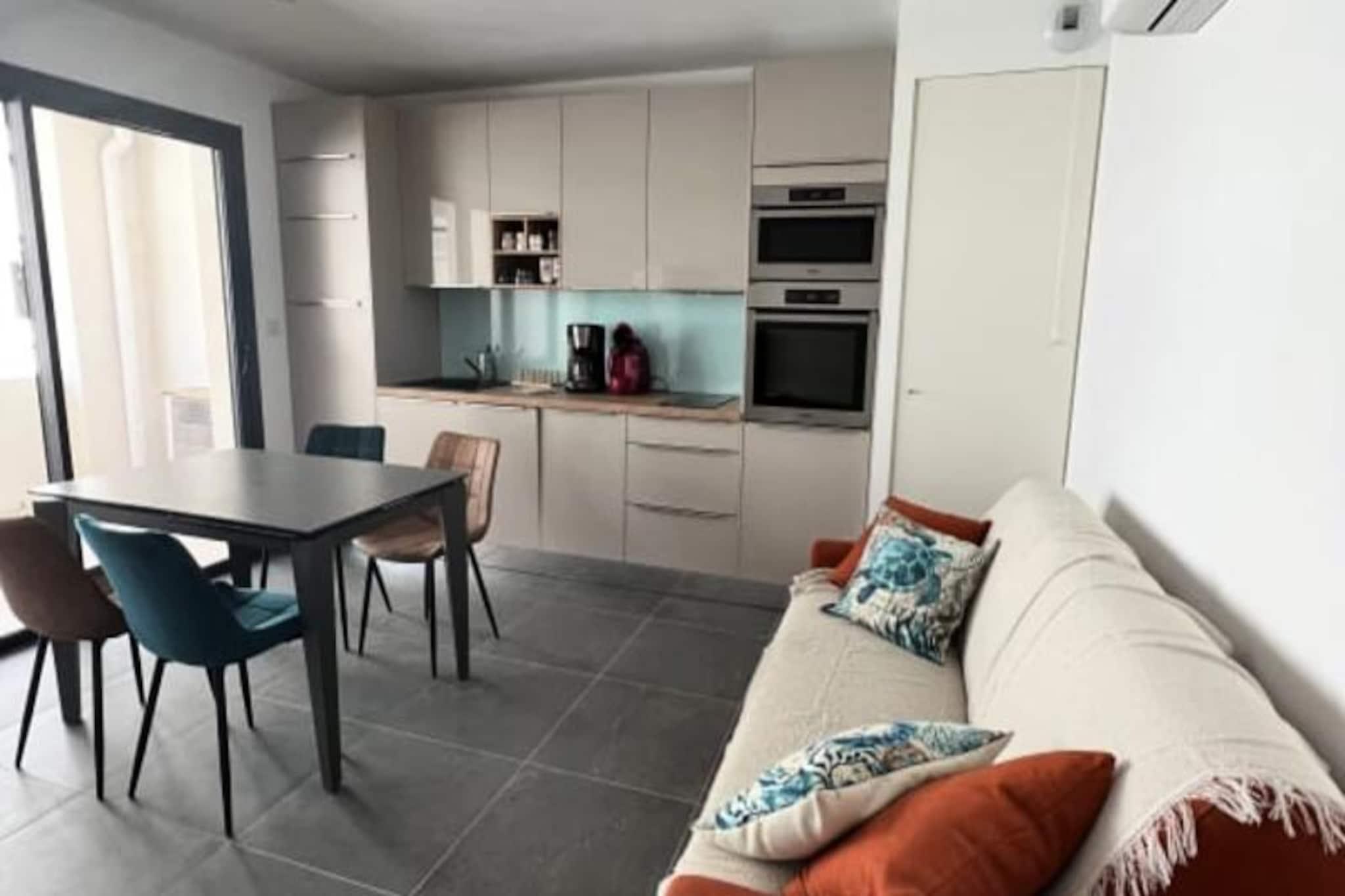 Där Medelhavsbrisen möter charmen hos en traditionell fiskeby erbjuder denna moderna lägenhet med ett sovrum den perfekta semestern vid havet. Belägen på vänstra stranden av Grau du Roi, bara 50 meter från den gyllene sanden, inbjuder denna oas dig att fördjupa dig i det livliga lokala livet. Föreställ dig att du vaknar till ljudet av måsar, promenerar till den närliggande hamnen för att se trålarna återvända med sin färska fångst och njuter av de pittoreska solnedgångarna som målar himlen i orange och rosa nyanser. Detta är mer än en semester, det är en bit av det autentiska livet i Camargue. Kliv in i denna fullt utrustade, luftkonditionerade oas, utformad för att rymma upp till fyra gäster. Sovrummet har en lyxig 160 cm bred säng (som kan omvandlas till två 80 cm breda elektriska enkelsängar), medan det rymliga vardagsrummet erbjuder en bekväm bäddsoffa och modern underhållning med en platt-TV. Köket är en kocks dröm, komplett med ugn, mikrovågsugn, kylskåp, kaffemaskin och alla redskap du behöver för att laga läckra måltider. Badrummet är elegant och funktionellt, med en duschkabin för din bekvämlighet. Den privata terrassen, med delvis havsutsikt, är den perfekta platsen för morgonkaffe eller kvällsdrinkar med nära och kära. Denna lägenhet ligger i hjärtat av Grau du Roi och är en dröm för dem som älskar bekvämligheten med \