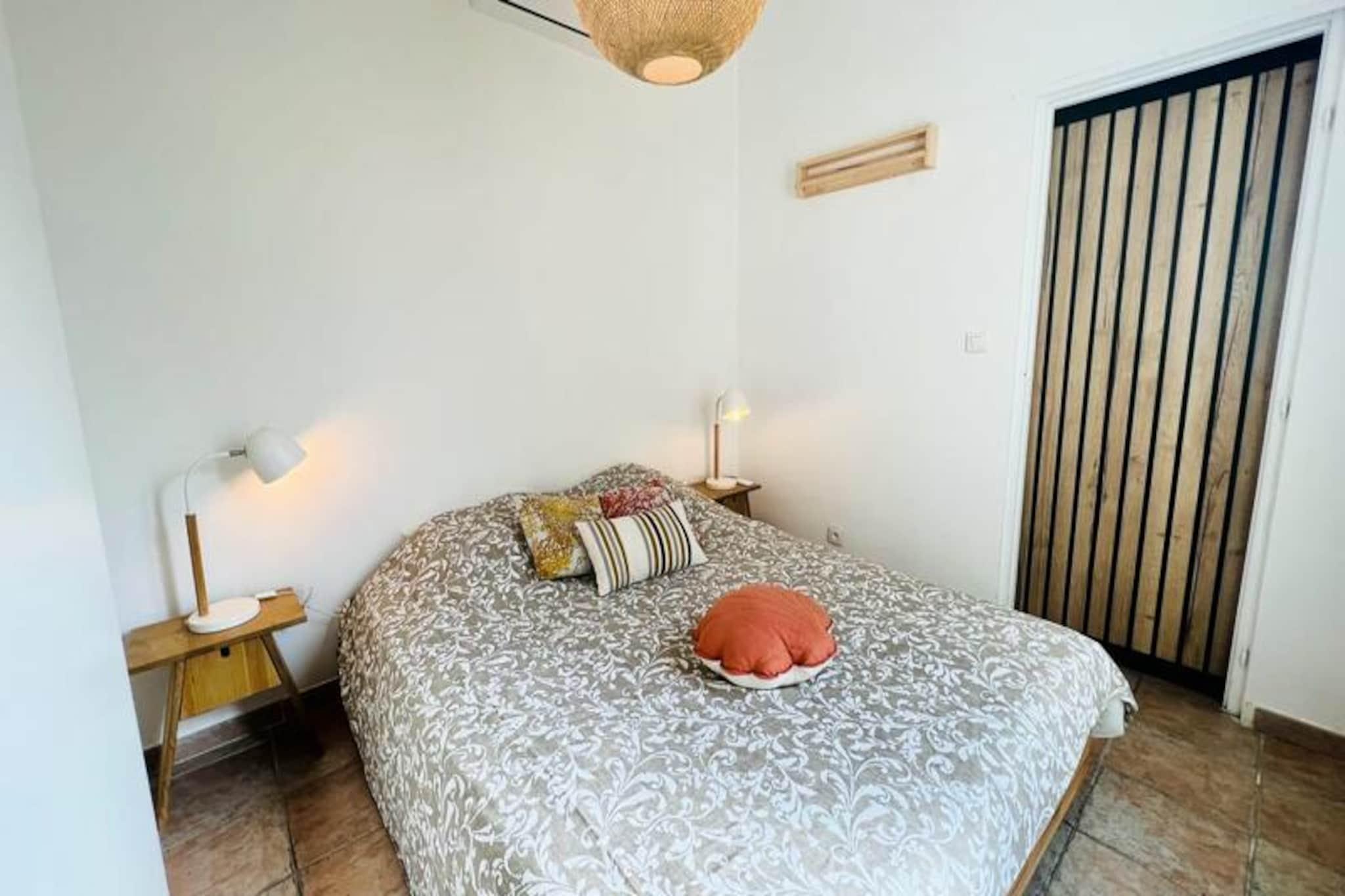 Med utsikt över Medelhavets skimrande vatten och den historiska fyren Le Grau-du-Roi erbjuder "La Terrasse du Port" en plats på första parkett i det pulserande livet i denna charmiga fiskeby. Belägen på Quai Colbert kombinerar denna lägenhet på andra våningen lugn och ro med hamnens livliga rytm, där trålare sätter segel och lokala köpmän tillagar sina färska fångster. Bara några steg från stranden och alla bekvämligheter är detta den perfekta tillflyktsorten för dem som söker en autentisk tillflyktsort vid havet. Inuti badar lägenheten i naturligt ljus och är smakfullt inredd för att skapa en varm och inbjudande atmosfär. Det rymliga vardagsrummet öppnar upp mot en privat terrass där du kan njuta av frukost medan du tittar på båtarna glida förbi. Köket med öppen planlösning är fullt utrustat med moderna apparater, inklusive kaffebryggare, brödrost och vattenkokare, vilket säkerställer att alla dina kulinariska behov tillgodoses. En mysig loungedel med bäddsoffa och TV ger en bekväm plats att varva ner efter en dags utforskande. Lägenheten har också luftkonditionering för din komfort under de varmare månaderna. Sovrummen inkluderar ett lugnt sovrum med dubbelsäng och högkvalitativa sängkläder, samt ett andra sovrum med våningssäng, perfekt för familjer. Det nyrenoverade badrummet har en duschkabin och modern inredning, vilket ger en touch av lyx till din vistelse. La Terrasse du Port ligger bara 100 meter från stranden och är perfekt placerat för att njuta av det bästa av Le Grau-du-Roi. Promenera till närliggande butiker, restauranger och butiker, eller bara koppla av och njut av den pittoreska omgivningen. Med enkel tillgång till kollektivtrafik, inklusive den lokala tågstationen och bussförbindelser, är det enkelt att utforska den bredare Camargue-regionen. Oavsett om du är här för en weekendresa eller en längre vistelse, erbjuder denna lägenhet en sömlös blandning av komfort, bekvämlighet och kustnära charm.