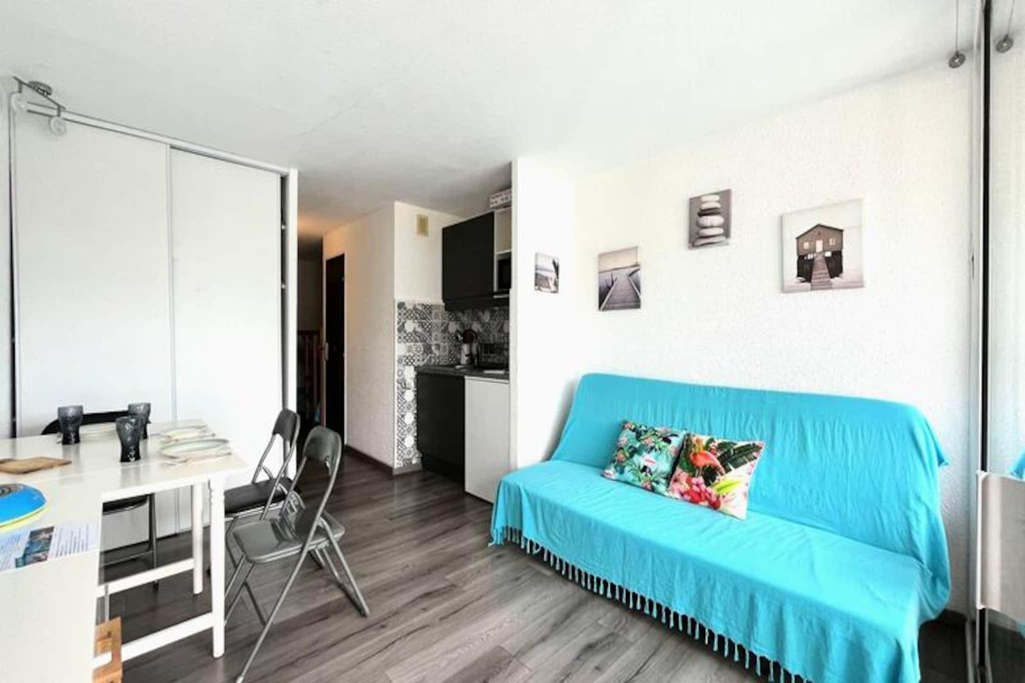 Där det skimrande Medelhavet möter det inbjudande vattnet i en lugn pool, erbjuder denna charmiga studio i Le Lagon Bleu en soldränkt tillflyktsort för din nästa semester. Perfekt belägen mellan havet och residensens pool, inbjuder denna mysiga men omsorgsfullt designade studio dig att varva ner och omfamna Camargue-regionens skönhet. Tänk dig morgnar med att smutta på kaffe på din privata terrass med utsikt över poolen, eftermiddagar med att utforska den närliggande medeltida staden Aigues-Mortes och kvällar med att njuta av de gyllene nyanserna av en provensalsk solnedgång. Trots sin kompakta planlösning på 20 m² rymmer studion bekvämt upp till sex gäster med en smart arrangemang av en dubbelsäng, våningssängar och en bäddsoffa. Pentryt öppnar sig sömlöst mot vardagsrummet, vilket skapar en varm och välkomnande atmosfär för gemensamma måltider eller avkopplande kvällar. Studion ligger på andra våningen och är lättillgänglig via hiss, vilket garanterar bekvämlighet för alla gäster. Ytterligare bekvämligheter som cykeluthyrning, grillmöjligheter och valfri linne- och handduksservice gör din vistelse ännu trevligare. Bara fem minuter från Grau du Rois centrum kommer du att befinna dig omgiven av regionens pulserande kultur och aktiviteter. Utforska Camargues fantastiska landskap med elcykel, där myrar, dammar och våtmarker erbjuder en fristad för vilda djur som rosa flamingos, vita hästar och tjurar. För historieentusiaster erbjuder den närliggande staden Aigues-Mortes ett rikt medeltida arv, livliga marknader och charmiga butiker. Oavsett om du söker äventyr, avkoppling eller en smak av autentiskt provensalskt liv, är denna studio din port till oförglömliga minnen under Medelhavssolen.