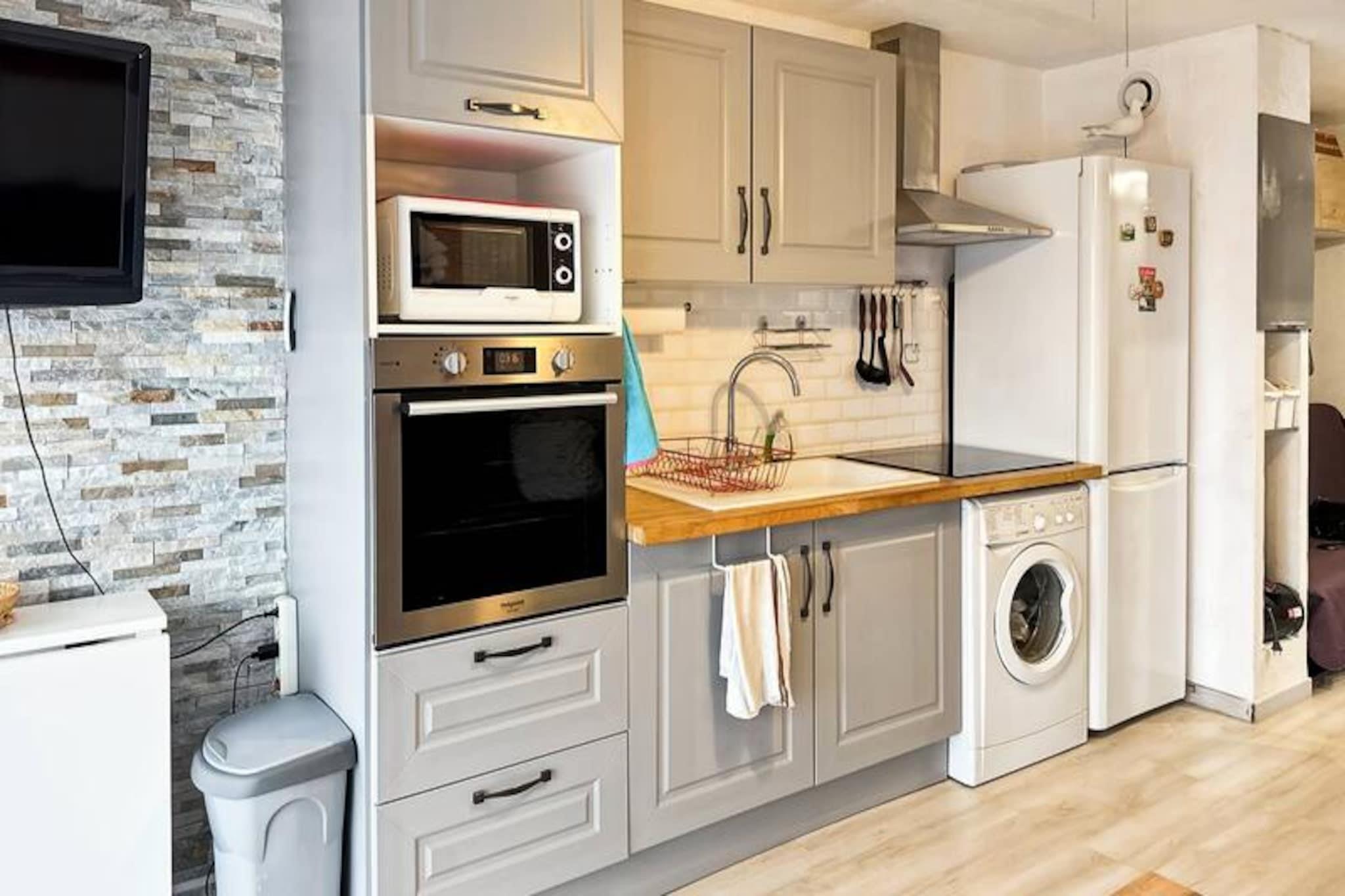 Njut av medelhavscharmen i denna förtjusande studio, undangömd i det fridfulla och trygga residenset Le Lagon Bleu. Perfekt lämpad för en lugn flykt till havet eller en solig semester, inbjuder denna mysiga tillflyktsort dig att varva ner och omfamna rytmen i södra Frankrike. Tänk dig att vakna upp till den milda havsbrisen, kliva ut på din privata balkong och njuta av den fridfulla atmosfären som omger dig. Oavsett om du söker avkoppling eller äventyr, erbjuder denna fastighet den perfekta balansen mellan komfort och bekvämlighet. \n\nStudioen är designad för att rymma upp till tre gäster och har ett omsorgsfullt arrangerat utrymme med en dubbelsäng, en enkelsäng och en bäddsoffa för att garantera vilsamma nätter för alla. Det öppna köket ansluter sömlöst till det huvudsakliga vardagsrummet och skapar en välkomnande atmosfär för gemensamma måltider och stunder. Ett modernt badrum och luftkonditionering förbättrar din vistelse, medan det privata garaget ger ett extra lager av bekvämlighet för dem som utforskar regionen med bil. Residenset har också en uppfriskande pool som inbjuder dig att svalka dig och njuta av solen under varma eftermiddagar. \n\nLe Lagon Bleu ligger bara en kort promenad från lokala butiker och den gyllene sandstranden, mitt i Medelhavets njutning. Hyr en cykel för att utforska de pittoreska omgivningarna eller njut av den pulserande kustkulturen som definierar detta förtrollande område. Från avkopplande stranddagar till att upptäcka charmiga kuststäder är möjligheterna oändliga. \n\nOavsett om du reser ensam, som par eller med vänner, erbjuder denna studio en harmonisk blandning av avkoppling och äventyr. Låt Medelhavets lockelse vägleda dina dagar och skapa oförglömliga minnen i denna idylliska oas.