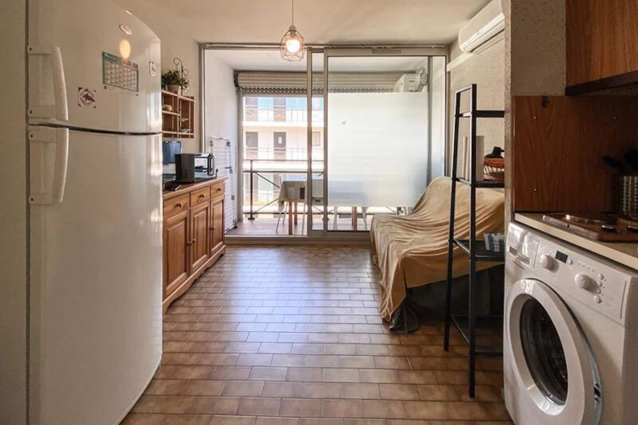 Tänk dig att vakna upp till det mjuka ljudet av vågor och den varma medelhavssolen som strömmar in genom ditt fönster. Denna charmiga studio på 20 m², inbäddad i det säkra och välskötta Le Lagon Bleu-boendet, erbjuder den perfekta blandningen av komfort och bekvämlighet för din kustsemester. Med sitt utmärkta läge mellan poolen och stranden har du allt du behöver för att få ut det mesta av din vistelse i södra Frankrike. \n\nStudion är omsorgsfullt utformad för att rymma upp till fem gäster, med en mysig dubbelsäng, en enkelsäng och en bäddsoffa. Det öppna köket och vardagsrummet skapar ett välkomnande utrymme att koppla av efter en dags utforskande. Gå ut för att njuta av bostadens gemensamma pool, eller ta en kort promenad till de närliggande sandstränderna och livliga lokala butikerna. För din bekvämlighet finns en privat och säker parkeringsplats reserverad för dig, så att du kan lämna din bil hemma och helt fördjupa dig i regionens skönhet.\n\nLe Lagon Bleu är idealiskt beläget för att upptäcka Medelhavskustens skatter. Hyr en cykel och utforska den pittoreska omgivningen, eller varva bara ner vid poolen med en god bok. Oavsett om du njuter av det lokala köket, ägnar dig åt vattensporter eller solbadar, erbjuder denna studio den perfekta basen för dina äventyr. \n\nBoka din vistelse idag och upplev charmen vid den franska rivieran. Med sitt oslagbara läge och mysiga bekvämligheter är denna studio din port till oförglömliga minnen vid havet.