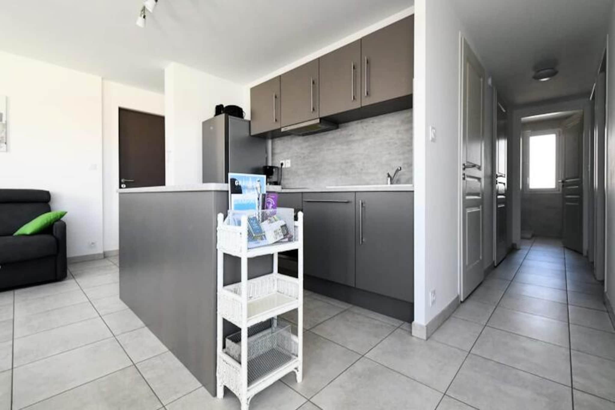 I det pulserande hjärtat av Le Grau-du-Roi, där Camargues charm möter Medelhavsbrisen, erbjuder La Roselière en lugn tillflyktsort bara 400 meter från den gyllene sandstranden. Denna nybyggda, bevakade bostad är en oas av lugn, perfekt för familjer, vänner eller affärsresenärer som söker en blandning av modern komfort och autentiskt kustliv. Från sitt utmärkta läge på vänstra stranden kan du fördjupa dig i fiskehamnens livliga atmosfär, utforska lokala marknader eller helt enkelt varva ner vid havet. Lägenheten, som ligger på andra våningen, har ett ljust och elegant vardagsrum utformat för avkoppling. Köket med öppen planlösning, komplett med en central köksö och matplats, är fullt utrustat med allt du behöver för att laga läckra måltider, från kaffemaskin till mikrovågsugn och alla nödvändiga redskap. Vardagsrummet har en bekväm bäddsoffa, en platt-TV och höghastighetsinternet, vilket säkerställer att du håller dig uppkopplad under hela din vistelse. Två mysiga sovrum med smakfull inredning lovar vilsamma nätter, medan det moderna badrummet, utrustat med dusch och tvättmaskin, bidrar till bekvämligheten. Kliv ut på den privata terrassen för att njuta av lugna sommarkvällar eller dela minnesvärda stunder med nära och kära. Lägenheten har också ett säkert privat garage, vilket gör det enkelt att utforska omgivningarna med bil. Med sitt oslagbara läge kan du lämna bilen hemma och njuta av Le Grau-du-Rois nöjen till fots. Promenera längs kajerna, njut av lokala delikatesser eller ta ett uppfriskande dopp i Medelhavet. Den närliggande historiska stadskärnan, livliga butiker och restauranger bidrar till charmen, medan närheten till Montpellier och Camargues naturliga underverk gör detta till en idealisk bas för din nästa semester. La Roselière är mer än bara ett ställe att bo på – det är din port till den avslappnade och autentiska livsstilen i södra Frankrike.