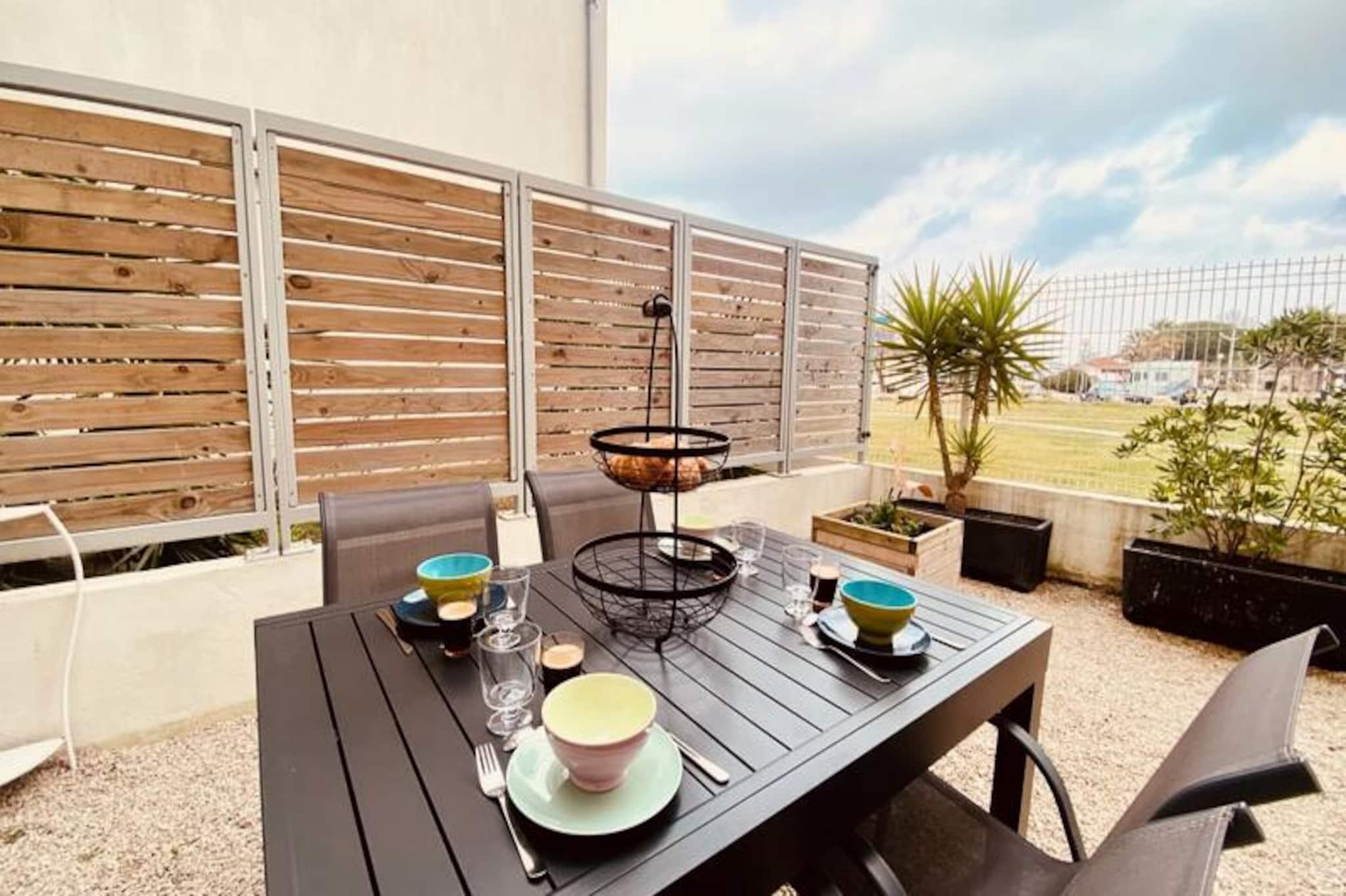 Där Medelhavsbrisen möter charmen hos en kustby erbjuder denna förtjusande studio i Le Grau-du-Roi en idyllisk tillflyktsort för strandälskare. Belägen på bottenvåningen i det moderna Château Leenhardt-residenset, har fastigheten direkt tillgång till en av regionens vackraste stränder genom en privat trädgård. Tänk dig att vakna upp till vågornas brus, gå ut på din nordvästvända terrass och njuta av panoramautsikt över havet, Aigues-Mortes-bukten och den ikoniska La Grande-Motte-silhuetten medan solen går ner i livfulla nyanser. Studioen är omsorgsfullt utformad för komfort och bekvämlighet, med ett ljust och modernt vardagsrum med en fast 160 cm dubbelsäng, vilket garanterar vilsamma nätter. Köket med öppen planlösning är fullt utrustat med allt du behöver, från kaffemaskin till ugn, vilket gör det enkelt att laga mat efter en dags utforskande. Badrummet har dusch och toalett, och sängkläder och handdukar ingår under din vistelse. Ytterligare bekvämligheter som ett välkomstkit och valfria linnekostnadsavgifter garanterar en problemfri upplevelse. Kliv ut och befinn dig i hjärtat av byn, ett lugnt men livligt område med butiker, marknader, restauranger och tapasbarer inom gångavstånd. För äventyrslystna leder cykelvägar till Salins d'Aigues-Mortes, medan vattensporter, utflykter med fyrhjulsdriven Camargue och den berömda stranden Espiguette ligger bara några minuter bort. Familjer kommer att älska närliggande attraktioner som Luna Park och Amigoland, medan wellnessentusiaster kan varva ner på thalassoterapicentret. Med enkel tillgång till Montpellier, Nîmes och bortom, plus närliggande tåg- och bussförbindelser, är denna studio den perfekta basen för att upptäcka Camargue-regionens skönhet. Oavsett om du är här för avkoppling eller äventyr, lovar denna oas vid havet oförglömliga minnen.