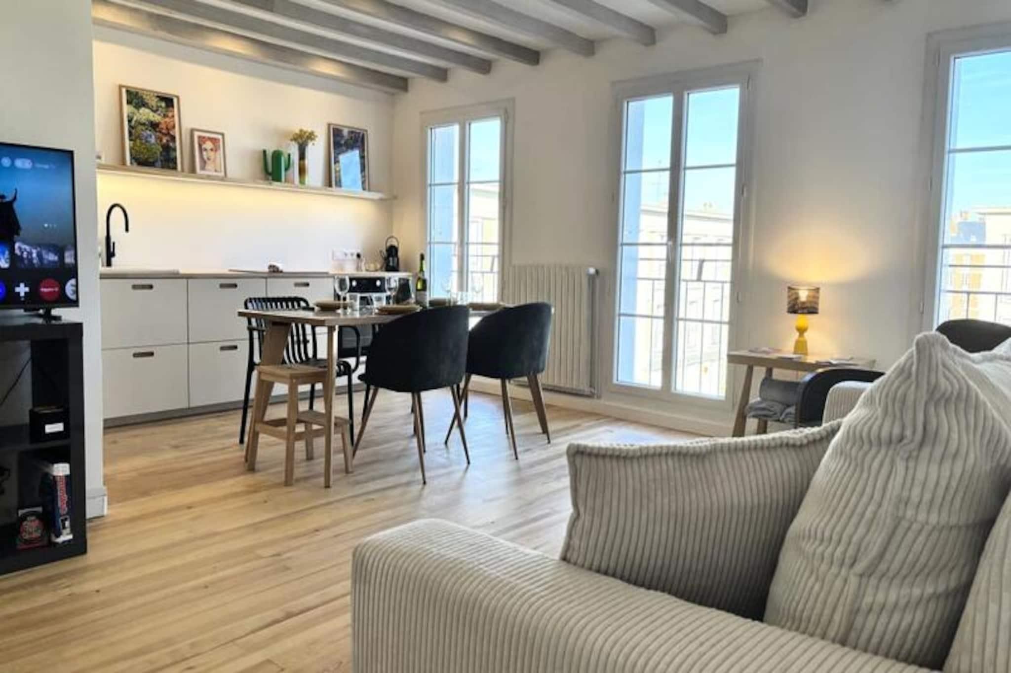 I hjärtat av Le Havre, där historia möter modernitet, erbjuder denna fantastiska lägenhet i Perret-stil en unik vistelse i ett UNESCO-världsarv. Med utsikt över det ikoniska Bassin du Roi och omgiven av den arkitektoniska charmen i Auguste Perrets design, inbjuder denna bostad dig att fördjupa dig i Normandies pulserande kultur. Bara en kort 300 meters promenad från stranden och några steg från det livliga rådhuset, befinner du dig perfekt positionerad för att utforska stadens skatter. Inuti blandar lägenheten sömlöst tidlös elegans med modern komfort. Belägen på fjärde våningen i en lugn och säker byggnad, har den ett ljust och luftigt vardagsrum utformat för att rymma upp till tre gäster. Köket med öppen planlösning är fullt utrustat för kulinariska äventyr, medan det mysiga vardagsrummet med en Smart-TV är den perfekta platsen att varva ner. Det stora sovrummet har en lyxig queen size-säng, medan det andra sovrummet erbjuder en högkvalitativ enkelsäng, ett skrivbord för distansarbete och gott om förvaring. Ett modernt badrum med duschkabin och en separat toalett kompletterar planlösningen och garanterar en bekväm och funktionell vistelse. För wellnessentusiaster finns det omsorgsfullt utrustat med yogautrustning för att förbättra din avkoppling. Stig ut, och du är bara några minuter från Le Havres finaste sevärdheter. Utforska sandstränderna, njut av lokal mat på närliggande restauranger eller vandra genom de charmiga gatorna kantade av butiker och marknader. För de som anländer med bil finns en privat parkeringsplats tillgänglig, men platserna är inte tilldelade. Alternativt garanterar gatuparkering och närliggande tunnelbanestationer bekvämlighet. Oavsett om du är här för fritid eller arbete, erbjuder denna lägenhet den perfekta basen för att uppleva det bästa av Le Havre. Välj denna exceptionella fastighet för dess oslagbara läge, eleganta interiörer och chansen att bo mitt i Auguste Perrets arkitektoniska arv. Ditt Normandie-äventyr börjar här.