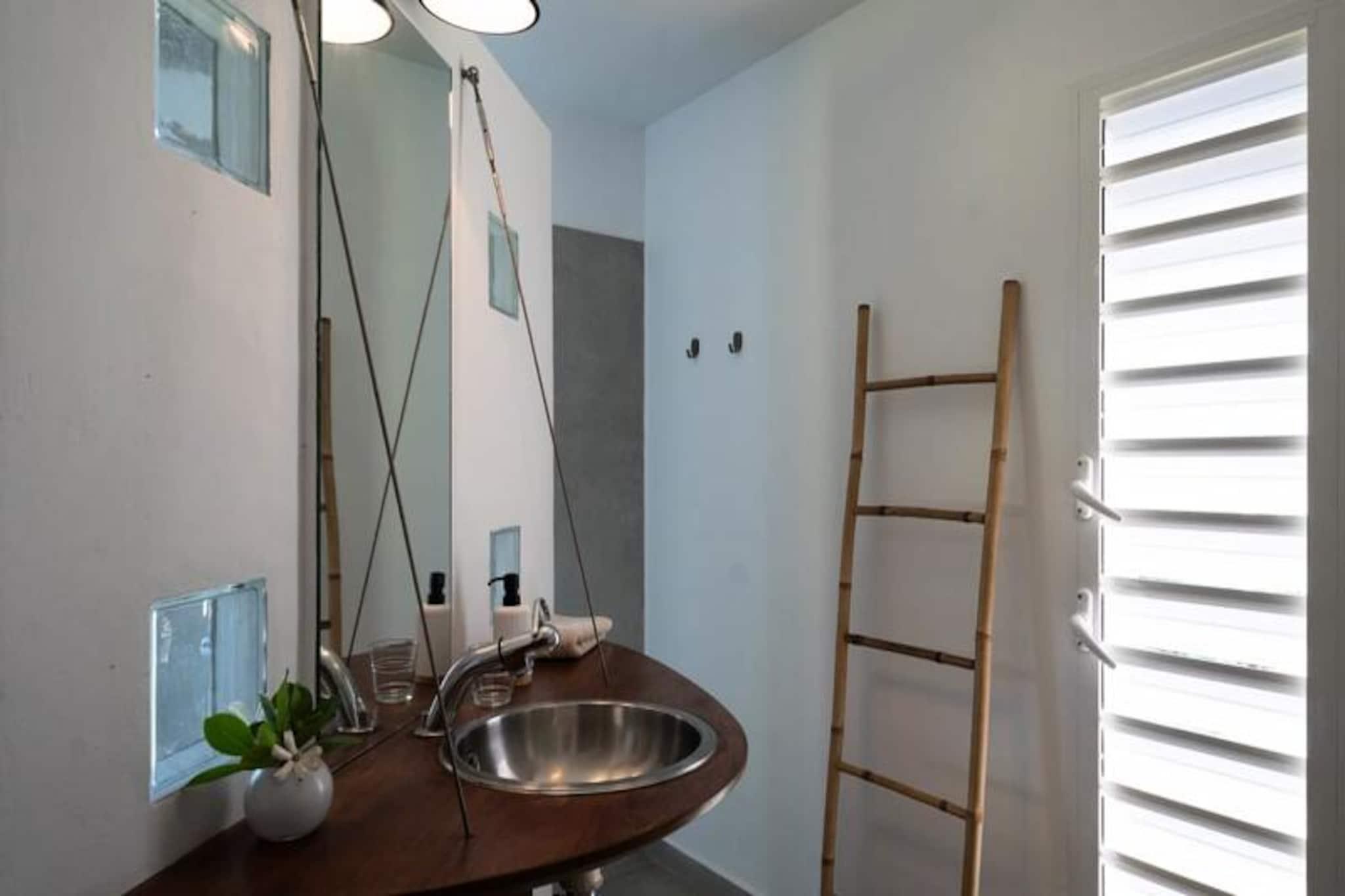 Denna vackra 4-stjärniga villa kombinerar exotisk charm med moderna bekvämligheter, och erbjuder fyra sovrum och tre duschrum, som rymmer upp till åtta gäster. Varje rum har utsikt över havet och palmerna, och alla rum har luftkonditionering. Villan är perfekt för avkoppling, med en fridfull atmosfär och färska ekologiska ägg som dagligen tillhandahålls av vänliga höns. Husdjur är inte tillåtna, vilket garanterar en lugn miljö. Villan ligger i Moule, bara 3 minuters promenad från Trade Winds-stranden och berömda surfplatser. Den livliga småbåtshamnen i Saint-François, med restauranger, butiker och en golfbana, ligger bara 15 minuter bort. Gästerna kan njuta av vattensporter som kiteboarding och wing-foil, eller utforska det lokala området, som erbjuder alla nödvändiga bekvämligheter, inklusive en stormarknad, bageri och apotek. Villan har ett fullt utrustat kök, perfekt för att laga lokala rätter, och en rymlig terrass med skuggig matplats. Den smaragdfärgade poolen, omgiven av frodig vegetation, inbjuder till avkoppling. Inuti blandar inredningen trä och konst, vilket skapar en varm och välkomnande atmosfär. Vattenreservsystemet säkerställer en pålitlig vattenförsörjning under hela din vistelse.