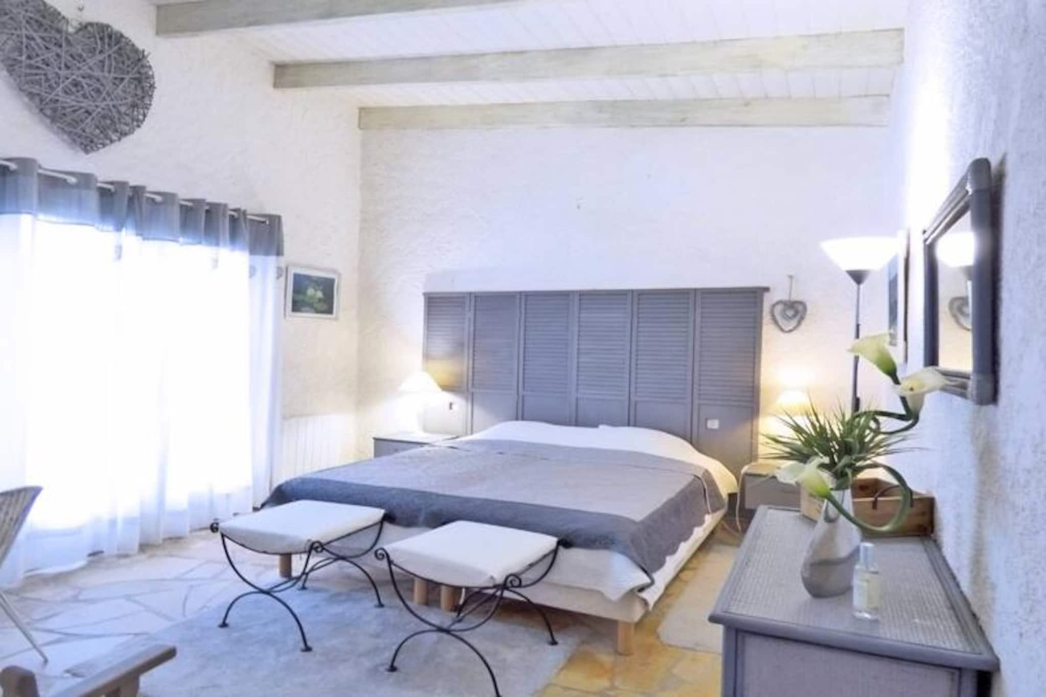 Denna vackra frist?ende villa med 5 rum erbjuder en fridfull tillflyktsort p? 2 500 m² privat mark. Den ?r idealisk f?r upp till sex g?ster och har tre sovrum: en mastersvit med dubbels?ng, eget badrum och solarium; och tv? sovrum p? bottenv?ningen (ett dubbelrum, ett tv?b?ddsrum), alla med en privat terrass. Ett duschrum och toalett finns ocks? p? bottenv?ningen. Njut av en privat 10x5m pool, terrasser och en h?rlig tr?dg?rd. Husdjur ?r v?lkomna p? beg?ran. Detta semesterhus ligger bara 5 minuter fr?n Plan de la Tour, n?ra aff?rer och en kort bilresa fr?n Sainte-Maxime (12 km) och stranden (8 km). Inb?ddat i Massif des Maures, erbjuder det lugn n?ra kustn?ra attraktioner. Inuti hittar du ett 65 m² stort vardagsrum, ett fullt utrustat k?k och tv?ttm?jligheter. Mastersviten har luftkonditionering och en TV. Wi-Fi, en grill och privat parkering finns. Slutst?dning ing?r. S?ngkl?der, handdukar och babykit finns tillg?ngliga mot en avgift. En deposition kr?vs.