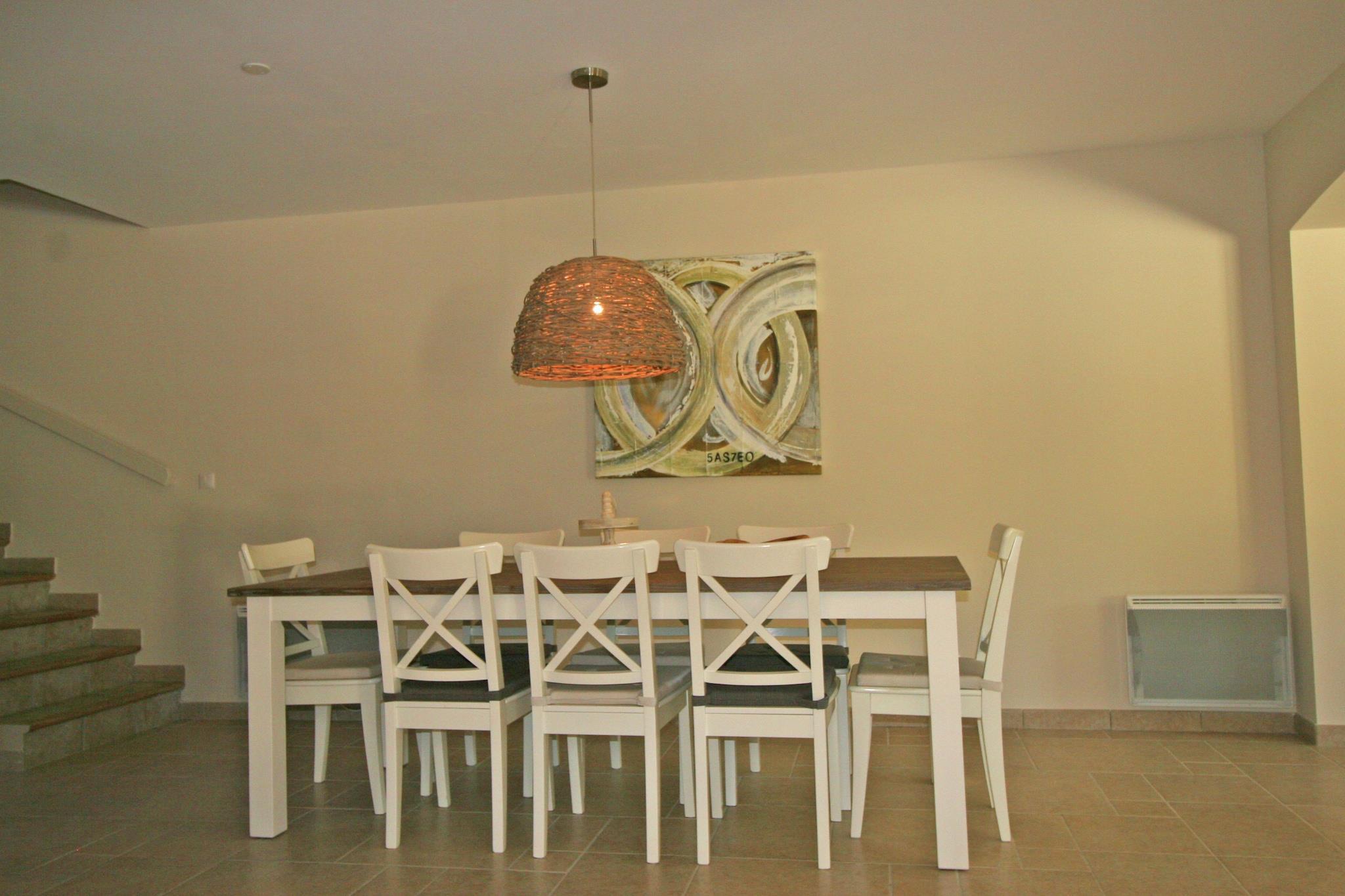 Bottenvåningen: (Kök(spis(Spis med 4 kokplattor, keramisk), kaffebryggare(koppar), ugn, mikrovågsugn, diskmaskin, kyl och frys, värme(elektrisk)), ardags- och matrum(TV(satellit), matbord, sitthörna, DVD-spelare, värme(elektrisk)), Bedroom with bathroom(dubbelsäng(160 x 200 cm), dusch, handfat, värme(genom luftkonditionering), värme(elektrisk), luftkonditionering), WC, förråd(torktumlare, tvättmaskin), barnstol) På våning 1: (sovrum(enkelsäng(80 x 200 cm), enkelsäng(80 x 200 cm), värme(genom luftkonditionering), luftkonditionering), sovrum(2x enkelsäng(80 x 200 cm), TV(satellit), DVD-spelare, speldator, värme(genom luftkonditionering), luftkonditionering), badrum(badkar med dusch, handfat, värme(elektrisk)), badrum(dusch, handfat, värme(elektrisk)), WC, vagga) luftkonditionering, terrass(privat), trädgård(privat, 600 m2), trädgårdsmöbler, grill(träkol), parkering, solstolar, Parasoll, swimmingpool(privat, överdrag till pool, 8 x 4 m.), boule