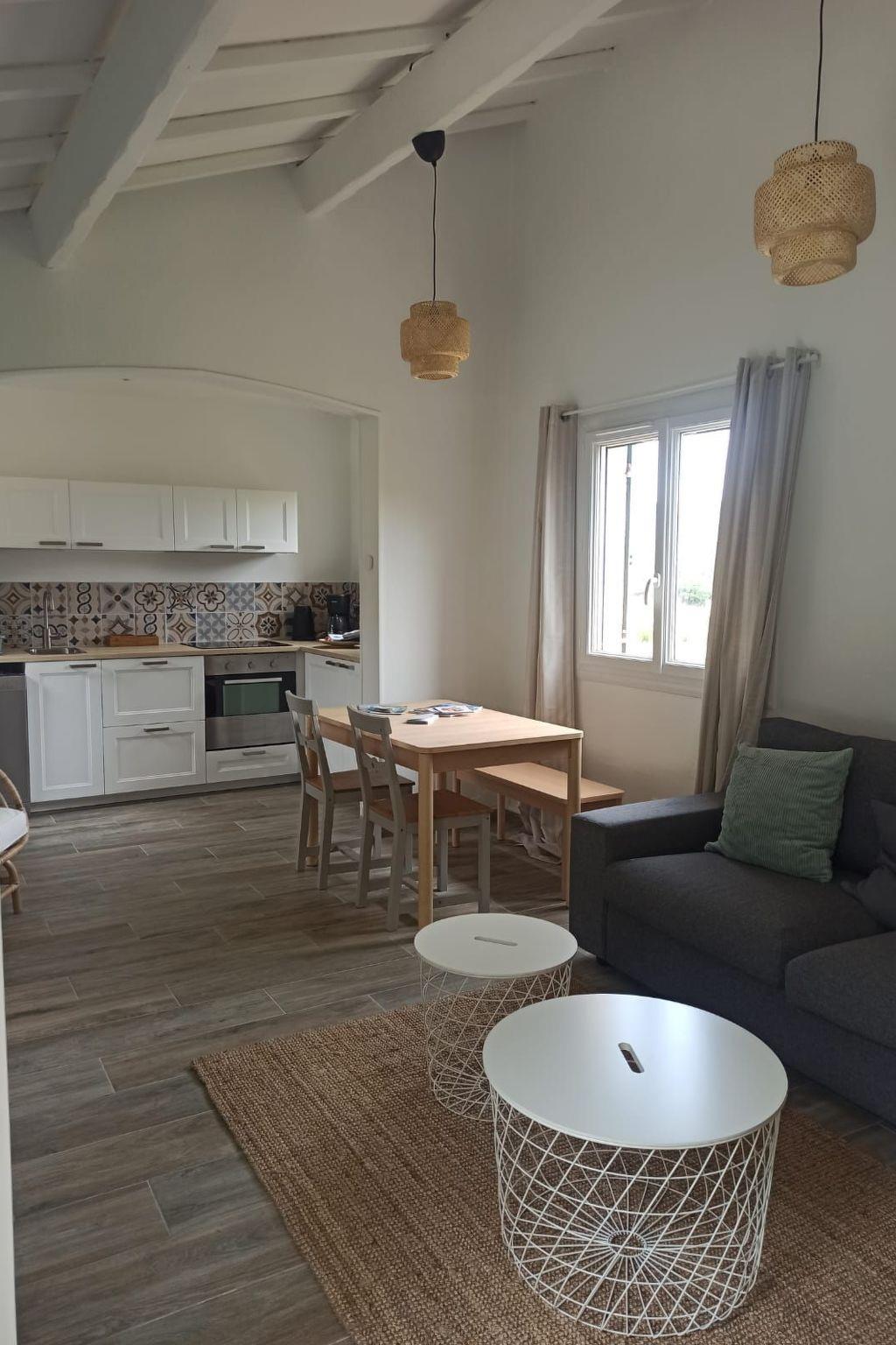 40m² gîte for 4 people. Charming T2 surrounded by greenery with living-dining room, sofa bed, double bedroom (queen size bed), fully equipped kitchen (hob, oven, microwave, fridge, coffee maker, toaster, dishwasher), bathroom with shower and separate WC. Washing machine and iron available. Small shaded terrace overlooking the vineyards.40m² for 4 people Bedroom: * 1 double bed 1.60 x 2.00m * Living room: Sofa bed 1.40 x 2.00m for 2 people Fully equipped kitchen.