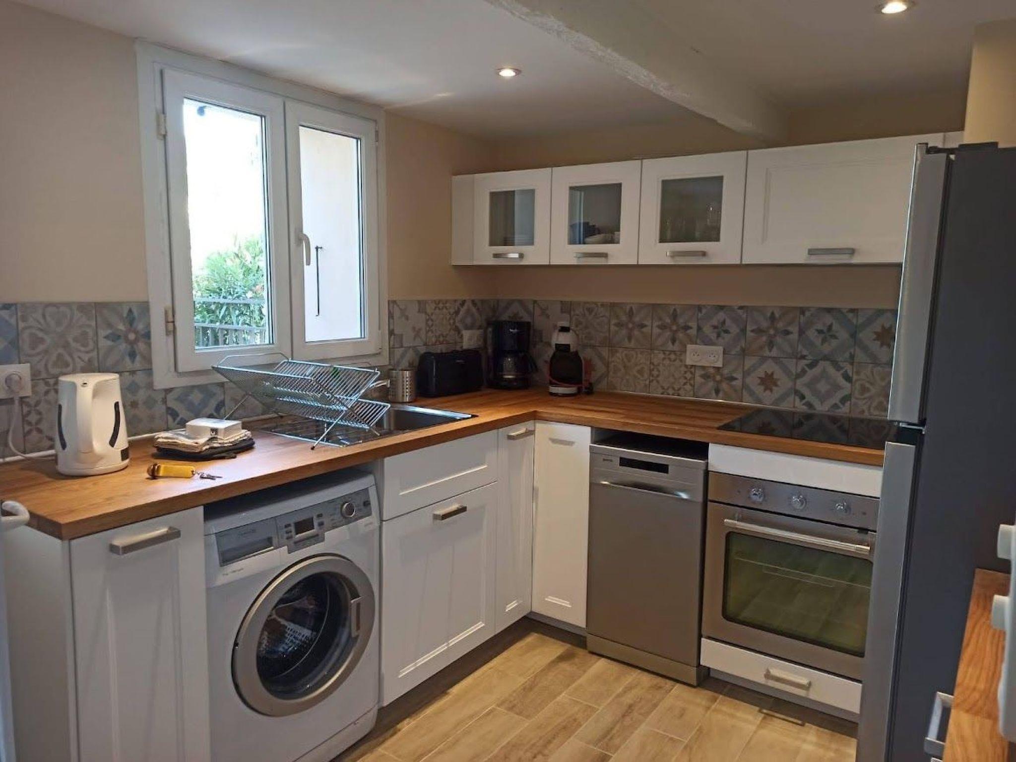 53m² gîte for 3 to 5 people. Small, charming gîte with living room with sofa bed, fully-equipped kitchen (hob, oven, microwave, fridge, coffee maker, toaster, dishwasher), double bedroom (double bed and pull-out bed), bathroom with shower and WC. Washing machine and iron available. Terrace overlooking inner courtyard. Small sea view. Bedroom: * 1 double bed 160x200 and 1 trundle bed 0.80 x 2.00m * Lounge: Sofa bed 1.40 x 2.00m for 2 people Fully equipped kitchen.