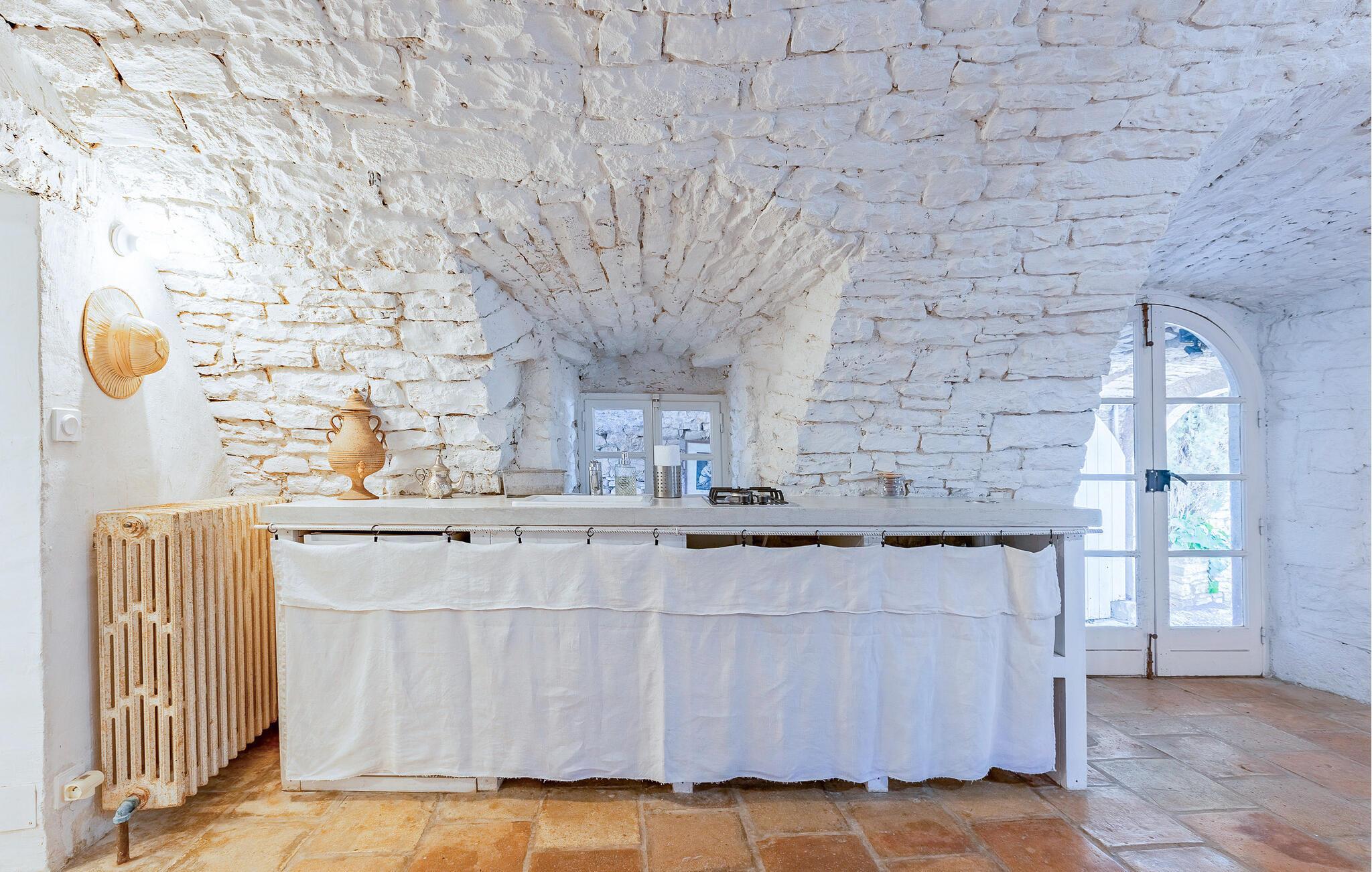 Omgiven av medelhavsnatur och historiska murar väntar detta extraordinära gömställe på dig. Inne i det charmiga stenhuset kan du njuta av den autentiska känslan från de senaste århundradena. Mys upp vid den öppna spisen med en bok eller njut av den gemytliga atmosfären under en spelkväll med dina nära och kära.
