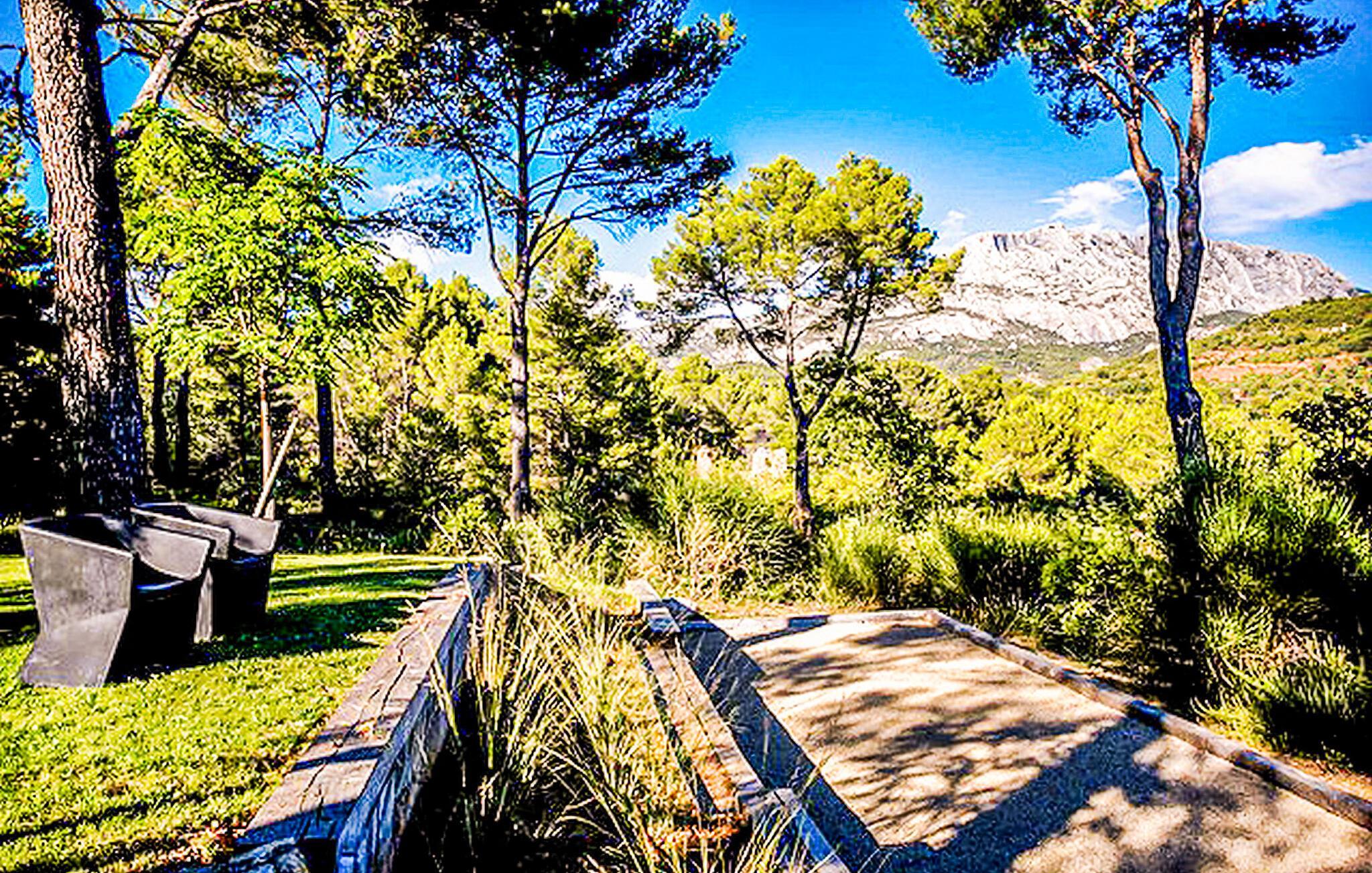 Denna moderna semestervilla ligger i Le Tholonet, nära Aix en Provence, och har en uppvärmd privat pool med fantastisk utsikt över berget Sainte Victoire. Designervillan ligger helt på bottenvåningen och har en öppen planlösning och stora burspråk som sömlöst förbinder inomhus- och utomhusutrymmen samtidigt som de erbjuder fantastisk utsikt över naturen. Njut av moderna bekvämligheter under din vistelse, inklusive en Nespresso-kaffemaskin i köket och en Canal+-projektor i vardagsrummet för familjens filmkvällar. Sovrummen är fördelade på två sovavdelningar, varav en är särskilt utformad för barn med lekrum och TV-rum för inomhusunderhållning. På den stora tomten finns uteserveringar, ett utomhusbadrum, en säker och uppvärmd pool med säkerhetsöverdrag och rekreationsområden som en boulebana och en härlig lekplats. Villan ligger i Le Tholonet, ca 10 minuter från Aix en Provence och 25 minuter från havet och Calanques i Cassis. Aix en Provence är en mycket livlig stad året runt med en blomster- och matmarknad och bra shoppinggator. Le Tholonet är en idealisk utgångspunkt för att upptäcka Provence, Cassis och kalankerna, Marseille och Aubagne, och erbjuder också olika vandringsleder i området kring berget Sainte Victoire. Njut av din semester i Bouches-du-Rhône i Provence. Vänligen observera: På sommaren garanterar ett kylt golvsystem en behaglig inomhustemperatur, även om det inte finns någon luftkonditionering. Dessutom täcker rullgardiner de stora burspråksfönstren men kanske inte ger fullständigt mörker, särskilt i sovrummen. Det finns en städservice två gånger i veckan och veckovis underhåll av trädgård och pool.