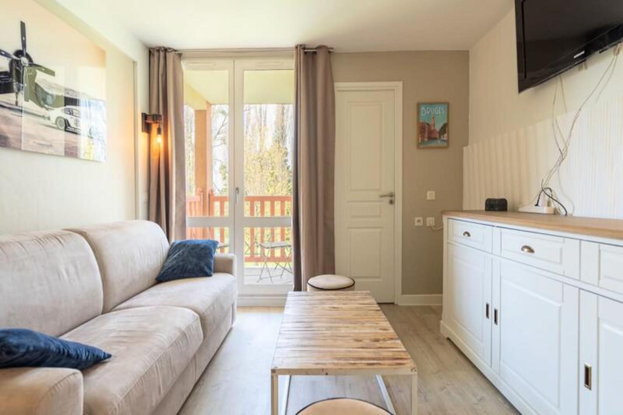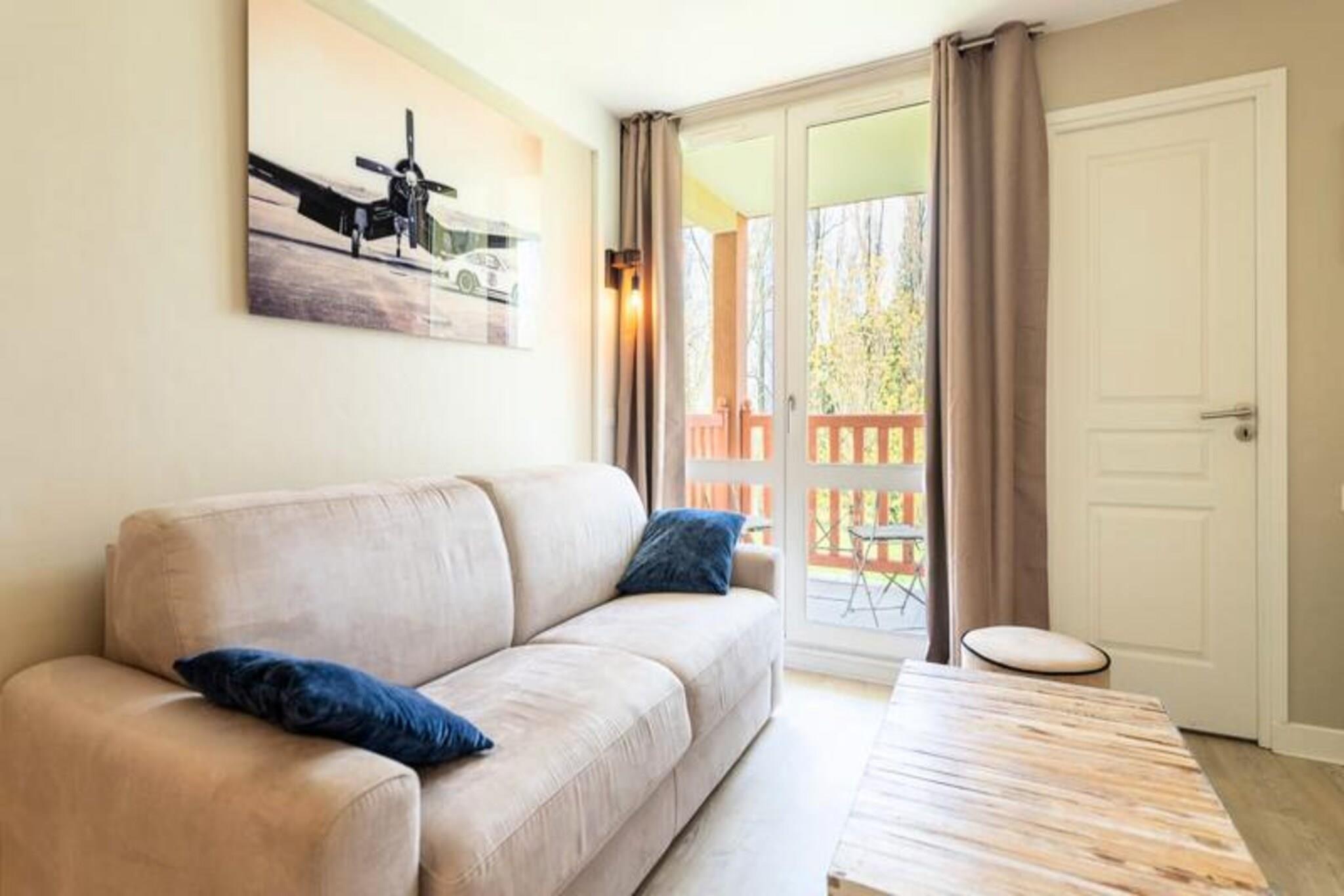Denna trevliga lägenhet för 6 personer, belägen i ett turistresidens i hjärtat av ridparken, erbjuder en bekväm vistelse. Den har ett sovrum med en 140 cm dubbelsäng, en stuga med våningssängar och en bäddsoffa i vardagsrummet. Information om husdjur nämns inte. Gratis privat parkering finns tillgänglig. Residenset har en uppvärmd inomhuspool (stängd från 7/1/25 till 5/2/25) och en tennisbana. Linne tillhandahålls inte (finns som tillval). Läget för denna lägenhet är idealiskt för ridentusiaster, tack vare dess närhet till ridparken, utställningsplatsen och kapplöpningsbanan. Residenset erbjuder en lugn miljö samtidigt som det är nära till bekvämligheter och aktiviteter i regionen. Lägenheten består av ett vardagsrum med öppet kök (diskmaskin), TV och Wi-Fi. Den innehåller också ett badrum (badkar och handfat) och ett duschrum (dusch och toalett). En deposition på EURO350 krävs.