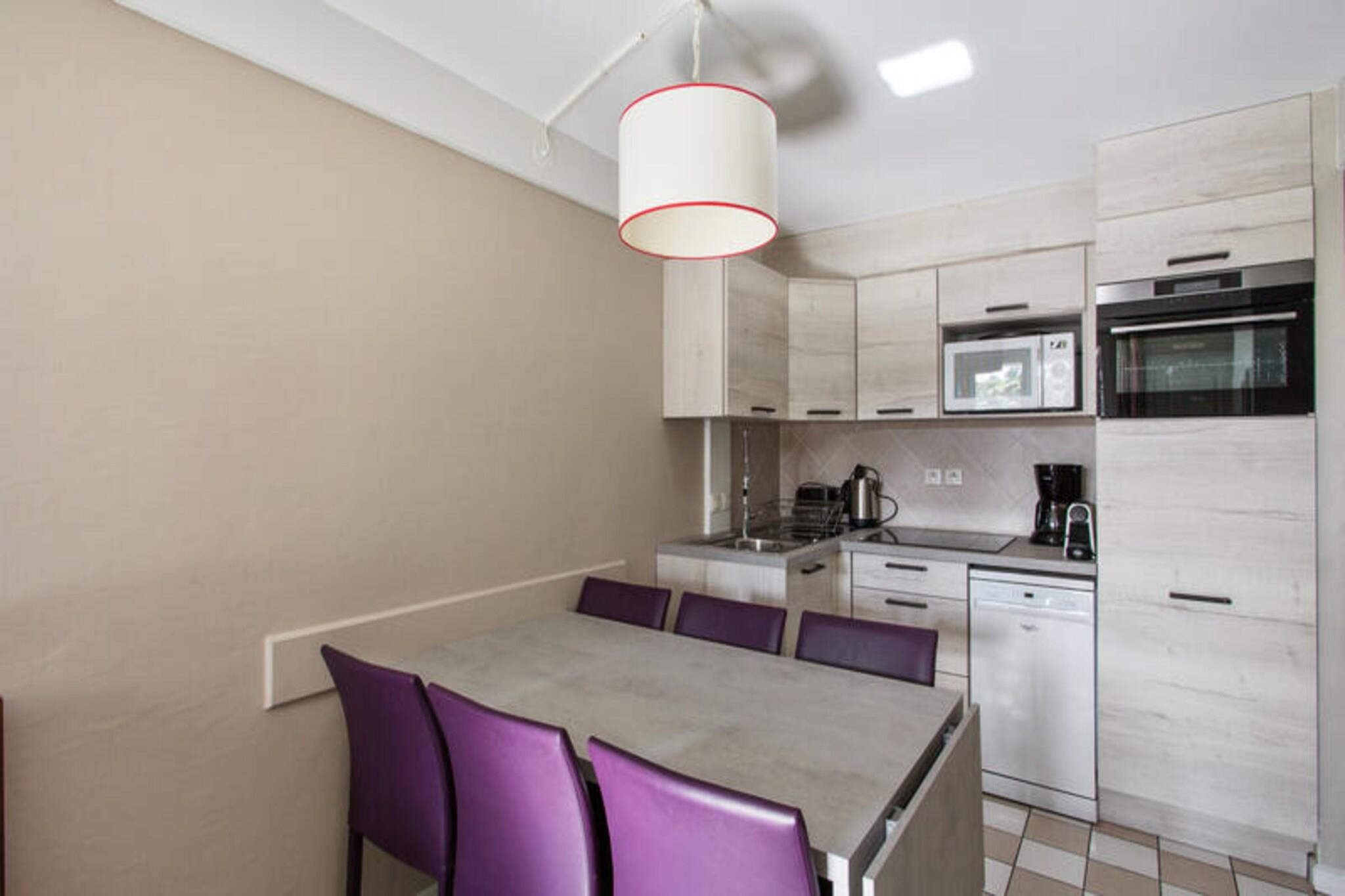 Denna charmiga semesterlägenhet erbjuder en mysig oas med två sovrum: ett med en queen size-säng och ett med en dubbelsäng. En bekväm bäddsoffa i vardagsrummet ger extra sovutrymme. Fastigheten är husdjursvänlig, vilket säkerställer att dina lurviga följeslagare kan följa med på din semester. Gästerna kan njuta av gratis parkering inom boendet, och en uppvärmd inomhuspool är tillgänglig året runt. Sängkläder ingår, och babykit med nödvändigheter som spjälsäng och barnstol kan ordnas på begäran. Detta semesterhus ligger bara 2 km från strandens sandstränder, inbäddat nära den pittoreska Canchedalen. Le Touquets livliga stadskärna ligger bara 1,5 km bort och erbjuder en mängd olika kaféer, butiker och livliga marknader. Den natursköna kapplöpningsbanan ligger bara 1 km från boendet, vilket gör den till en idealisk bas för att utforska regionen till fots eller på cykel. Inuti har lägenheten ett modernt kök med öppen planlösning utrustat med allt du behöver, inklusive ett kylskåp, spishäll och mikrovågsugn. Två badrum garanterar komfort för alla gäster, varav det ena har ett badkar och det andra har en dusch med toalett. En privat balkong inbjuder dig att varva ner, medan Wi-Fi och TV finns för extra bekvämlighet.