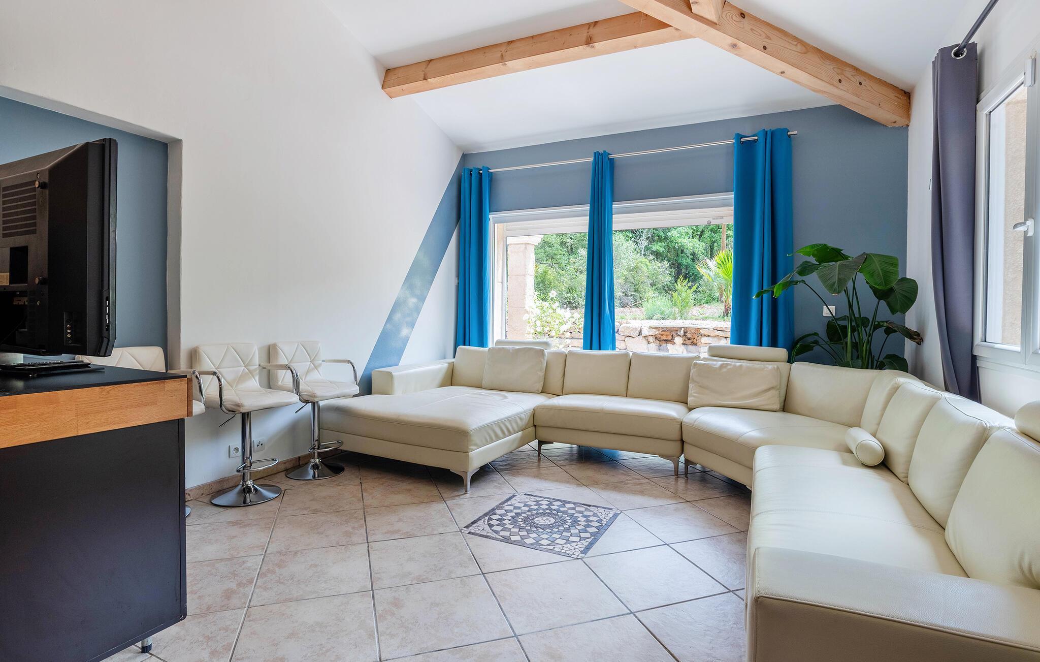 Inbäddat i en stor naturtomt, välkomnar detta förtrollande provensalska hus dig med gott om utrymme för att koppla av med dina nära och kära. Spela biljard, trolla fram läckra rätter i det öppna köket och se fram emot mysiga måltider, avkopplande lässessioner eller roliga spelkvällar i det rymliga vardagsrummet.