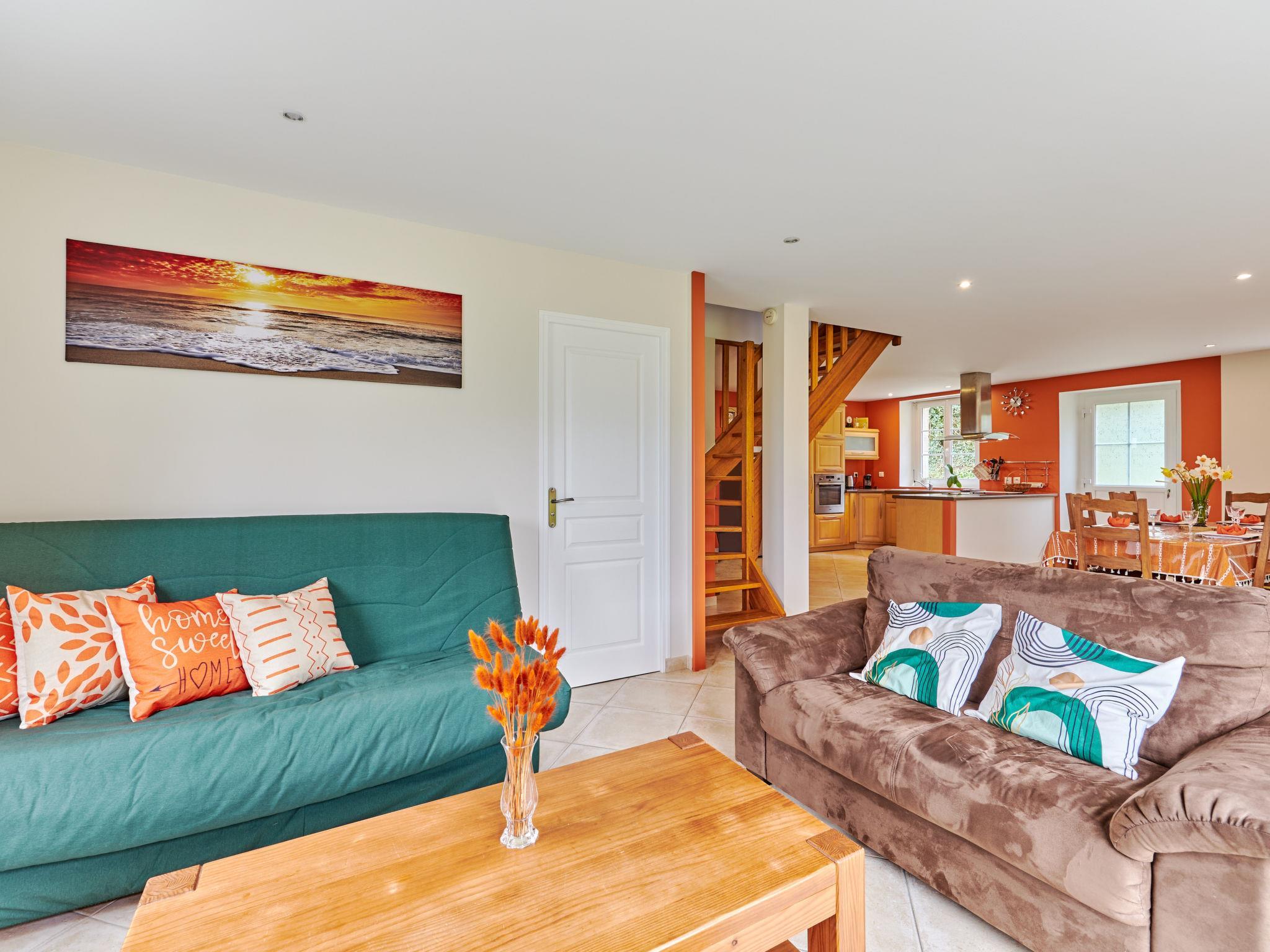 "Le Lanchon", 3-room house 94 m2 on 2 levels. Beautiful and cosy furnishings: living/dining room with dining table, satellite TV, radio and DVD. Exit to the garden. Open kitchen (oven, dishwasher, 4 induction hot plates, toaster, kettle, microwave, freezer, electric coffee machine). Shower, sep. WC. Upper floor: 1 room with sloping ceilings with rooflight with 1 bed (90 cm, length 190 cm), 1 french bed (160 cm, length 200 cm). 1 room with sloping ceilings with rooflight with 1 french bed (140 cm, length 190 cm). Sep. WC. Oil heating. Patio. Terrace furniture, barbecue, deck chairs (4), box-room. Facilities: washing machine, iron, children's high chair, baby cot. Internet (WiFi, extra). Please note: non-smoking house. Maximum 1 pet/ dog allowed.