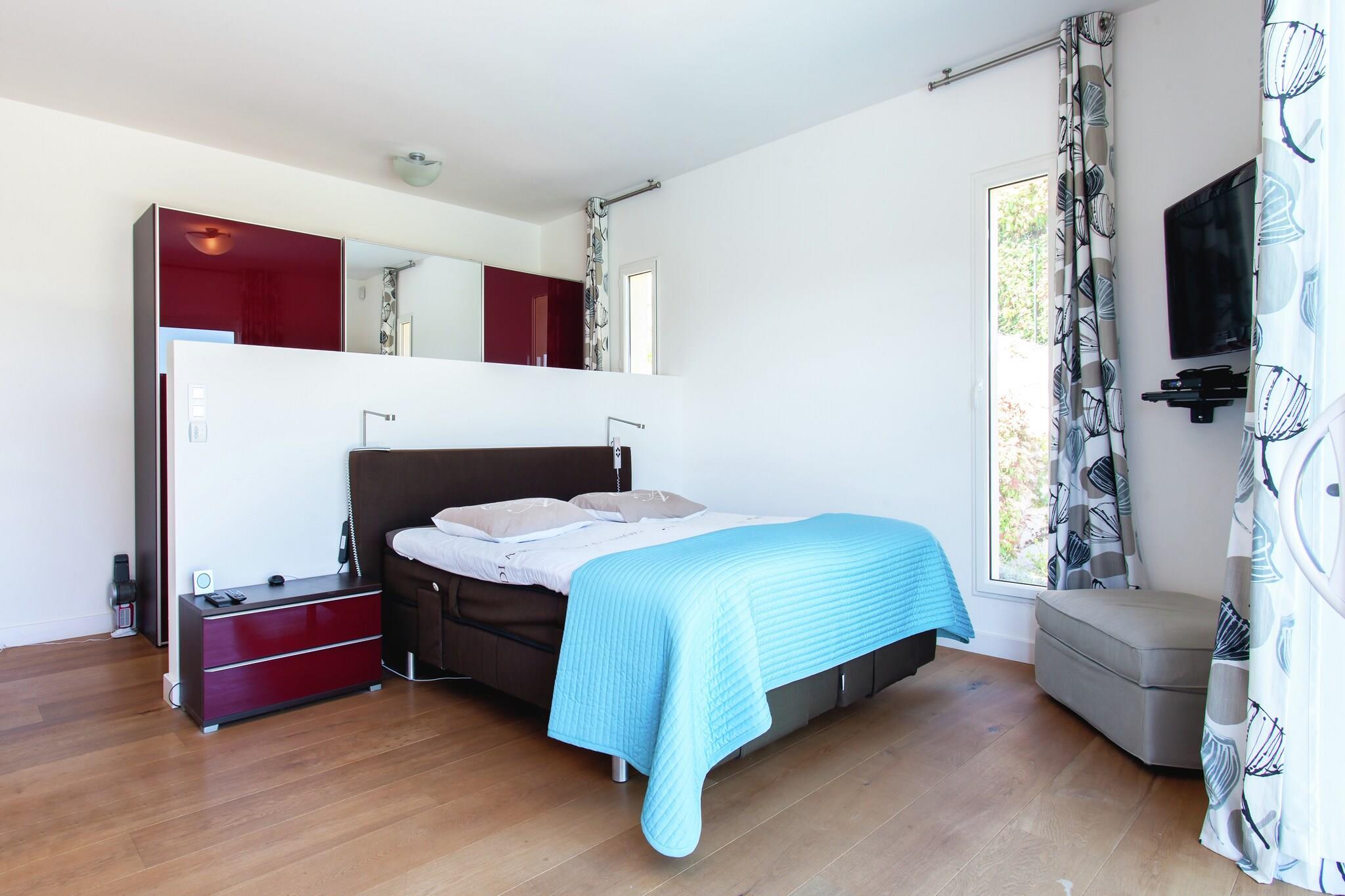 Denna lyxiga villa med 4 sovrum i Les Adrets-de-l'Estérel är idealisk för stora familjer eller en grupp på 8 gäster. Villan erbjuder fantastisk utsikt över bergen och närhet till Cannesbukten. Den rymliga terrassen, den privata poolen och avkopplande solstolar ger den perfekta miljön för en solblöt semester. De luftkonditionerade interiörerna garanterar komfort, medan det moderna köket och Weber-grillen gör måltiderna till en fröjd. Du är bara 1 km från den livliga stadskärnan med stormarknader och butiker. Tennisälskare kommer att uppskatta den närliggande banan bara 500 m bort, medan vattensportsentusiaster kan bege sig till kusten, 25 km bort. Dagsutflykter till konstnärsbyn Mougins eller Picassomuseet i Antibes rekommenderas varmt. Tågstationen ligger 19 km bort, motorvägen ligger 15 km bort och den närmaste flygplatsen ligger 45 km från villan. Villan är familjevänlig och erbjuder en spjälsäng och barnstol på begäran. Tillbringa dina kvällar på terrassen, njut av grillade måltider medan du ser solen dopp under kullarna. Ett bordtennisbord erbjuder extra underhållning. Observera: en tilläggsavgift på 100 EURO/vecka tillkommer för bokningar längre än 7 dagar, betalas på plats.