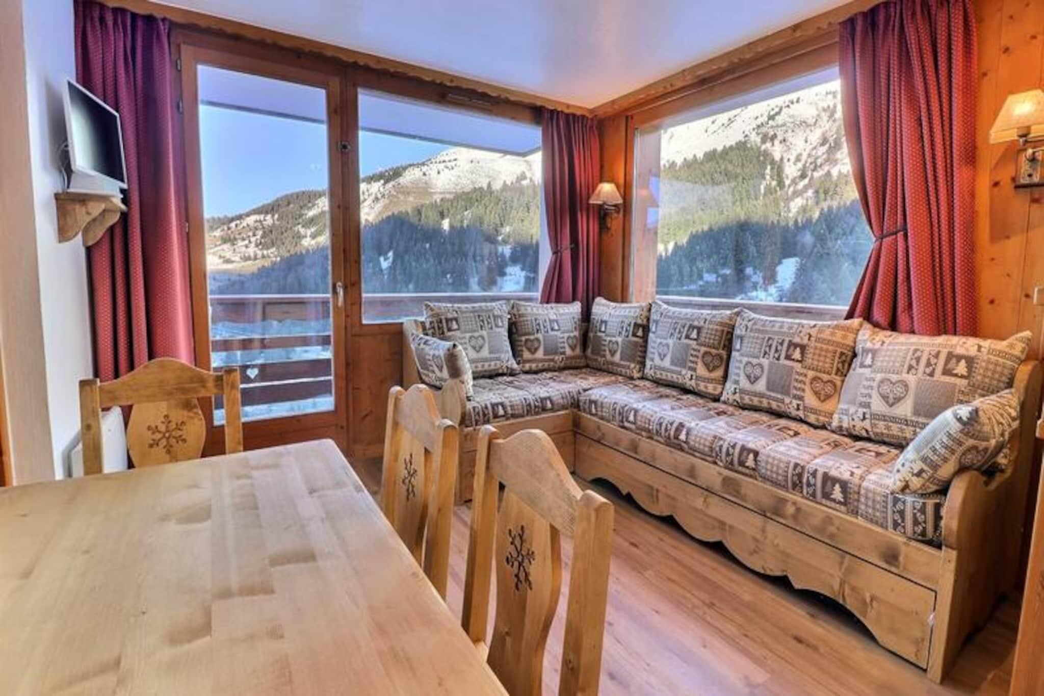Högt ovanför den förtrollande dalen Méribel erbjuder denna mysiga lägenhet i Plein Soleil-residenset en perfekt alpin tillflyktsort för dig som söker både äventyr och avkoppling. Med sitt utmärkta läge direkt vid backarna kan du kliva ut ur skidförvaringen och glida rakt in i den orörda snön, vilket gör det till ett idealiskt val för skidentusiaster. Det omgivande landskapet, med sina majestätiska toppar och fridfulla skogar, sätter tonen för en oförglömlig bergsresa. \n\nLägenheten är designad för att rymma upp till fyra gäster och har en noggrant utformad planlösning som balanserar komfort och praktiskhet. Vardagsrummet har en uppsättning utdragssängar, medan sovrummet har två enkelsängar, vilket garanterar vilsamma nätter efter aktiva dagar. Pentryt, utrustat med moderna apparater som en kombinerad mikrovågsugn, keramikhäll och diskmaskin, är perfekt för att laga rejäla måltider att njuta av i den mysiga matsalen. En balkong i norr- och österläge inbjuder dig att njuta av den friska alpina luften och beundra den fantastiska utsikten. Ytterligare bekvämligheter inkluderar en platt-TV och gratis Wi-Fi i residensens lounge, vilket garanterar bekvämlighet och underhållning under hela din vistelse. \n\nResidenset Plein Soleil är idealiskt beläget nära butikerna i centrala Mottaret, vilket ger enkel tillgång till lokala restauranger och afterski-alternativ. Chalets linbana, som är öppen från tidig morgon till sen kväll, erbjuder fri tillgång till Hameau- och Laitelet-områdena, vilket gör utforskningen enkel. Oavsett om du åker skidor, vandrar eller bara njuter av Méribels charm, finns allt du behöver bara några steg bort. \n\nDenna förtjusande lägenhet kombinerar det bästa av alpint boende med moderna bekvämligheter och skapar en välkomnande oas för din nästa bergssemester. Upplev Méribels magi och skapa minnen som varar livet ut.