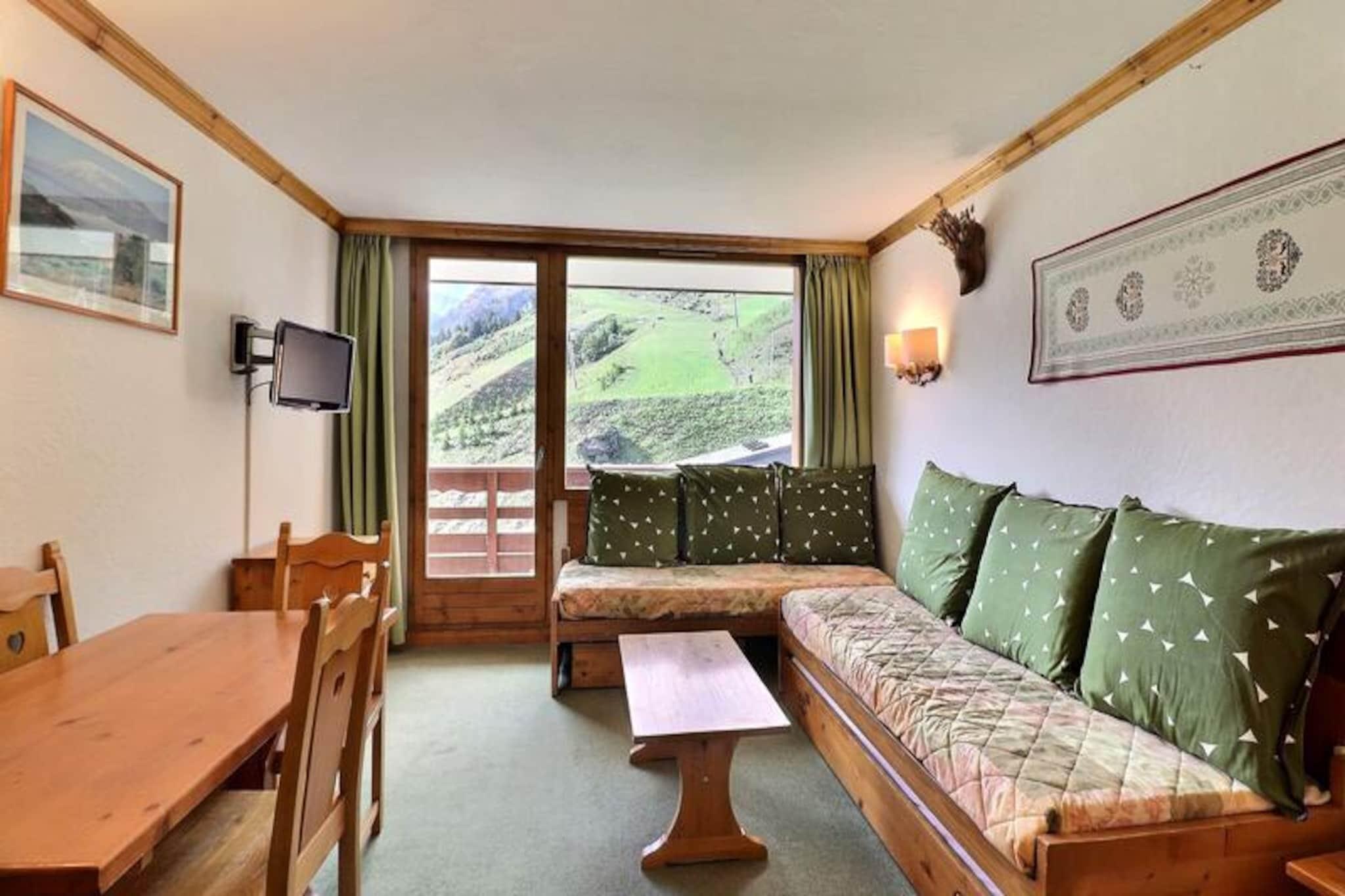 Högt ovanför den pittoreska byn Méribel-Mottaret erbjuder denna charmiga lägenhet i Plein Soleil-residenset en perfekt alpin tillflyktsort för både skidentusiaster och naturälskare. Med sitt oslagbara ski-in-ski-out-läge kan du gå direkt från skidförvaringen till de orörda sluttningarna i Les Trois Vallées, världens största skidområde. Balkongen i söderläge inbjuder dig att njuta av den hisnande utsikten över bergen och sola dig i solljuset som lyser upp de snötäckta topparna. Inuti är lägenheten noggrant utformad för att rymma upp till fem gäster med en mysig men funktionell planlösning. Vardagsrummet har en uppsättning utdragbara sängar och en bäddsoffa för en person, medan sovrummet erbjuder flexibiliteten med två enkelsängar eller en dubbelsäng. Det fullt utrustade köket, komplett med en kombinerad mikrovågsugn, kylskåp, diskmaskin med mera, säkerställer att du kan laga rejäla måltider efter en dag av äventyr. Moderna bekvämligheter som en platt-TV och gratis Wi-Fi i residensens lounge bidrar till komforten, medan Méribel-etiketten och 3-stjärnigt betyg garanterar kvalitet och charm. Bortom lägenheten ligger Plein Soleil-residenset idealiskt beläget nära butiker och restauranger, vilket gör det enkelt att njuta av Mottarets pulserande atmosfär. Chalets linbana, bara några steg bort, ger gratis och bekväm tillgång till Hameau- och Laitelet-områdena, och går från tidig morgon till sen kväll. Oavsett om du är här för att åka genom färskt pudersnö, utforska natursköna vandringsleder eller bara varva ner i den lugna alpina miljön, erbjuder detta residens den perfekta basen för oförglömliga bergsminnen. Välj denna förtjusande tillflyktsort för dess utmärkta läge, mysiga atmosfär och smidiga tillgång till de franska Alpernas underverk.