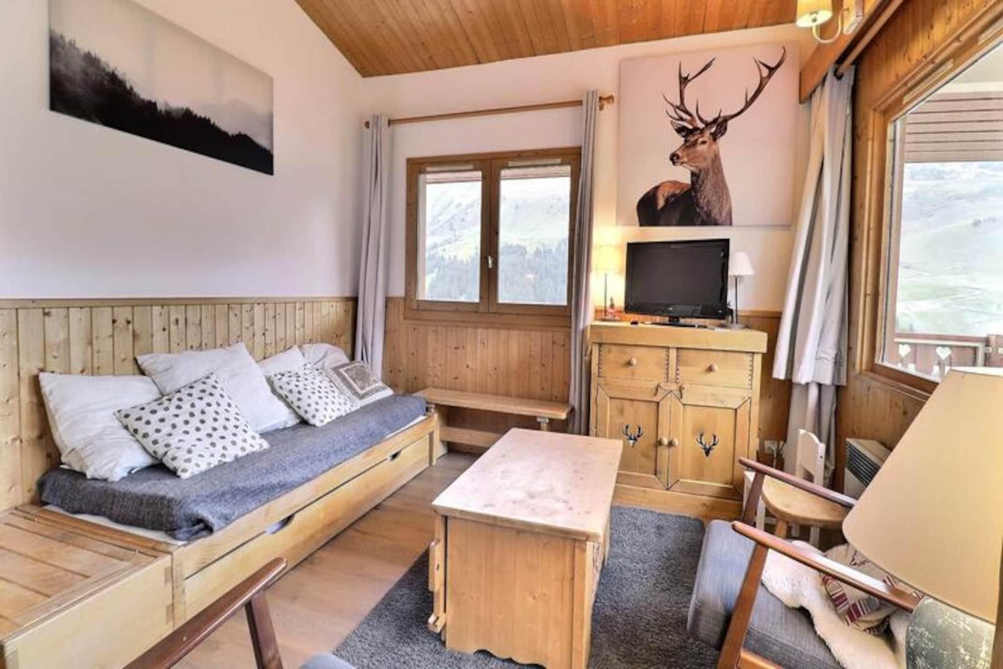 Högt ovanför den pittoreska dalen Méribel-Mottaret erbjuder denna charmiga alpina tillflyktsort en lugn tillflyktsort med hisnande utsikter och oöverträffad tillgång till backarna. Från det ögonblick du kliver ut på den rymliga balkongen i söderläge kommer du att fängslas av de vidsträckta vyerna över snötäckta toppar och den lugna bergsatmosfären som omger dig. Oavsett om du är här för en adrenalinfylld skidsemester eller en fridfull sommarsemester, lovar denna fastighet en minnesvärd vistelse i hjärtat av de franska Alperna. Inuti är lägenheten noggrant utformad för att rymma upp till sex gäster i tre mysiga rum. Vardagsrummet har en bekväm bäddsoffa och utdragbar säng, perfekt för avkopplande kvällar efter en dag av äventyr. Det välutrustade pentryt, komplett med ugn, kylskåp, diskmaskin och keramikhäll, gör det enkelt att laga mat. Två inbjudande sovrum erbjuder vilsamma tillflyktsorter: ett i söderläge med en plyschig dubbelsäng och det andra i österläge med en dubbelsäng och en våningssäng. Ett modernt badrum och separat toalett ger extra bekvämlighet, medan platt-TV och gott om värme säkerställer en mysig atmosfär under hela din vistelse. Beläget bara 100 meter från backarna, kan du enkelt nå