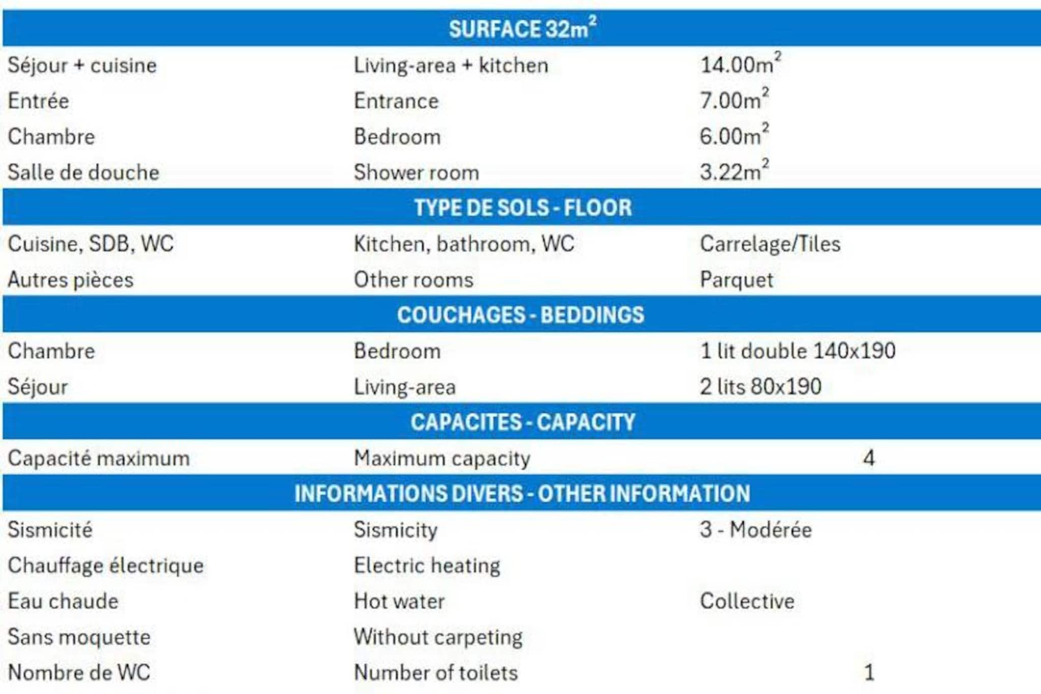 Högt ovanför Méribels pittoreska sluttningar erbjuder denna charmiga lägenhet en härlig alpin tillflyktsort för dig som söker både äventyr och lugn. Tänk dig att vakna upp till den friska bergsluften, gå ut på din balkong i söderläge och titta på de snötäckta topparna som omger dalen. Oavsett om du är här för spänningen med skidåkning eller naturens lugn, erbjuder denna bostad den perfekta miljön för att skapa oförglömliga minnen i hjärtat av de franska Alperna. \n\nLägenheten är noggrant utformad för upp till fyra gäster och har en mysig men funktionell planlösning. Vardagsrummet har en uppsättning utdragssängar, perfekt för avkoppling efter en dag av utforskande, medan det separata sovrummet erbjuder en bekväm dubbelsäng för vilsamma nätter. Pentryt med öppen planlösning är utrustat med moderna bekvämligheter, inklusive kylskåp, diskmaskin, keramikhäll och en kombinerad mikrovågsugn med grill – perfekt för att laga rejäla måltider att njuta av efter en dag i backen. Ytterligare bekvämligheter som en platt-TV säkerställer en bekväm vistelse, medan den rökfria och husdjursfria miljön garanterar sinnesro. \n\nBeläget direkt vid backarna kan tillgången till skidåkning inte vara enklare. Gå bara ut via skidskåpet och ta den gröna Perdrix-nedfarten för att nå den huvudsakliga avgångspunkten för skidliften. Boendet är bekvämt beläget mellan två köpcentrum, som nås inom fem minuters promenad via trappor. För ytterligare utforskning erbjuder Chalets linbana fri tillgång till områdena Hameau och Laitelet, som är öppen från tidig morgon till sen kväll. \n\nOavsett om du är en erfaren skidåkare eller en naturentusiast, kombinerar denna lägenhet charm, komfort och ett oslagbart läge för att säkerställa att din vistelse i Méribel blir inget annat än extraordinär.