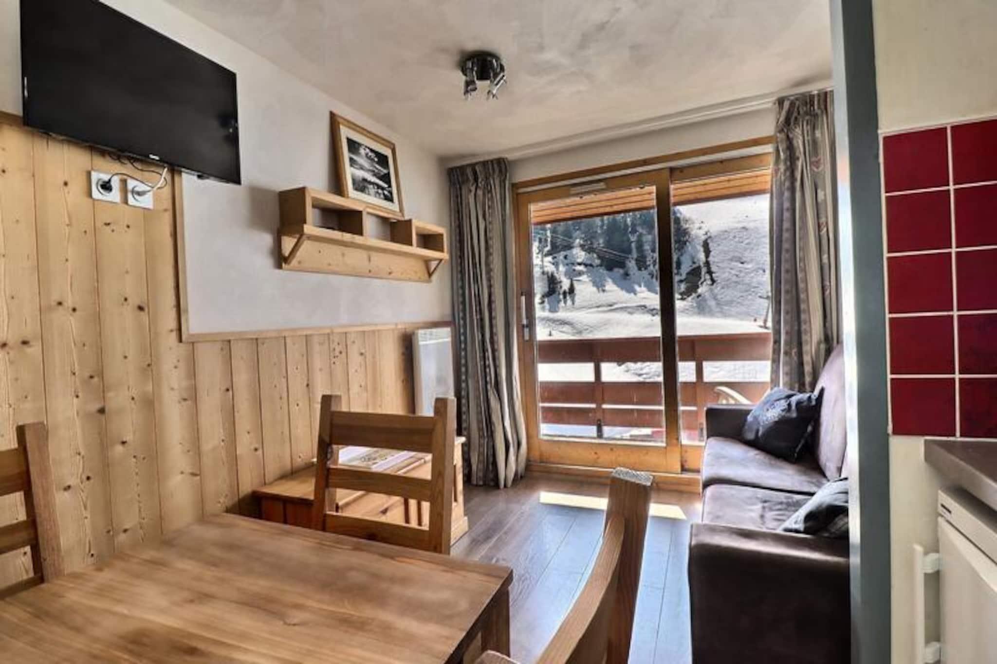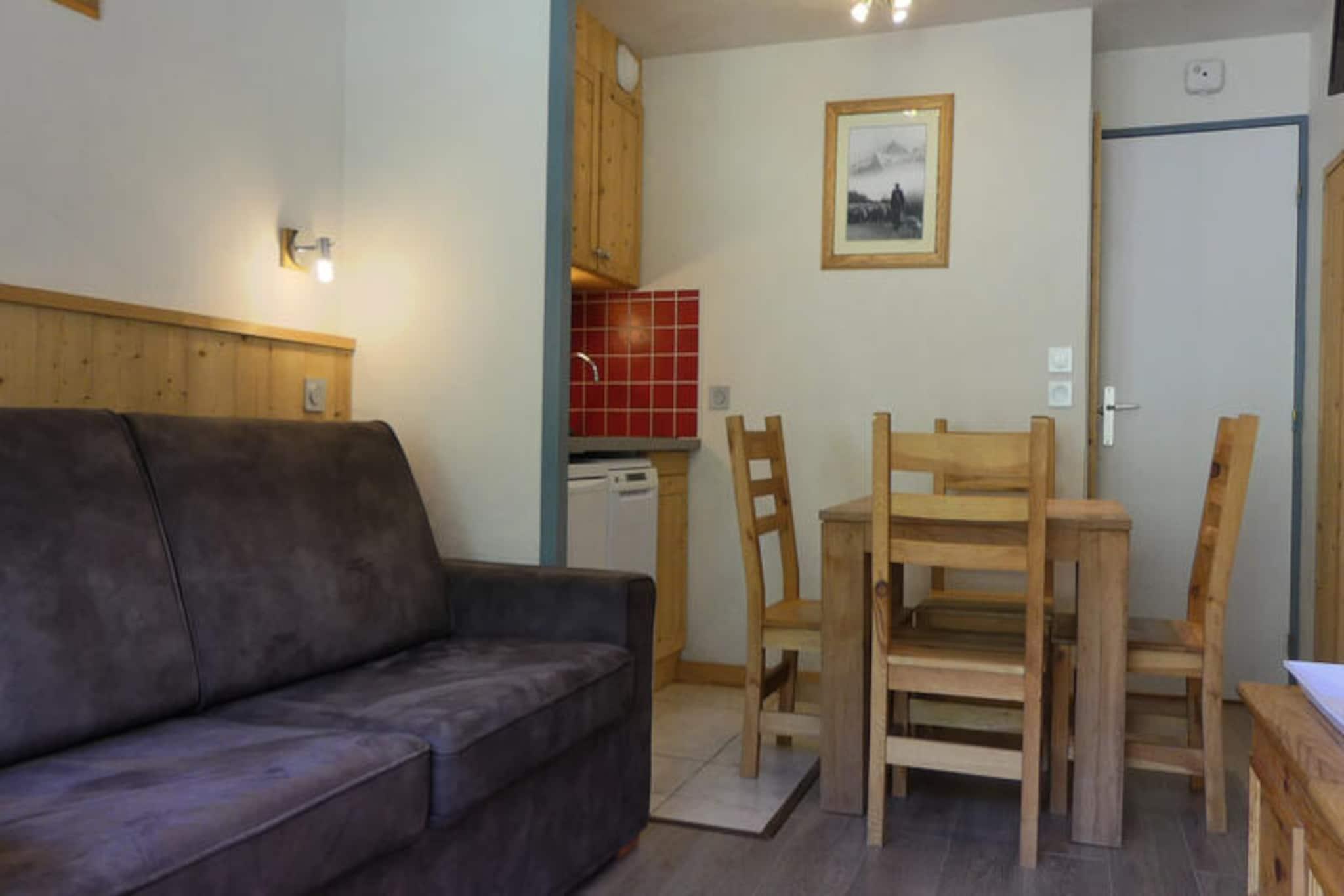 Högt ovanför det livliga köpcentret Chatelet ligger denna charmiga studio i Les Sentiers du Tueda - Le Pralin-residenset, som inbjuder dig att uppleva Méribels magi. Med backarna bara några steg bort börjar morgnarna här med den friska alpina luften och löftet om spännande äventyr. Oavsett om du är en erfaren skidåkare eller en familj som söker snökul, säkerställer den närliggande ESF-mötesplatsen och Piou-Piou-förskolan att alla är redo att ge sig ut i backarna med lätthet. Den västerläge balkongen erbjuder en lugn tillflyktsort för att njuta av bergsutsikten och de gyllene solnedgångarna efter en dag av utforskande. \n\nDenna mysiga studio är utformad för att bekvämt rymma upp till fyra gäster och har en sovplats med våningssängar och ett vardagsrum med en bäddsoffa för två personer. Pentryt är utrustat med moderna bekvämligheter, inklusive en kombinerad mikrovågsugn, keramikhäll och diskmaskin, vilket gör det enkelt att laga rejäla måltider efter en dag i backarna. En platt-TV och varm värme säkerställer avkoppling och komfort under din vistelse, medan den husdjursvänliga policyn innebär att dina pälsklingar också kan följa med på äventyret. \n\nResidensens utmärkta läge placerar dig bara 100 meter från stormarknaden Chatelet och busshållplatsen, vilket erbjuder smidig tillgång till byn och bortom. På vintern lockar backarna till skidåkning och snowboardåkning, medan sommaren förvandlar området till en oas för vandring och mountainbike. Utforska de fantastiska lederna, andas in den friska alpina luften och upptäck charmen i Méribels pulserande samhälle. \n\nOavsett om du är här för spänningen i backarna eller lugnet i bergen, är denna studio din port till oförglömliga alpina minnen.