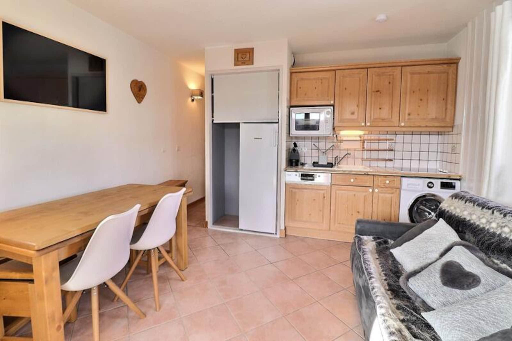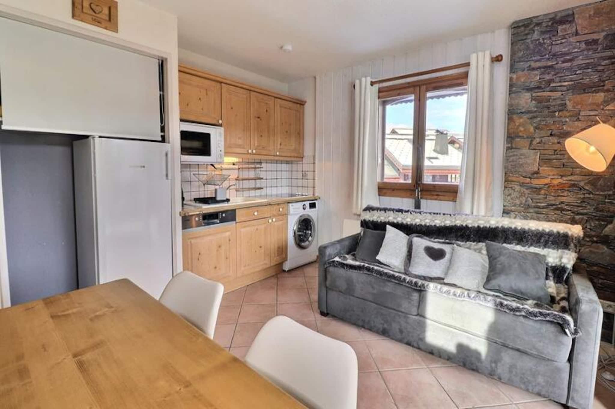 På den fridfulla Châtelet-sidan av Méribel-Mottaret erbjuder denna charmiga alpina oas en perfekt blandning av lugn och bekvämlighet. Bara en kort 5 minuters promenad från backarna och Châtelets köpcentrum, är denna residens perfekt för dig som söker en mysig bergsflykt med enkel tillgång till hjärtat av skidområdet Les Trois Vallées. Tänk dig att börja dagen med att korsa en pittoresk stig till skidliften, spänna på dig skidorna och glida in i en värld av snöiga äventyr. I slutet av dagen kan du åka skidor direkt tillbaka till residensen via "Ours"-backen, om förhållandena tillåter, för en sömlös alpin upplevelse. Inuti är lägenheten omsorgsfullt utformad för att rymma upp till sex gäster. Vardagsrummet har en bekväm Rapido-bäddsoffa, medan sovrummet har en mysig dubbelsäng. En separat stuga med våningssängar ger extra sovplats, vilket gör den perfekt för familjer eller små grupper. Pentryt med öppen planlösning är utrustat med moderna bekvämligheter, inklusive en Nespresso-maskin, keramikhäll och en tvättmaskin/torktumlare, vilket garanterar alla bekvämligheter i ett hem. Efter en dag i backarna kan du varva ner på terrassen som vetter mot nordost och söder eller koppla av i vardagsrummet med Smart-TV och gratis internet. Residensens läge är en inkörsport till både äventyr och avkoppling. Det närliggande köpcentret Châtelet erbjuder bekväm tillgång till butiker och restauranger, medan busshållplatsen bara 150 meter bort garanterar enkel utforskning av det bredare Méribel-området. Förutom skidåkning har regionen hisnande vandringsleder, natursköna linbaneturer och livliga afterski-möjligheter. Oavsett om du är här för spänningen i backarna eller charmen i alpbyn, lovar denna anläggning en oförglömlig vistelse i de franska Alperna.