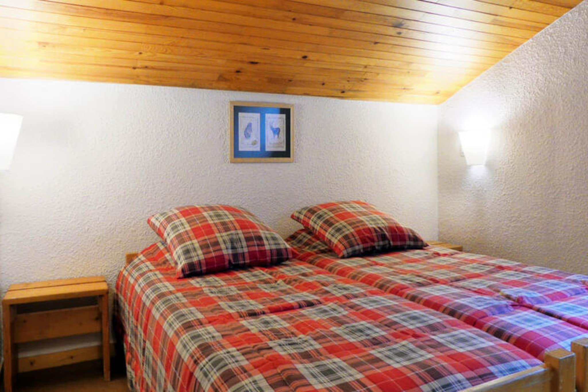 Beläget i hjärtat av Hameau köpcentrum i Le Laitelet, erbjuder Candide-residenset en sömlös blandning av bekvämlighet och alpin charm. Tänk dig att du kliver ut ur din lägenhet, går till skidförvaringen och inom några ögonblick glid ner på den gröna backen som leder direkt till skidliftens huvudavgångspunkt. På dagar med optimala snöförhållanden kan du till och med spänna på dig skidorna precis utanför förvaringen och börja ditt äventyr. Med Chalets linbana i drift från tidig morgon till sen kväll är det enkelt och kostnadsfritt att utforska omgivningarna. Detta residens är den perfekta porten till de snöiga underverken i de franska Alperna. Denna 43 m² stora duplexlägenhet är designad för att rymma upp till åtta gäster och kombinerar praktiskhet med komfort. Vardagsrummet har två enkelbäddsoffor, medan matplatsen erbjuder ett mysigt utrymme för gemensamma måltider. Pentryt är utrustat med moderna apparater, inklusive en kombinerad mikrovågsugn, kylskåp och diskmaskin, vilket säkerställer att du har allt som behövs för en problemfri vistelse. På övervåningen finns entresolvåningen med tre våningssängar, kompletterat av ett sovloft med en dubbelsäng och ett extra sovrum med två enkelsängar. Två badrum, varav ett med dusch, är bekväma för större grupper, och balkongen i norrläge inbjuder dig att varva ner med utsikt över den alpina omgivningen. Bortom residenset erbjuder det livliga köpcentret Hameau en mängd olika bekvämligheter, från lokala butiker till restauranger, vilket säkerställer att alla dina behov tillgodoses inom gångavstånd. Backarna ligger bara några steg bort, vilket gör det till en idealisk plats för skidentusiaster. På sommaren förvandlas området till en fristad för vandrare och naturälskare, med stigar som slingrar sig genom hisnande landskap. Oavsett om du är här för vintersport eller sommarutforskning är Candide-residenset ditt hem hemifrån i Alperna. Välj den här fastigheten för dess oslagbara läge, genomtänkta design och löftet om oförglömliga alpina upplevelser. Oavsett om du reser med familj eller vänner är varje ögonblick här en möjlighet att skapa bestående minnen.