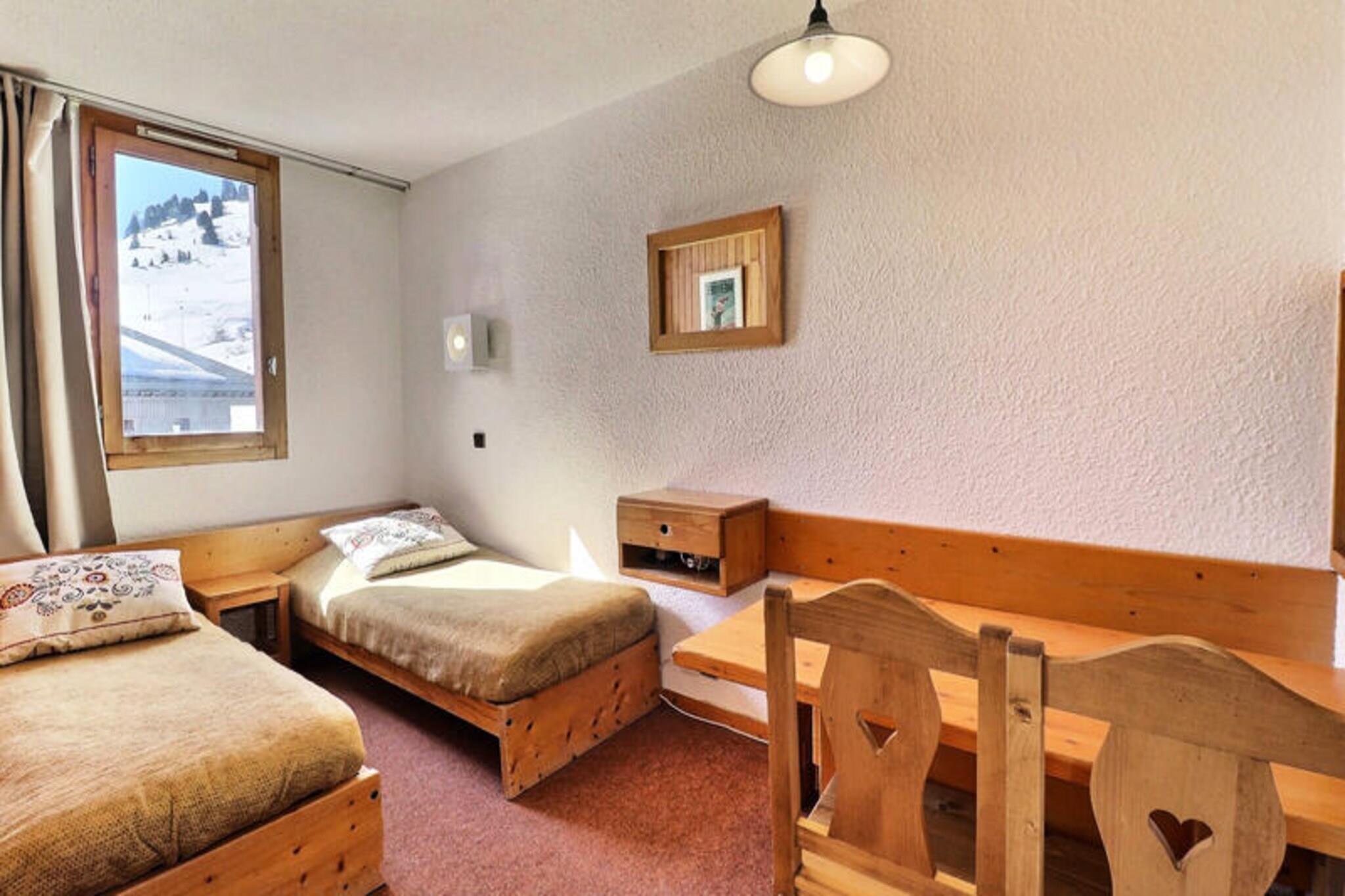 I det pulserande köpcentret Hameau i Le Laitelet erbjuder denna charmiga studiolägenhet en mysig alpin tillflyktsort för upp till fyra gäster. Med direkt tillgång till backarna börjar ditt skidäventyr bara några steg från boendets skidförvaring. Tänk dig att glida ner på den gröna nedfarten som leder till skidliftens huvudavgångspunkt, eller spänna på dig skidorna precis utanför förvaringen när snöförhållandena tillåter. Chalets linbana, som är öppen från tidig morgon till sen kväll, ger smidig tillgång till omgivningarna, vilket garanterar bekvämlighet under hela din vistelse. \n\nDenna studiolägenhet i söderläge är omsorgsfullt utformad för komfort och praktisk användning. Vardagsrummet har en bäddsoffa för två personer, medan en skjutvägg separerar sovrummet med två enkelsängar, vilket erbjuder flexibilitet för familjer eller små grupper. Pentryt är fullt utrustat med moderna apparater, inklusive mikrovågsugn, kylskåp, diskmaskin och viktiga kaffebryggare, perfekt för att laga mat efter en aktiv dag. En platt-TV, värme och en privat balkong kompletterar bekvämligheterna och ger en avkopplande plats att varva ner och njuta av den fantastiska alpina utsikten. \n\nUtanför residensen erbjuder köpcentret Hameau en mängd olika butiker och matställen, vilket gör det enkelt att utforska lokala smaker och köpa nödvändigheter. Oavsett om du är här för att åka skidor, vandra eller bara njuta av den lugna bergsatmosfären, placerar denna fastighet dig i hjärtat av allt. Med sin husdjursvänliga policy och rökfria miljö är det ett perfekt val för en stressfri semester. \n\nVälj denna härliga studio för din nästa alpina resa och skapa oförglömliga minnen i de hisnande franska Alperna.