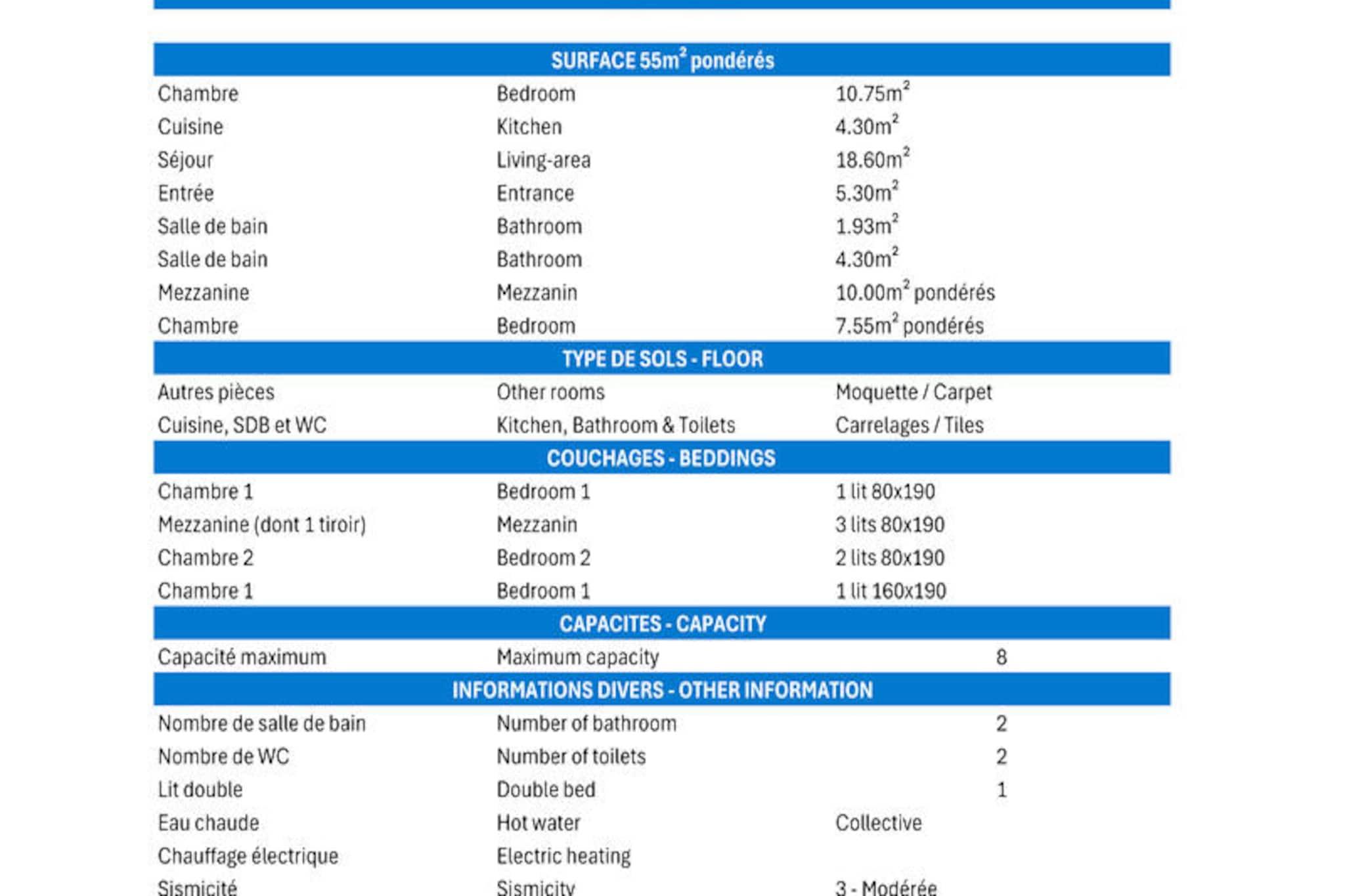 Högt ovanför den fridfulla dalen Méribel, där den friska alpina luften väcker sinnena, ligger Saulire-residenset – en charmig tillflyktsort för dem som söker både äventyr och lugn. Med sin balkong i söderläge som erbjuder oavbruten utsikt över de majestätiska snötäckta topparna, inbjuder denna fastighet dig att fördjupa dig i de franska Alpernas skönhet. Residenset är perfekt beläget vid foten av backarna, med direkt tillgång till den gröna Perdrix-nedfarten som leder till skidliftens huvudavgångspunkt, vilket säkerställer att dina alpina eskapader börjar utan ansträngning. Butiker och bekvämligheter finns bekvämt belägna bara 250 meter bort i Laitelet-distriktet, vilket bidrar till en bekväm vistelse. Inuti sträcker sig lägenheten över 55 kvadratmeter och är omsorgsfullt utformad för att rymma upp till åtta gäster. Det mysiga vardagsrummet har en bäddsoffa, tre fåtöljer och en öppen spis, vilket skapar ett varmt och inbjudande utrymme att varva ner i efter en dag i backarna. Köket är fullt utrustat med moderna apparater, inklusive keramikhäll, kylskåp, diskmaskin, ugn, mikrovågsugn och viktiga små apparater som kaffebryggare och brödrost. Sovrummen är mångsidiga, med två sovrum och ett loft på mezzaninen som erbjuder en blandning av enkel- och dubbelsängar för att passa familjer eller grupper av vänner. Fastigheten har också två badrum, ett med tvättmaskin, och en separat toalett för extra bekvämlighet. Utöver bekvämligheterna i residenset erbjuder Méribel en mängd aktiviteter och attraktioner. Linbanan Chalets, bara en kort promenad bort, ger fri tillgång till distrikten Hameau och Laitelet, och är öppen från tidig morgon till sen kväll. Oavsett om du utforskar den pulserande byn, njuter av lokal savoyardsk mat eller ger dig ut på spännande skidäventyr, placerar Saulire-residenset dig i hjärtat av allt. Med gratis internet och en platt-TV ingår, lovar din vistelse både avkoppling och uppkoppling. Välj Saulire för din nästa alpina semester och skapa bestående minnen i en av Frankrikes mest pittoreska bergsdestinationer.