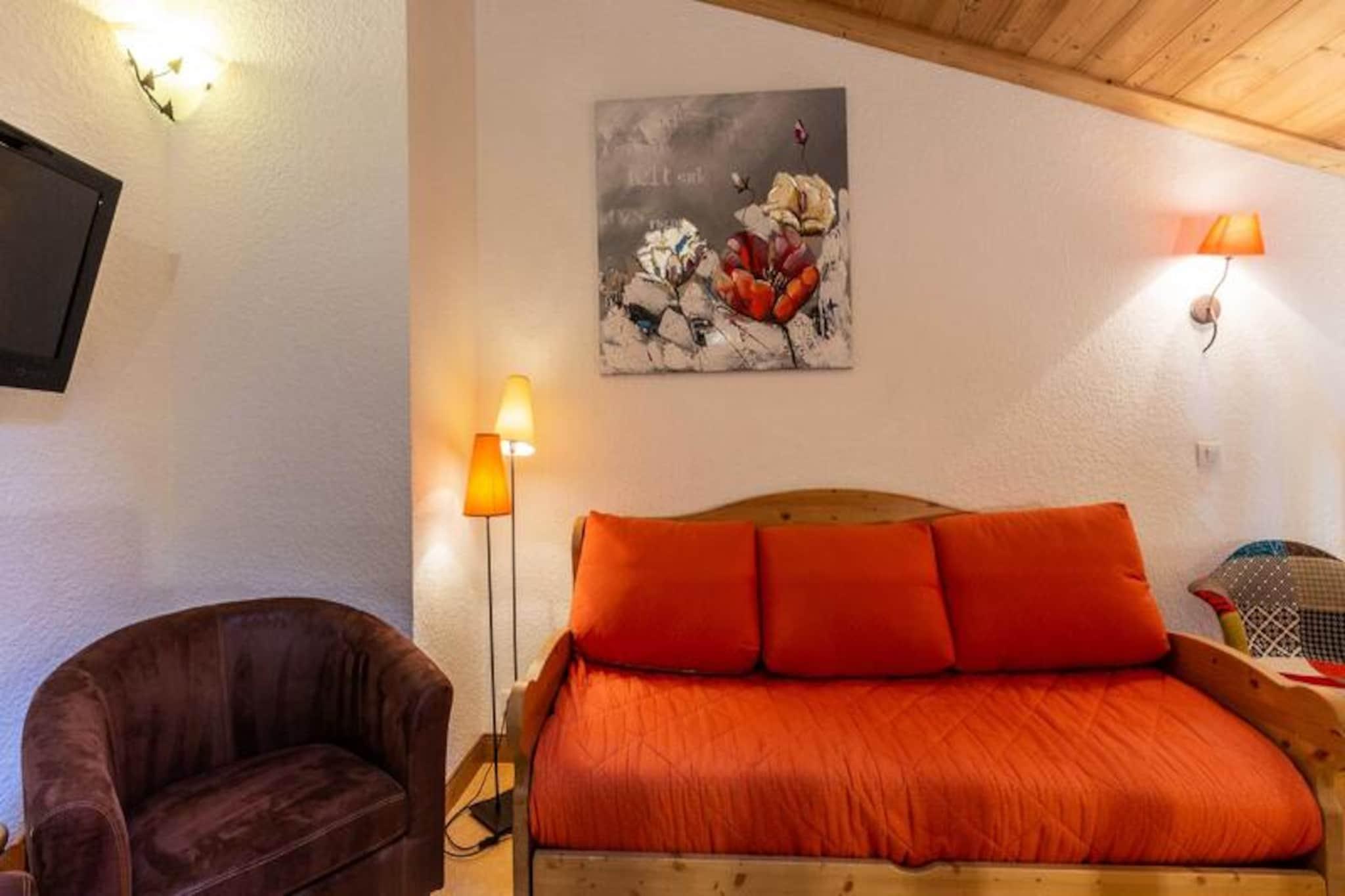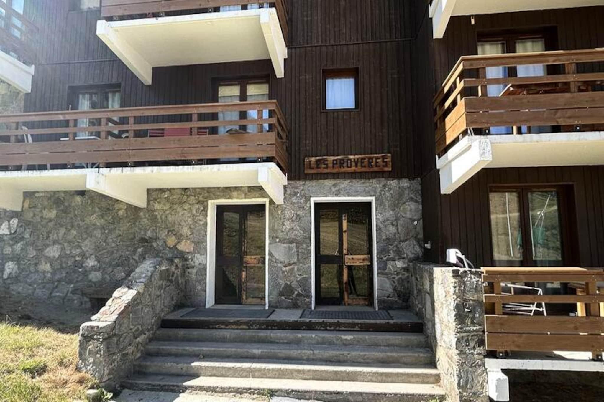 Börja ditt alpina äventyr i denna charmiga duplexlägenhet, perfekt belägen i det lugna residenset Méribel Mottaret i Provères. Med direkt tillgång till backarna och hisnande utsikt över Mont Vallon i söderläge, erbjuder denna fastighet en idyllisk tillflyktsort för både skidåkare och naturälskare. Tänk dig att vakna upp till den friska bergsluften, gå ut på din privata balkong och titta på de solbelysta topparna innan du ger dig ut på din dag av upptäcktsfärd. Oavsett om du är här för vintersport eller sommarvandringar, placerar detta läge dig i hjärtat av de franska Alpernas skönhet. \n\nLägenheten är omsorgsfullt utformad för att rymma upp till åtta gäster fördelade på två våningar. På bottenvåningen hittar du ett mysigt sovrum med eget badrum och våningssängar, en separat toalett och ett välkomnande vardagsrum med pentry utrustat med moderna apparater, inklusive en raclettegrill för autentiska alpina kvällar. Bäddsoffan i vardagsrummet ger extra sovplats, medan övervåningen har en mezzanin med en TV-hörna som kan omvandlas till en dubbelsäng, ett rymligt sovrum med dubbelsäng och ett badrum med toalett. Residenset har även ett skidskåp och tillgång till hiss för din bekvämlighet.\n\nMéribel Mottarets centrala distrikt ligger bara en kort bit bort och erbjuder ett pulserande centrum för aktiviteter med ESF-skidskolan, butiker, restauranger och afterski-barer. På sommaren förvandlas området till en fristad för vandrare och cyklister, med stigar som slingrar sig genom frodiga alpina ängar och panoramautsikter. Oavsett om du njuter av lokal savoyardsk mat eller glider nerför de världsklassiga sluttningarna i Les Trois Vallées, erbjuder denna lägenhet den perfekta basen för oförglömliga minnen.\n\nVälj denna fridfulla men ändå tillgängliga tillflyktsort för din nästa bergssemester och upplev magin i Méribel Mottaret under alla årstider.
